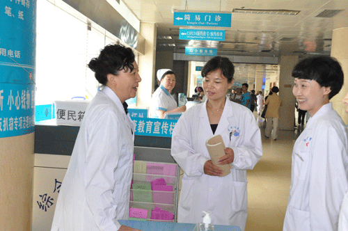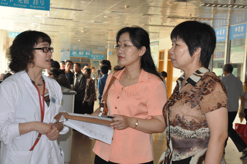 6月4日,省卫生厅“三好一满意”暨“十大指标”宏观监管督导检查组九人在郑州市卫生局原学岭副局长带队下莅临我院,对我院“三好一满意”暨“十大指标”宏观监管的实施和落实情况进行督导和检查。