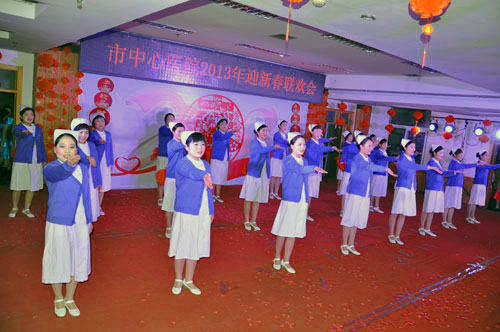 2月2日,我院门诊部七楼会议室内一片喜气洋洋,欢声笑语,“2013年迎新春联欢会”在这里举行。医院党委书记吴杰美在迎新春联欢会上发表了热情洋溢的致辞。为了节俭,所有节目均由医护人员自编自演,联欢会现场没有水果、茶水、鲜花,简单而朴素。