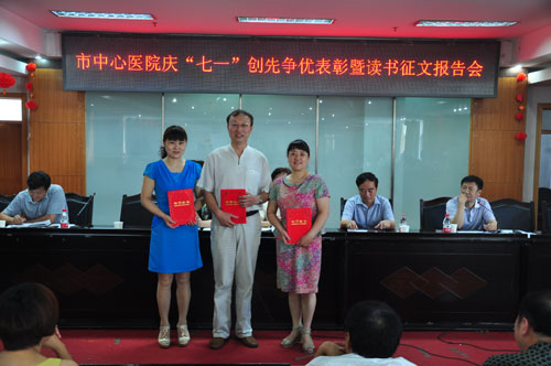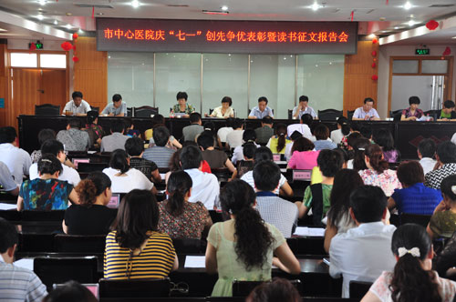 6月28日下午,为庆祝中国共产党成立92周年,院党委在门诊七楼会议室隆重举行了庆“七一”创先争优表彰暨读书征文报告会。院领导班子成员、各党支部书记、不值班党员、中层领导等500余人参加了会议。会议由副院长刘冠军主持,党委书记吴杰美作了重要讲话。市卫生局党委副书记高孟元应邀参加了会议并作了讲话。