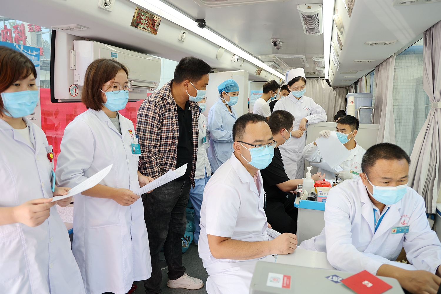 此次无偿献血活动在中心院区和妇儿院区同时进行,由各党支部负责组织,医院党员充分发挥模范带头作用,引领带动广大干部职工积极参与无偿献血活动。医院职工在繁忙的工作之余抽出时间来到活动现场,在血站工作人员的指导下有条不紊地填表、体检、排队采血,通过这种方式将爱心传递下去,让更多人加入到无偿献血的队伍中来。