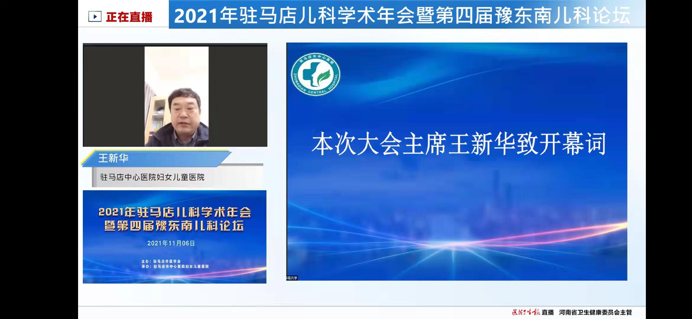 2021年驻马店儿科学术年会暨第四届豫东南儿科论坛在驻马店市中心医院顺利召开为促进我市儿科领域学科发展,提升我市儿科诊疗水平、加强学术交流。11月5日-6日,由驻马店市医学会主办、驻马店市中心医院承办的“河南省继续医学教育项目—第四届豫东南儿科论坛” 在我市召开。郑州大学第一附属医院程秀永教授、安金斗教授、王怀立教授,郑州大学第三附属医院栾斌、徐发林、王西阁教授,河南省人民医院程艳波教授,新乡医学院李树军教授、驻马店市儿科学会主任委员王新华等出席开幕式;应疫情防控要求,本次会议全部在线上举行,但丝毫没有影响各位专家的发挥和各位学员的听课热情,来自漯河市、信阳市、驻马店市儿科医护人员共1万余人参加线上会议。
