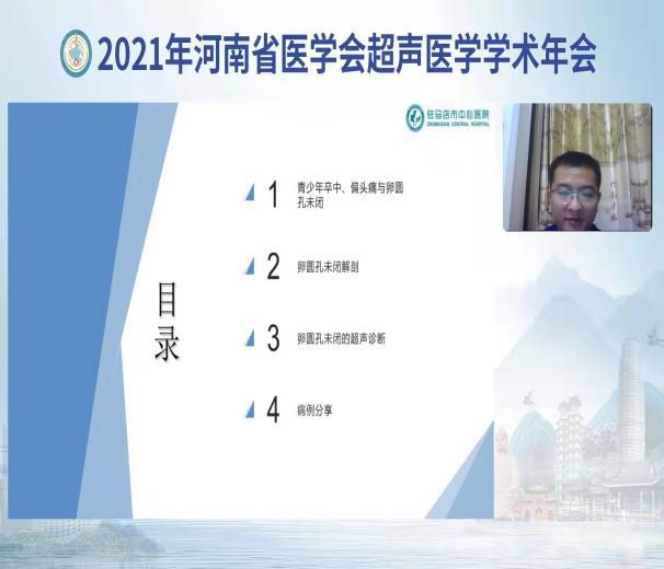 11月5日-7日,河南省医学会超声医学分会年会在郑州召开,应疫情防控要求,本次会议全部在线上举行,来自全国6000余人参加了会议。驻马店市中心医院超声科闫卫主任受邀为妇产超声论坛主持人。
