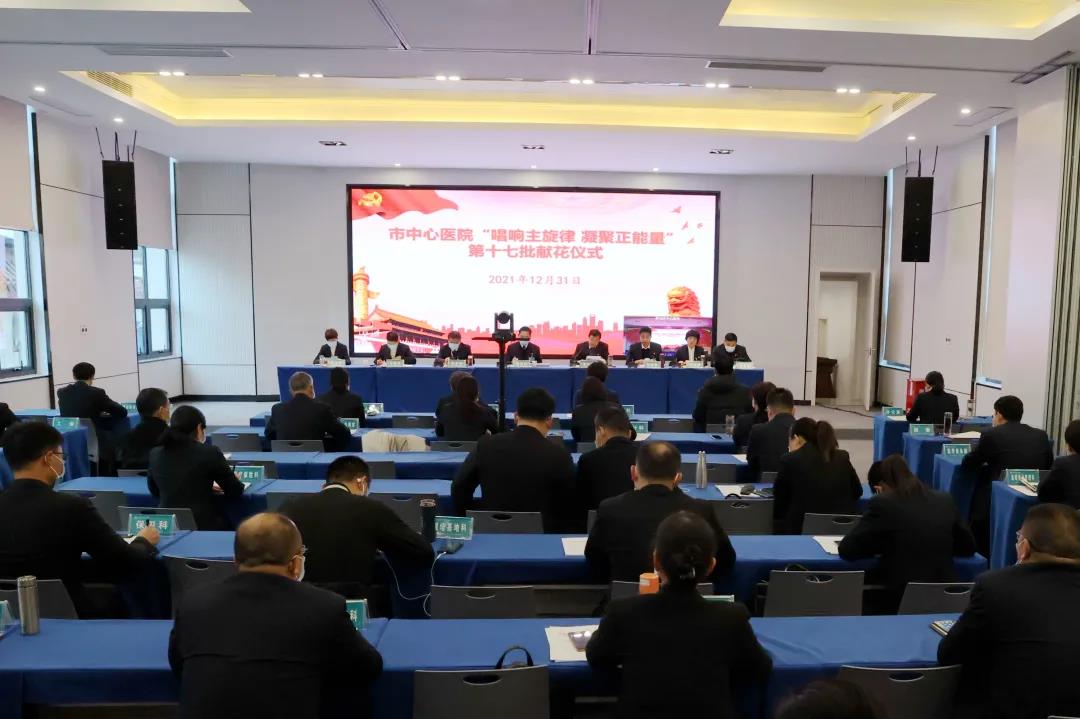 12月31日下午,市中心医院召开精神文明建设专题会议暨“唱响主旋律 凝聚正能量”第十七批献花仪式,医院领导班子成员参会。按照疫情防控要求,全体中层干部通过三个分会场视频连线和线上观看等方式参会。会议由医院党委副书记米云鹏主持。