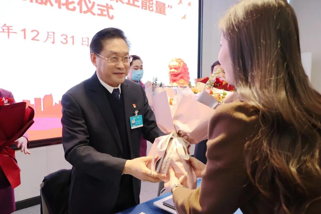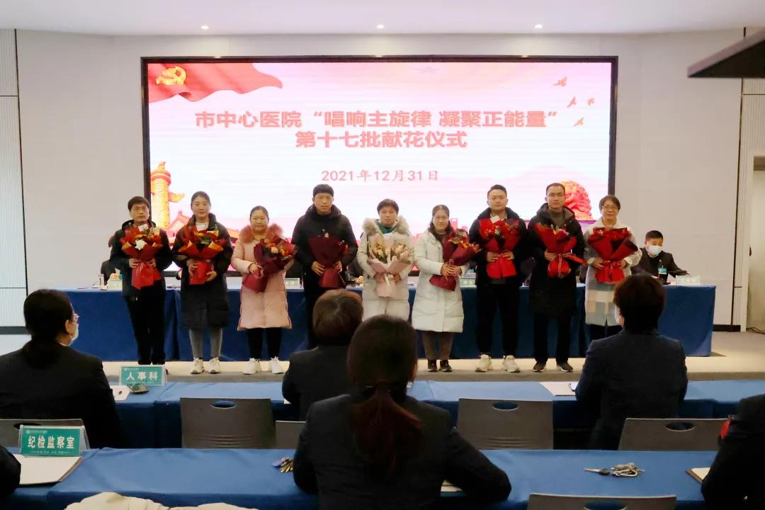 随后,进行第十七批“唱响主旋律、凝聚正能量”献花仪式,医院对近期涌现出的各类先进典型分三轮进行献花表彰。