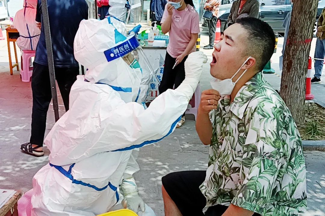 “来,把嘴巴张开……”5月5日、7日、8日、10日,在炎炎烈日下、在蒙蒙细雨中、在刺骨寒风中,头戴防护帽、身穿防护服的余敏,总是耐心温和地重复着相同的话语,告诉被采样者如何做好疫情防控,怎样才能更好地配合核酸检测。