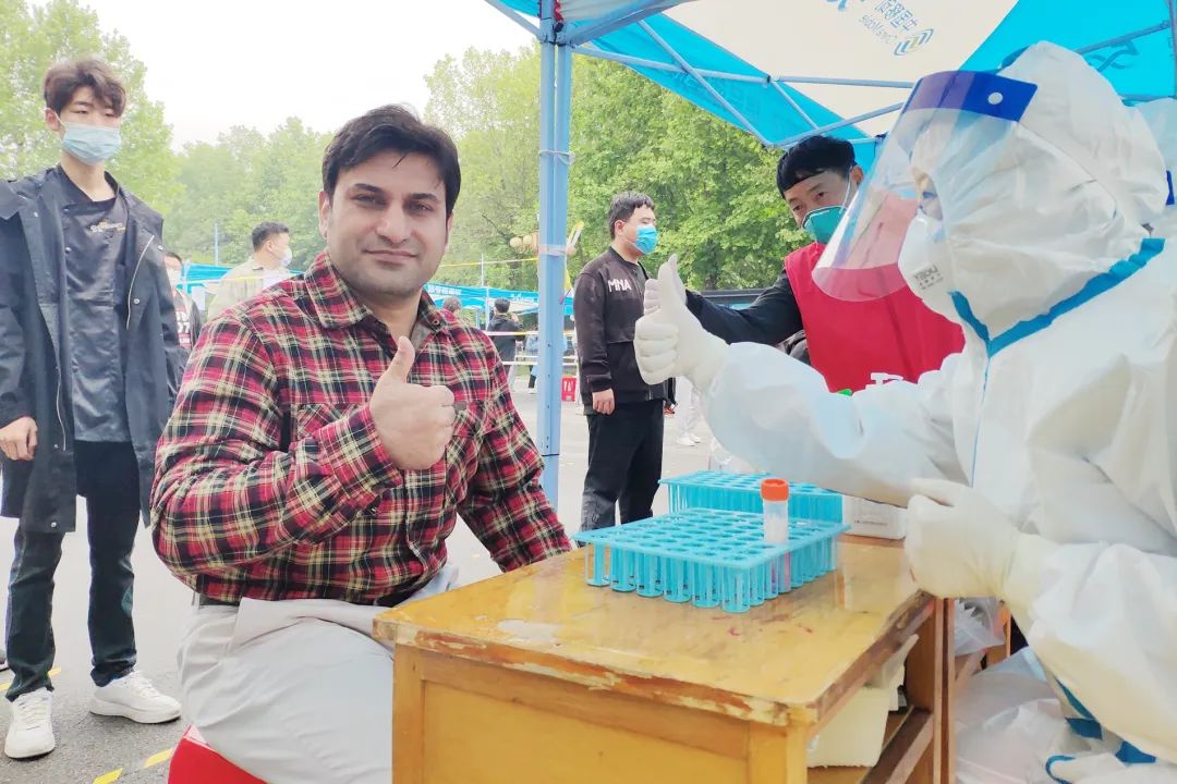 延续了几日的工作模式在5月10日降到了“冰点”。早晨的天气让她们在室外采集瑟瑟发抖,却阻挡不了忙碌的脚步。因操作规范、服务暖心,钱永慧和她的团队工作得到黄淮学院教职工和学生的广泛赞誉,外籍老师们也都纷纷为她们点赞。厚厚的防护服下,那一颗颗勇敢而坚强的心,书写着对群众最大的守护!