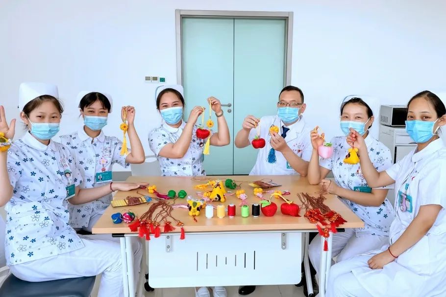 五月五系五彩线是端午节的重要习俗,它有祈福纳吉的美好寓意;戴香包,有驱虫之用。为了弘扬传统民俗文化,增强医患之间的情感交流,小儿外科组织科室医护人员缝制香包、编织了幸运五色彩绳,为住院患儿佩戴在手腕、脚腕及脖子上,让小患儿在病房也能感受到节日的气氛。