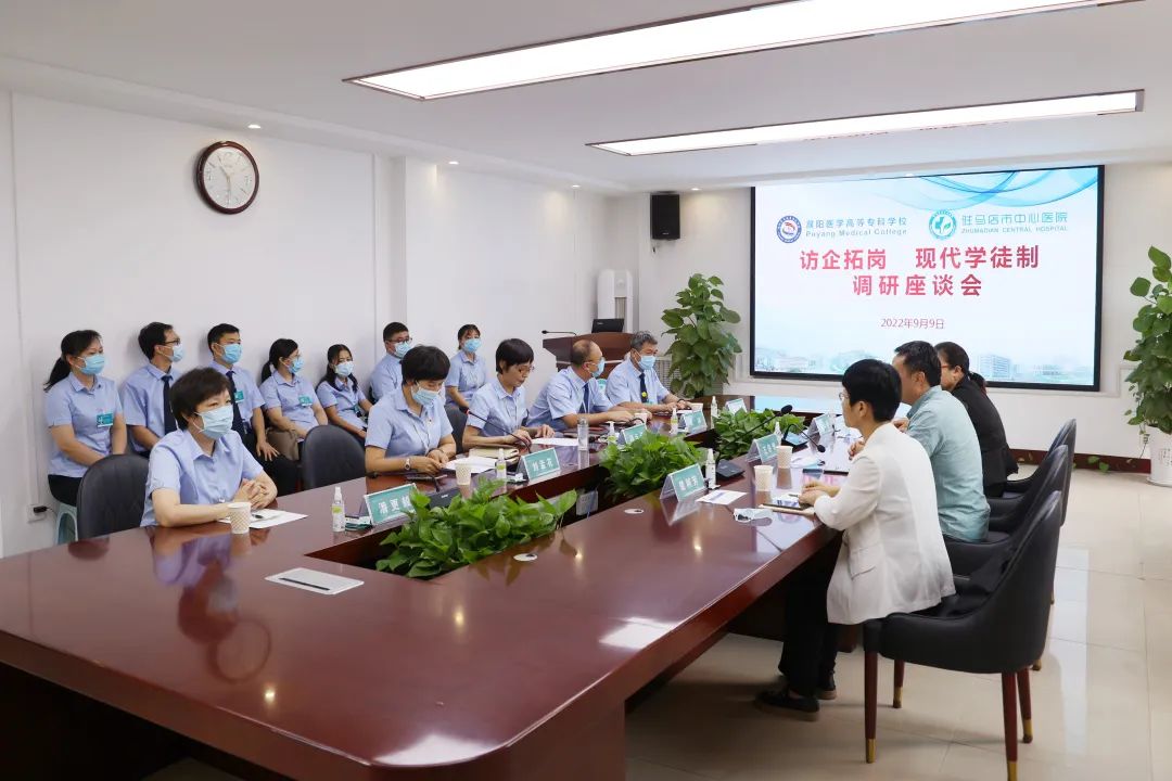 9月9日上午,濮阳医学高等专科学校访企拓岗现代学徒制调研座谈会在驻马店市中心医院7号楼3楼会议室召开。濮阳医学高等专科学校副校长王保奇,驻马店市中心医院副院长冯云云出席会议。