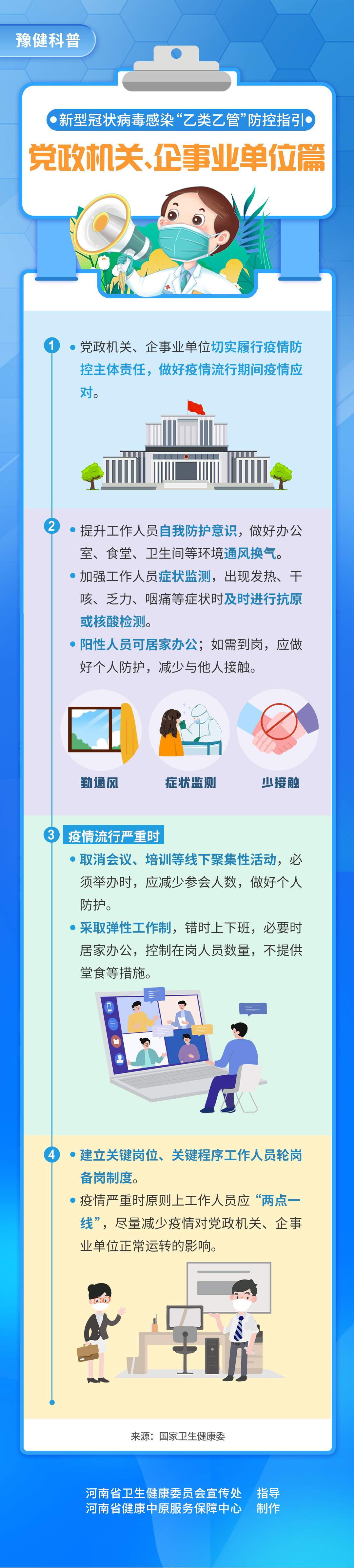 新型冠状病毒感染“乙类乙管”防控指引——党政机关、企事业单位篇