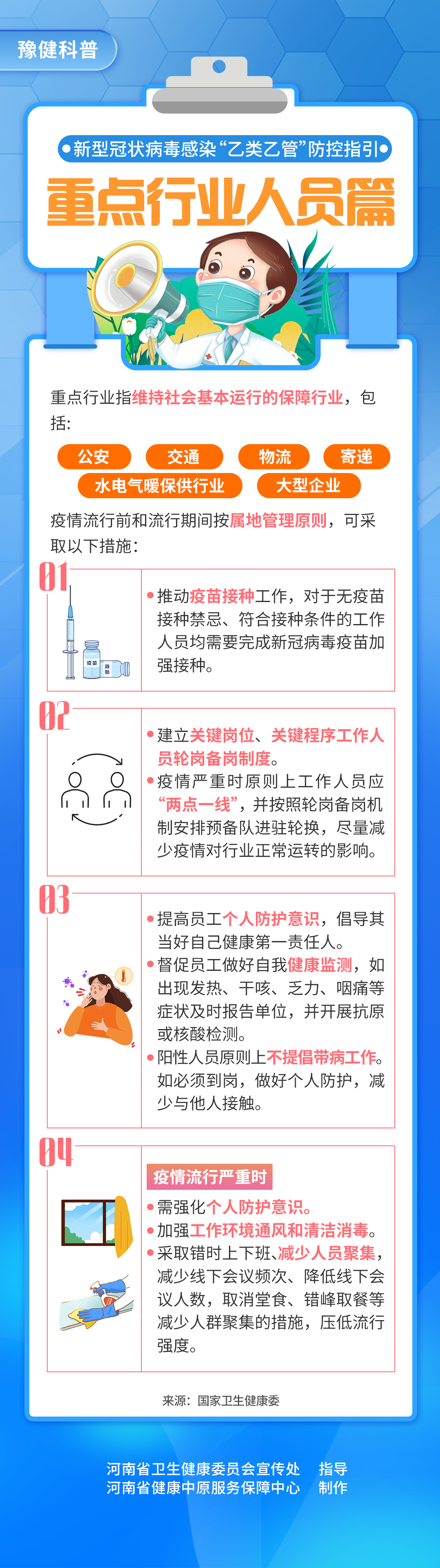 新型冠状病毒感染“乙类乙管”防控指引——重点行业人员篇