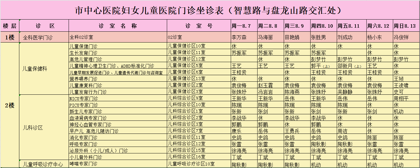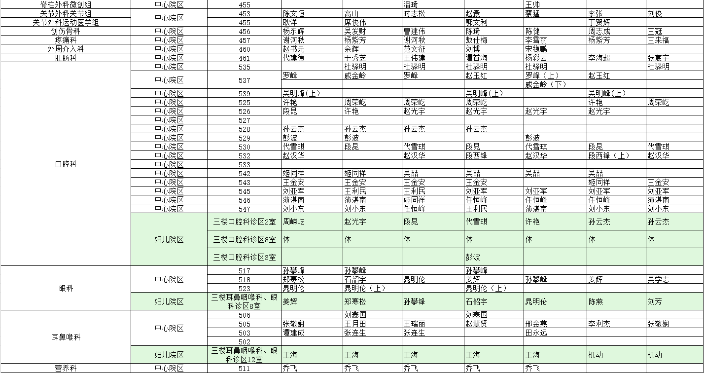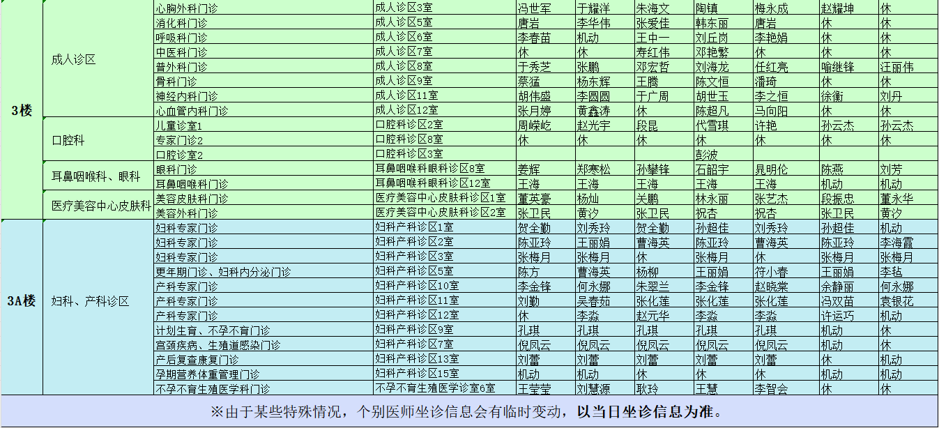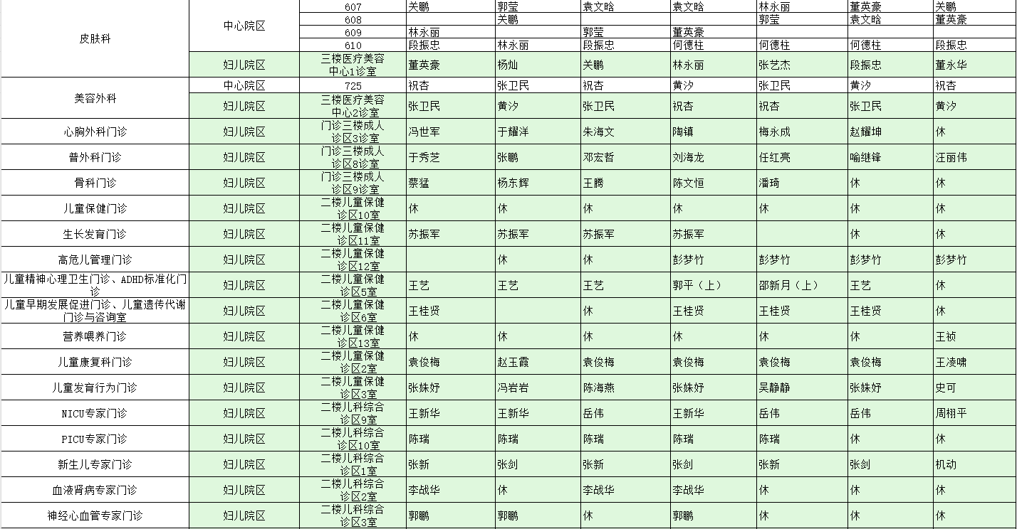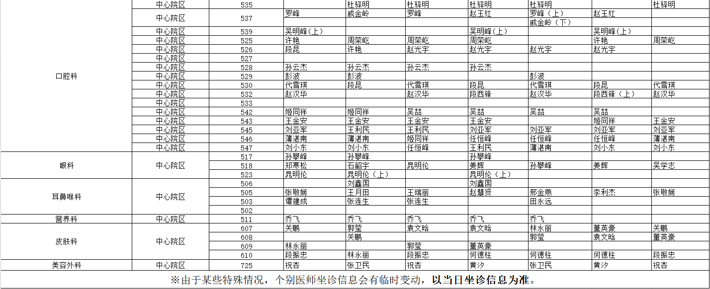 驻马店市中心医院门诊坐诊信息一览表(含妇儿院区)