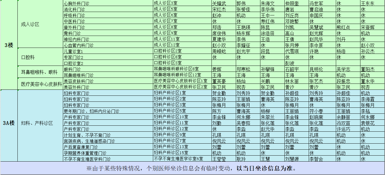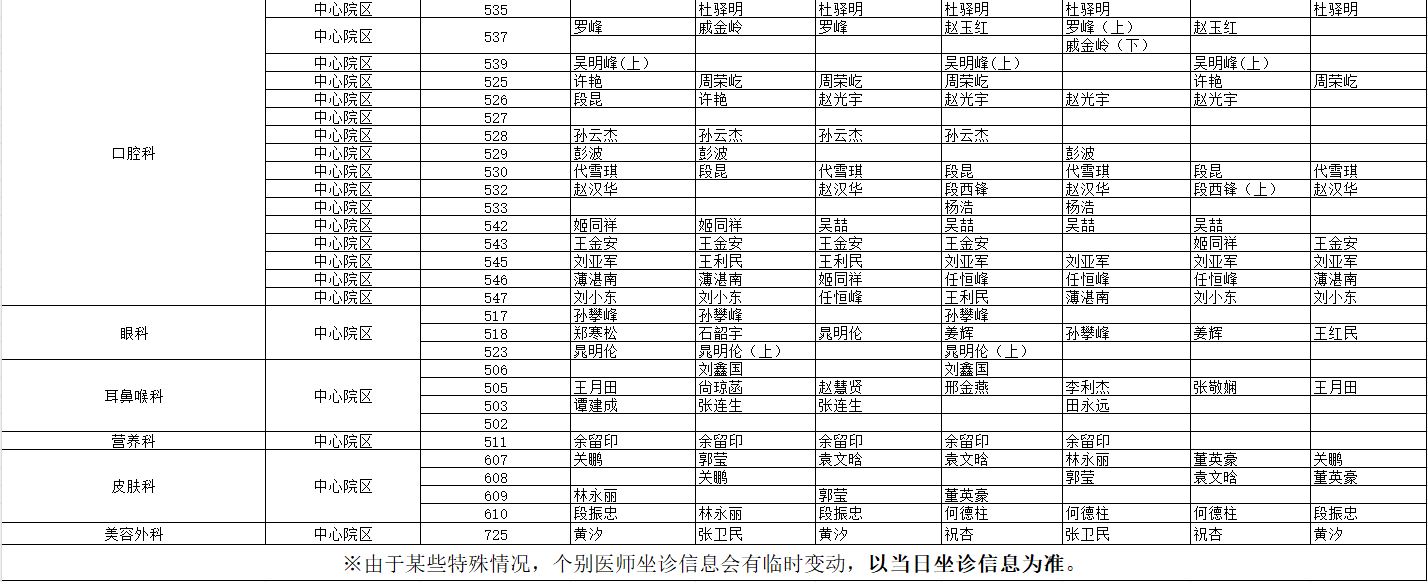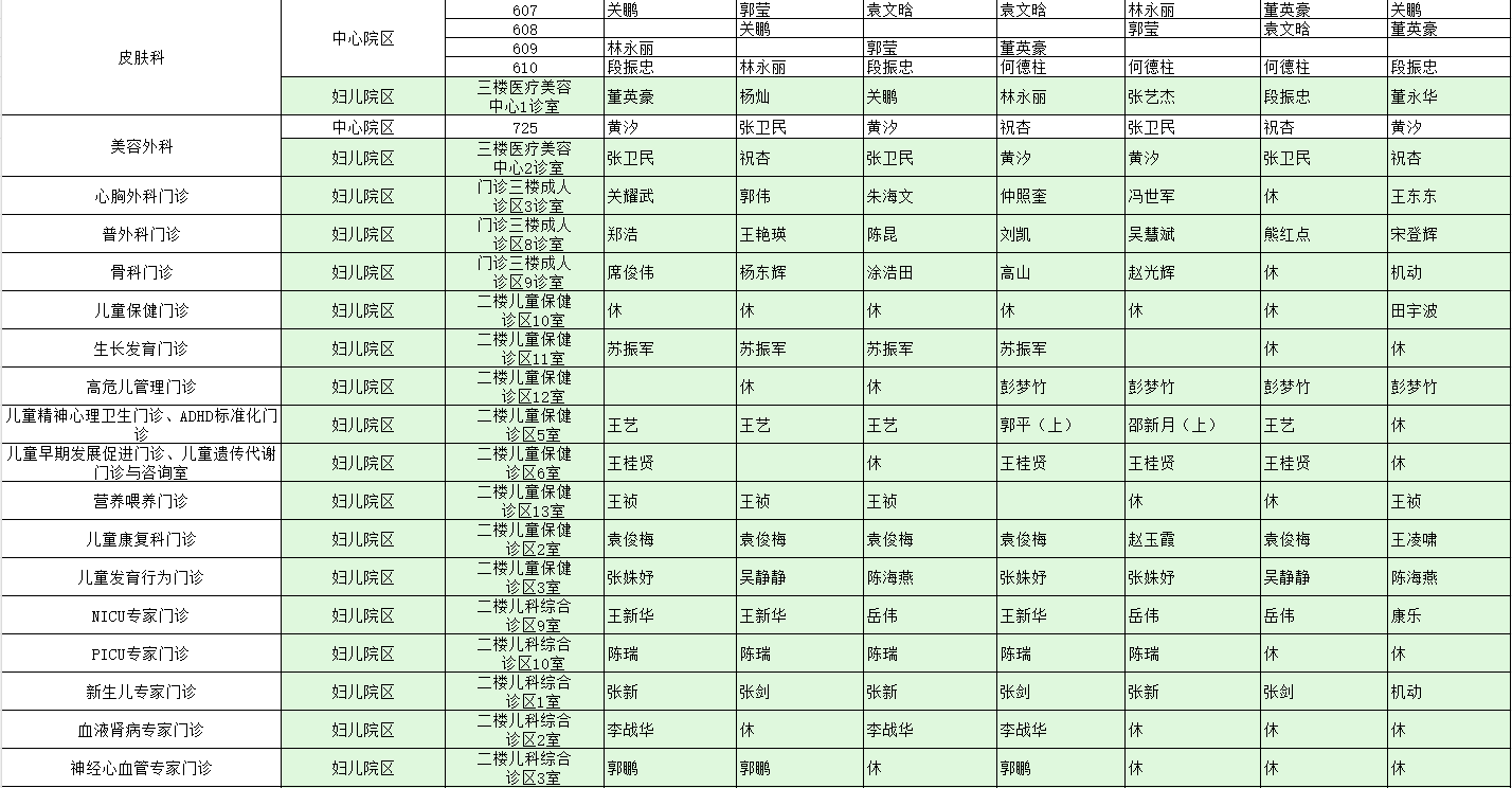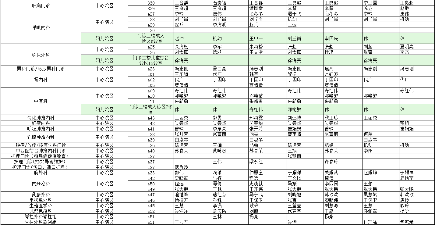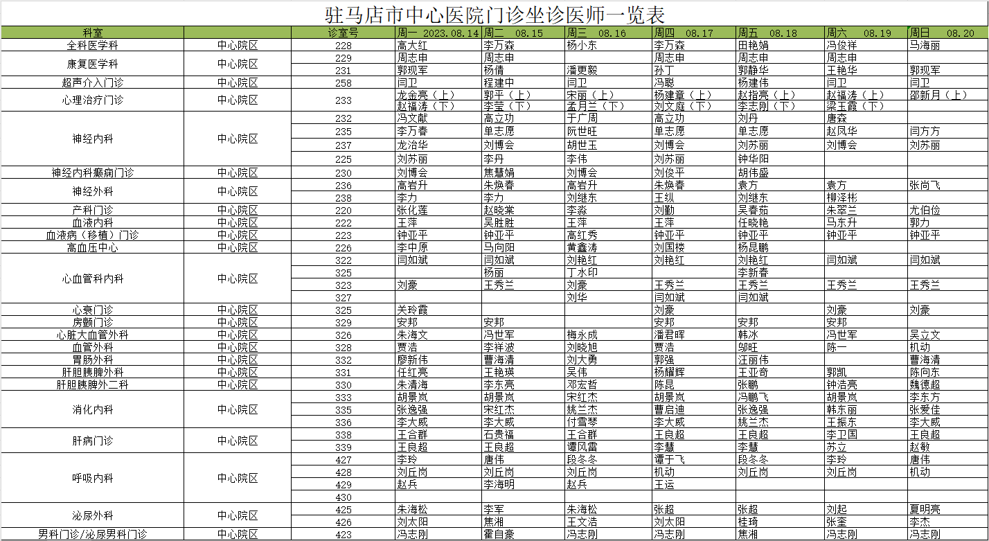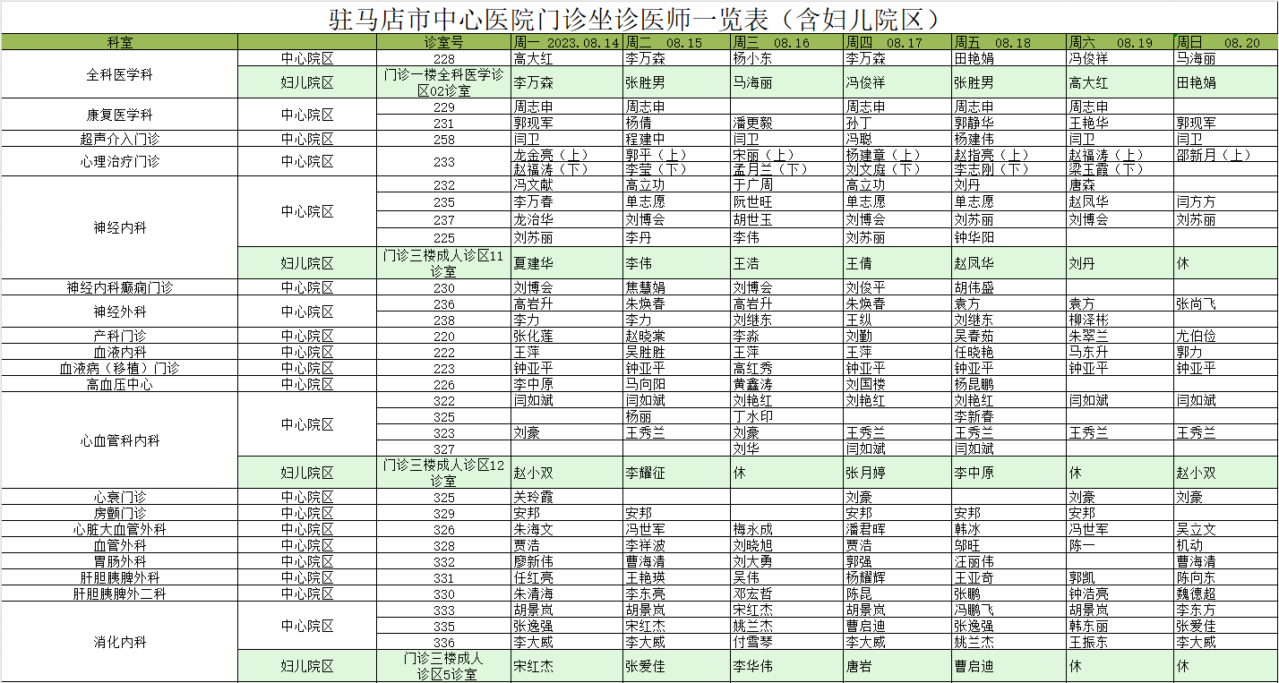驻马店市中心医院门诊坐诊信息一览表(含妇儿院区)