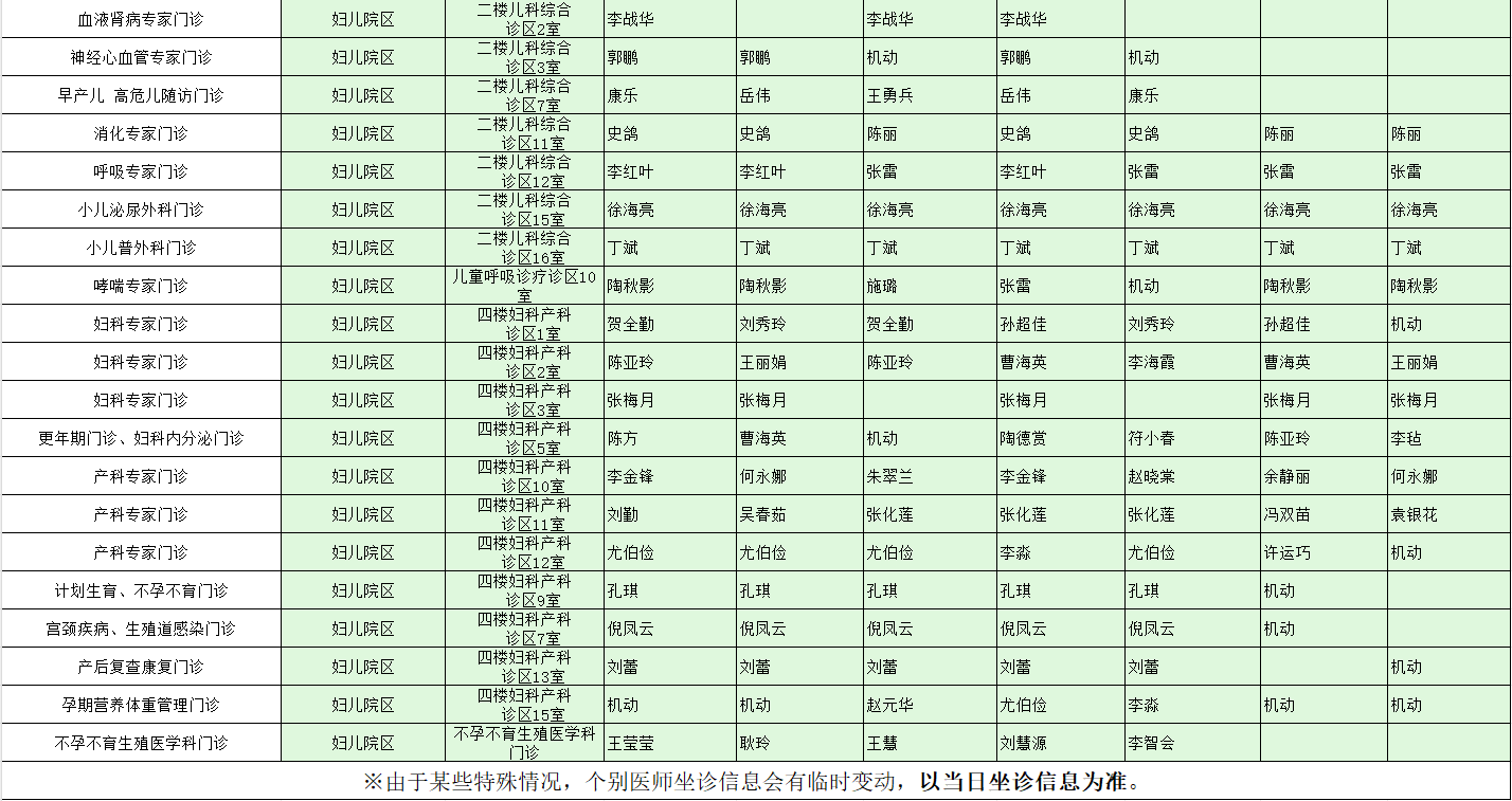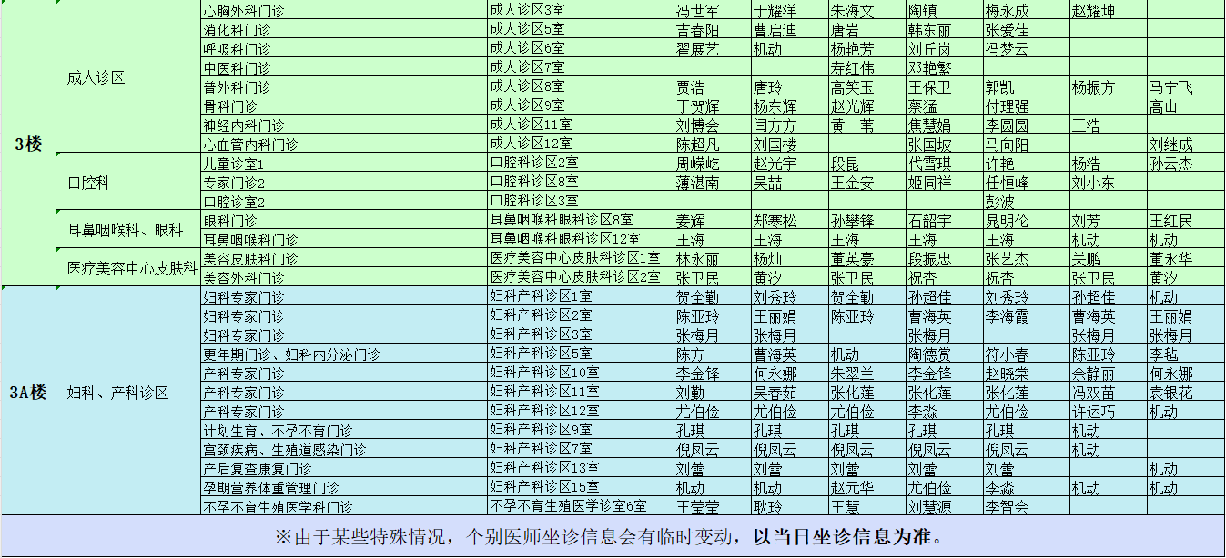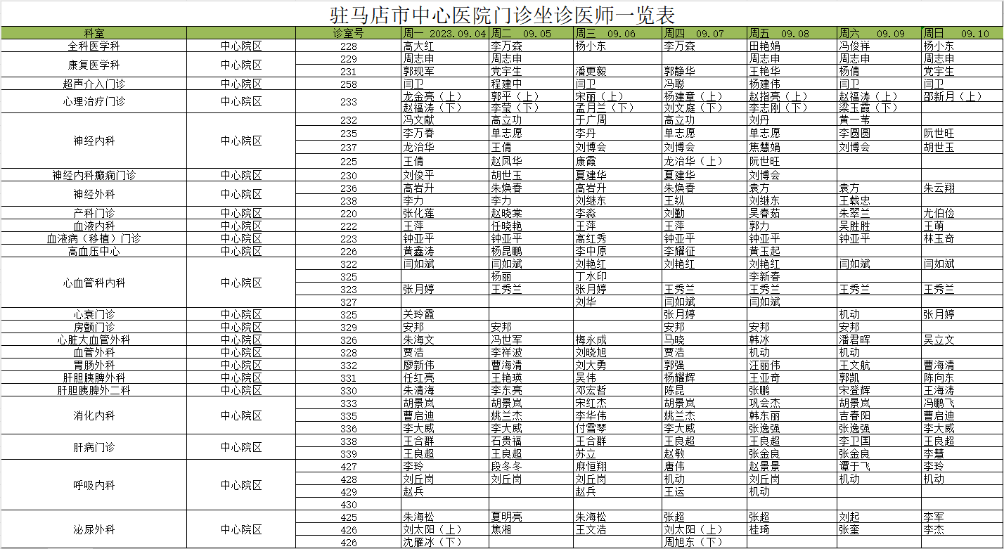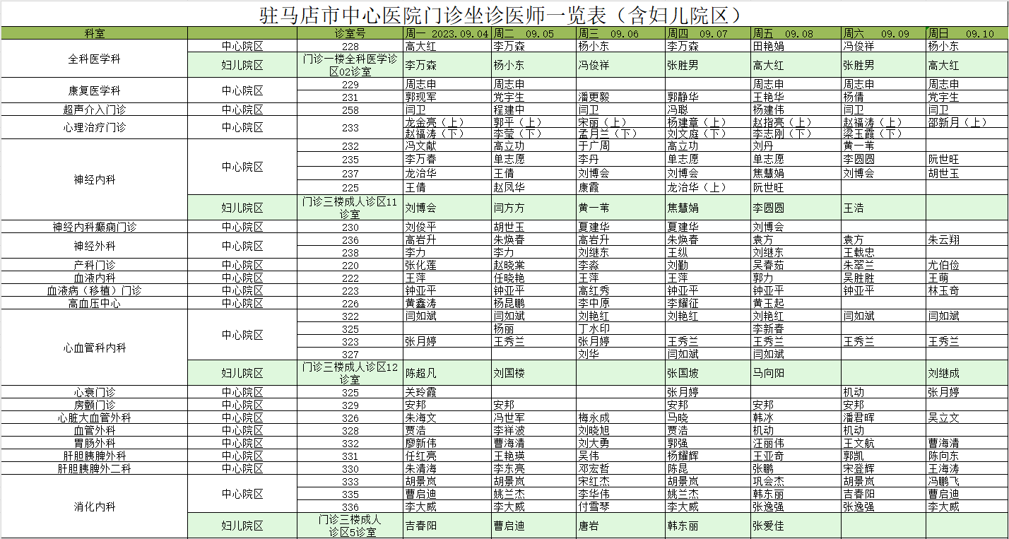 驻马店市中心医院门诊坐诊信息一览表(含妇儿院区)