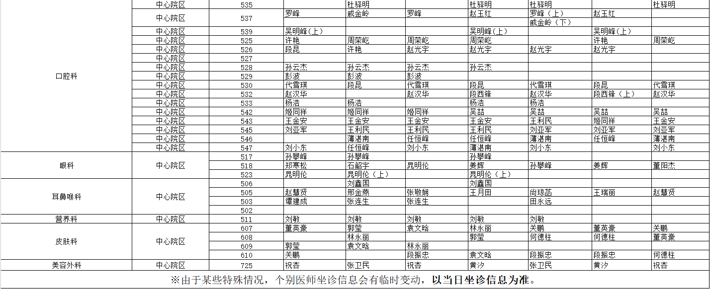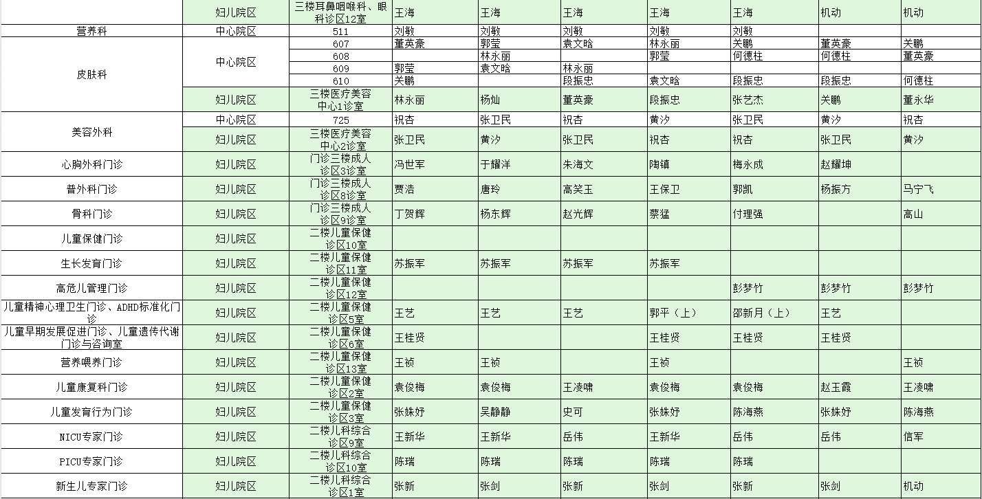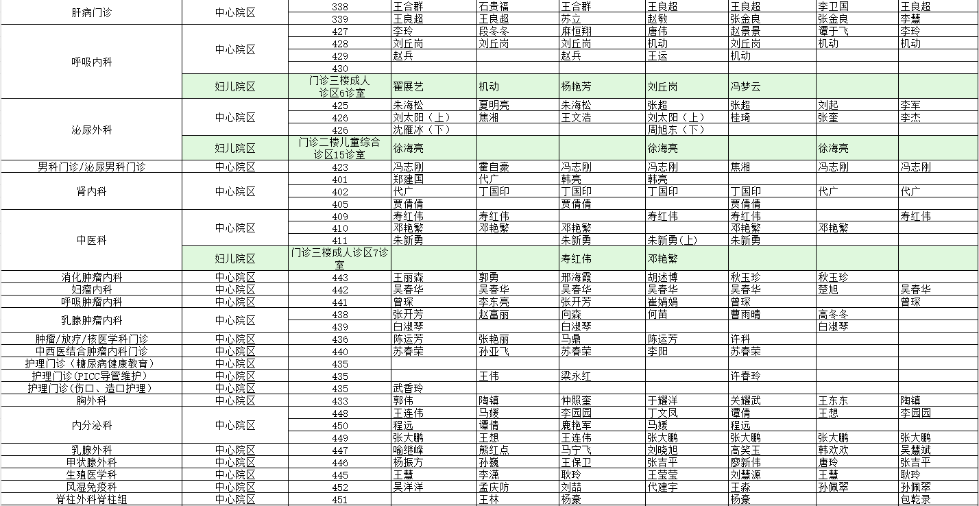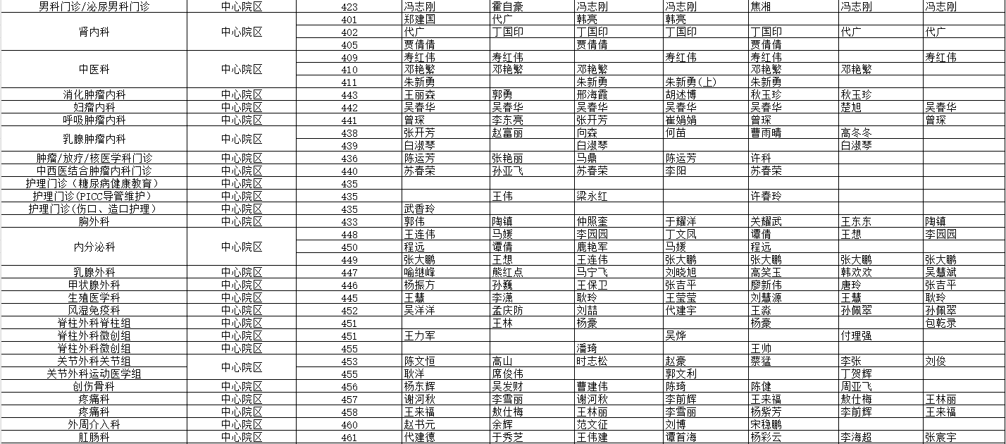 驻马店市中心医院门诊坐诊信息一览表(含妇儿院区)