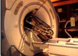有人会问:机器还没运转,检查都没开始,是不是可以先把轮椅或金属拐杖送进 MRI 机房再拿出来呢?