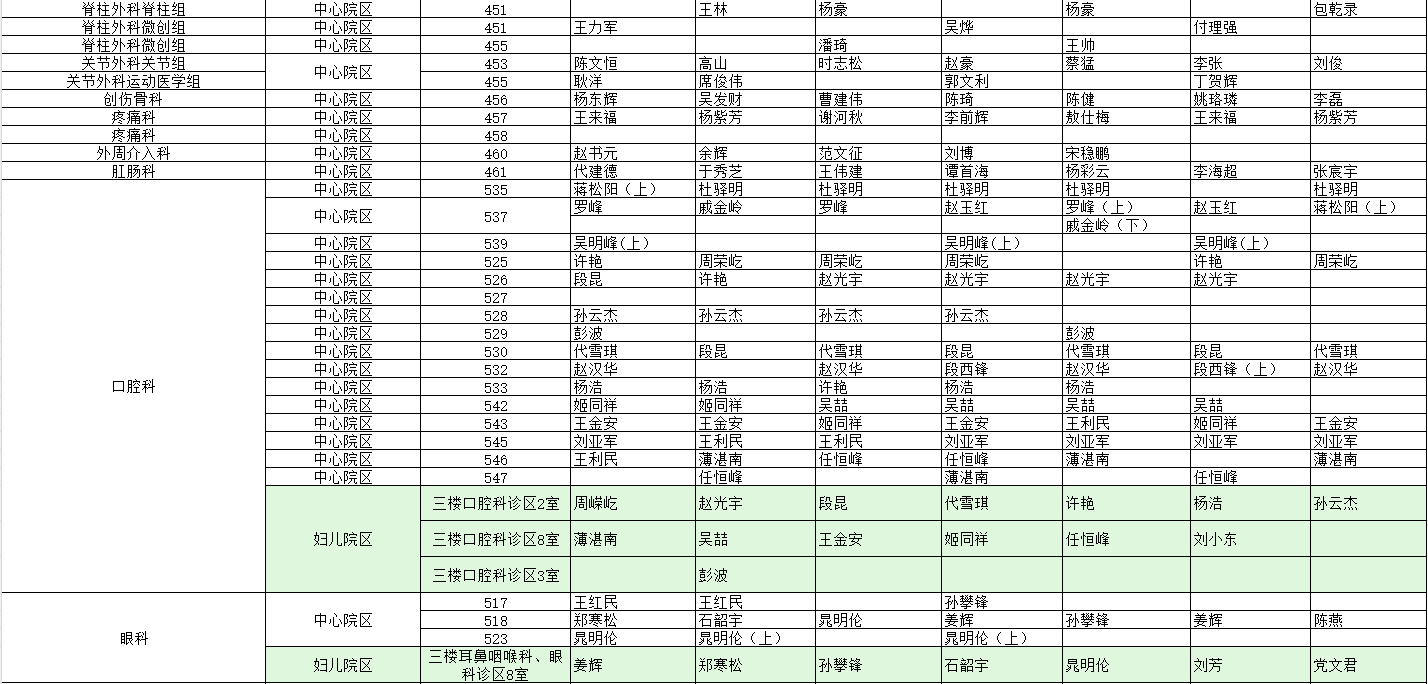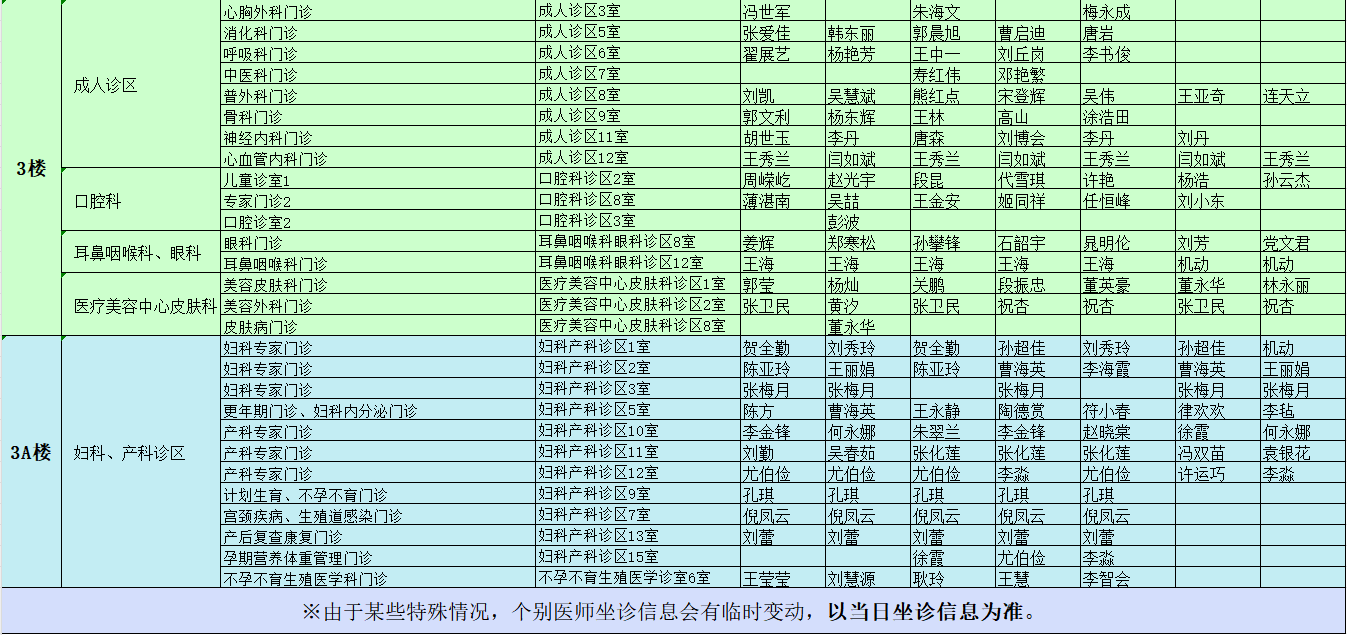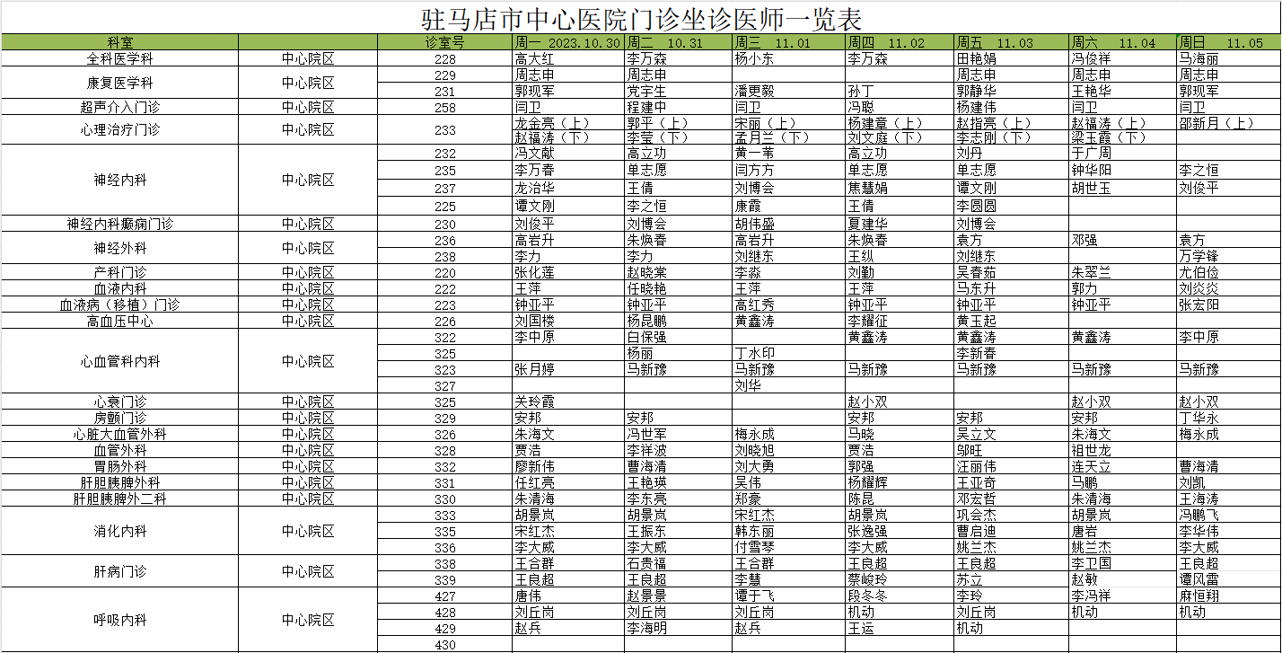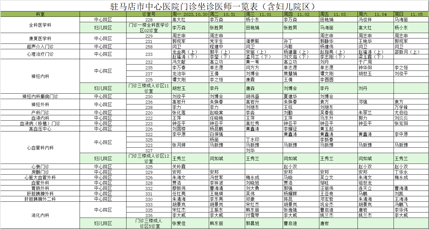 驻马店市中心医院门诊坐诊信息一览表(含妇儿院区)