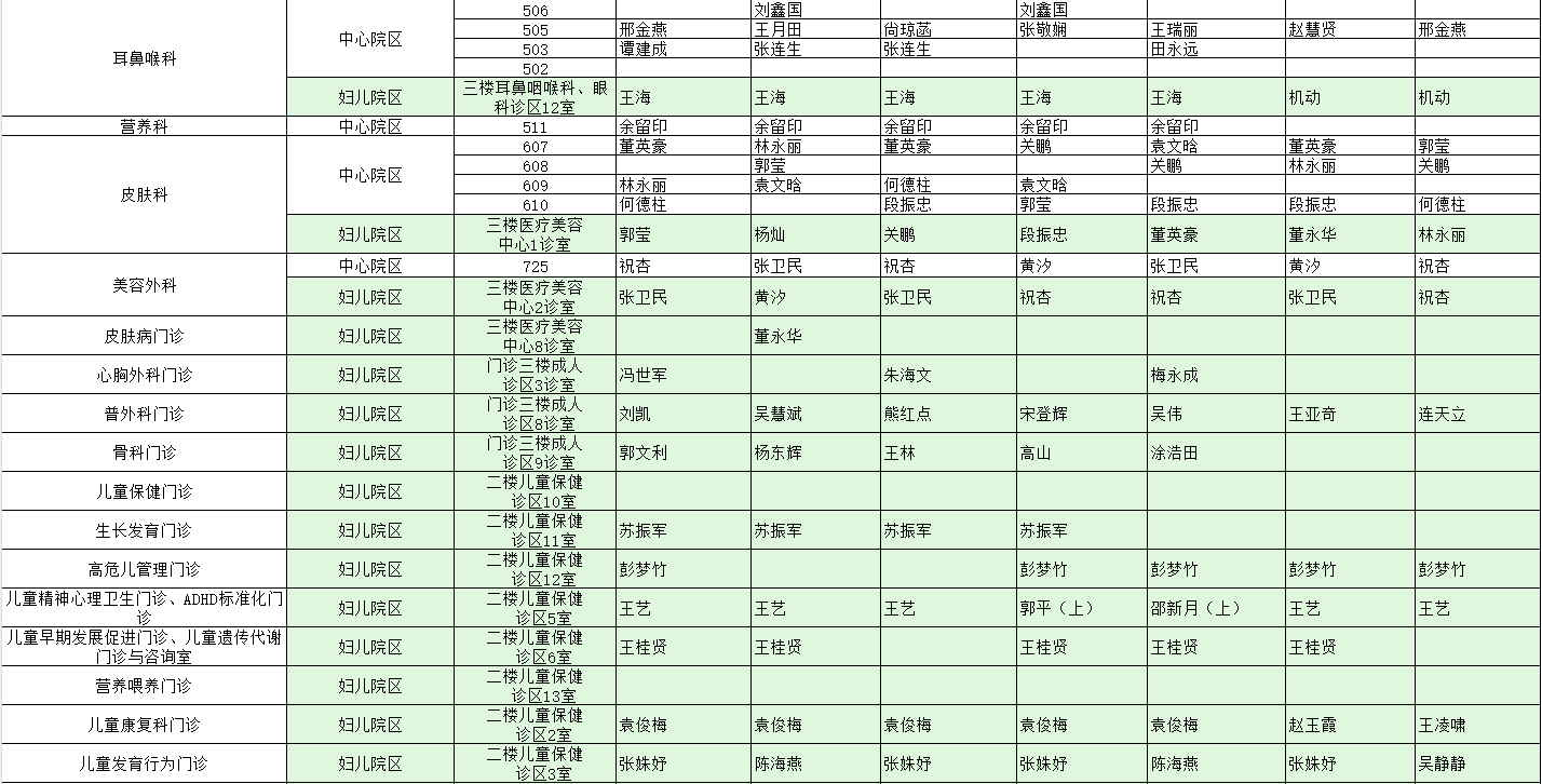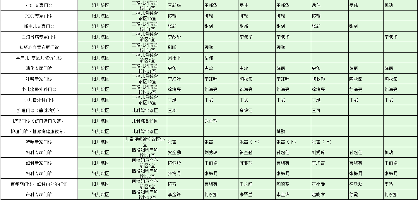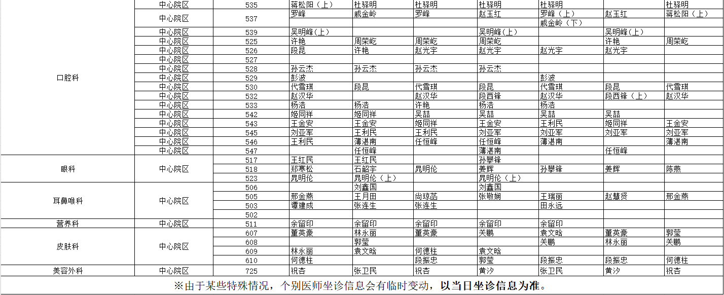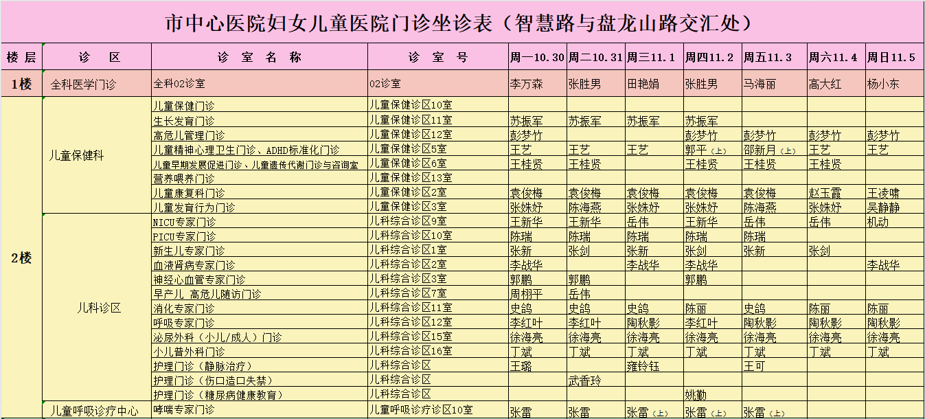 驻马店市中心医院门诊坐诊信息一览表(含妇儿院区)