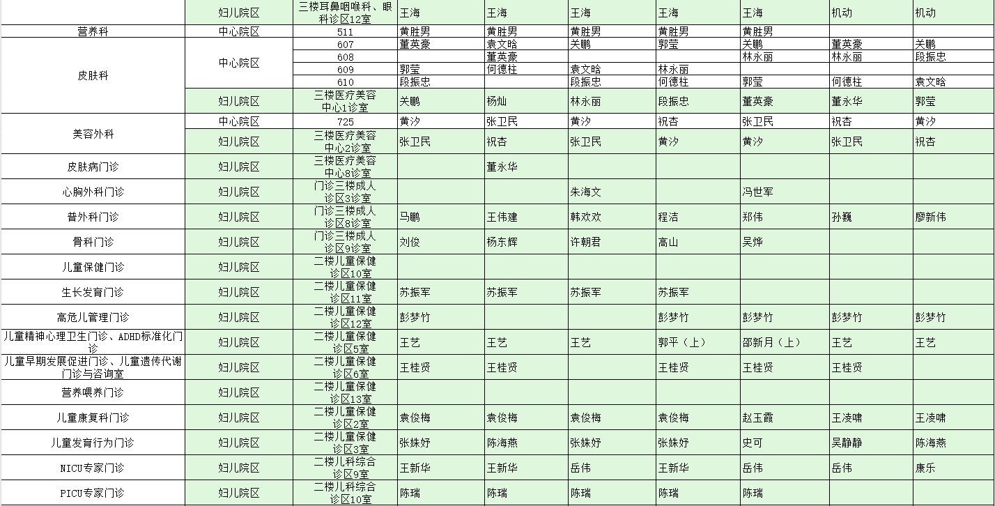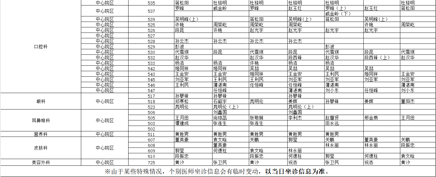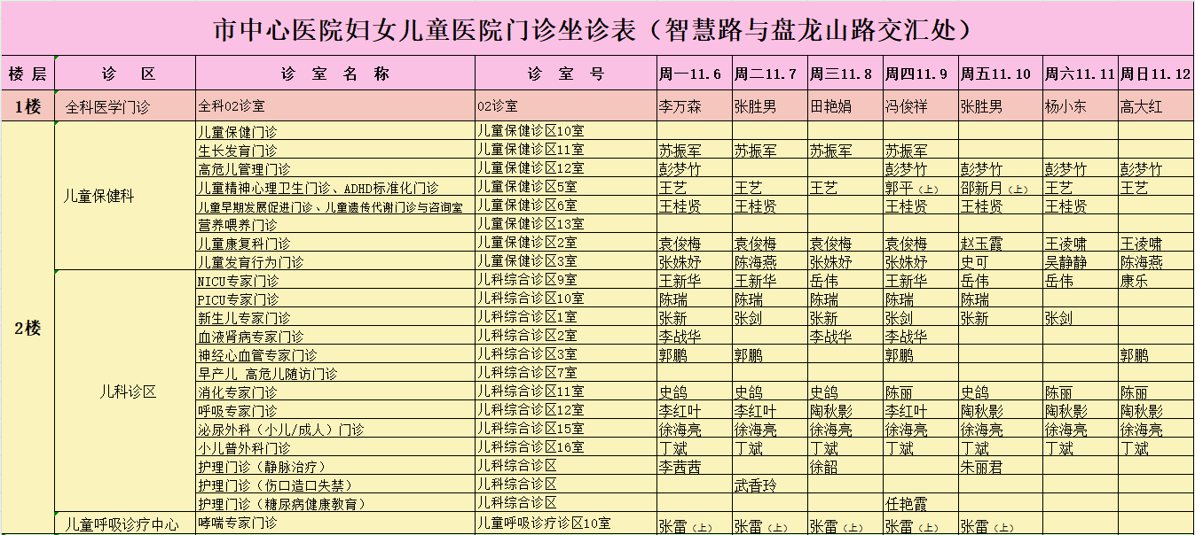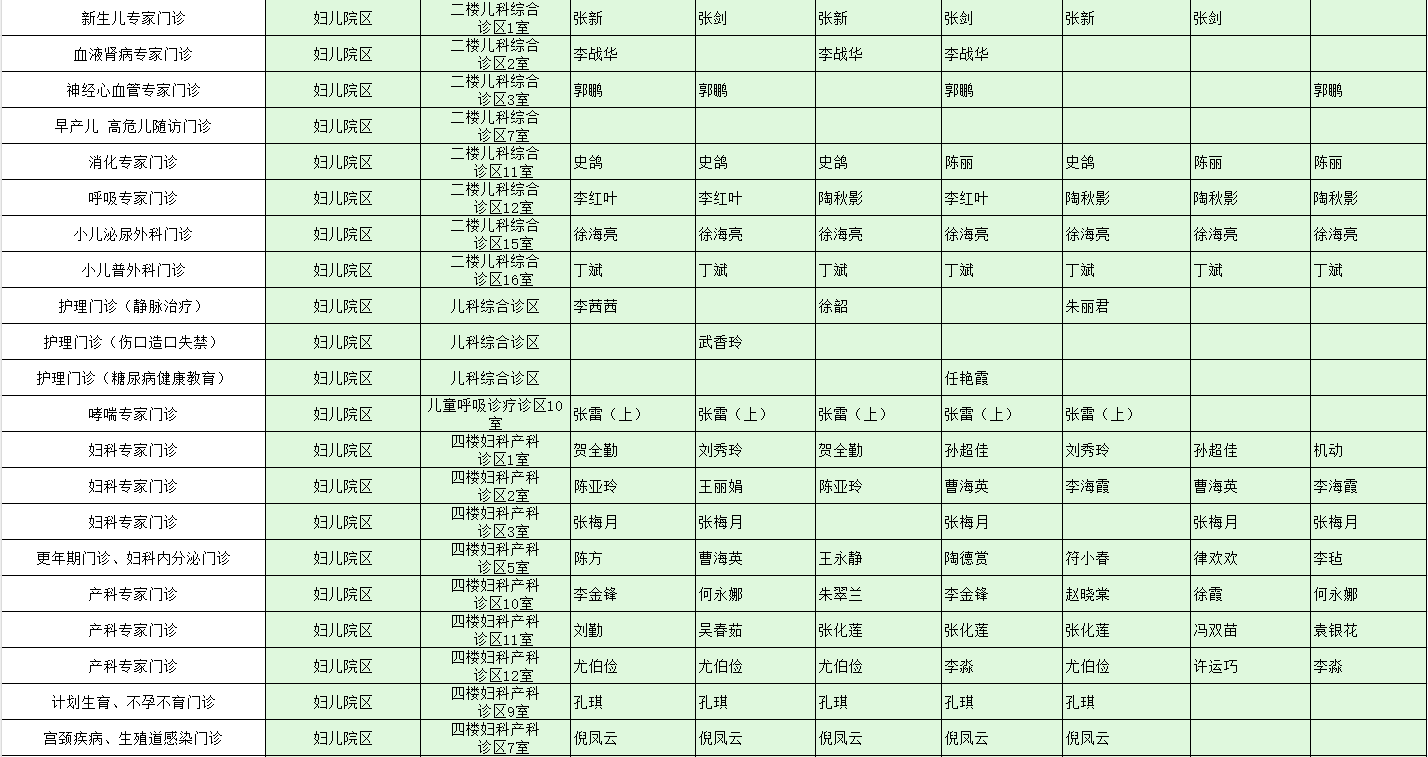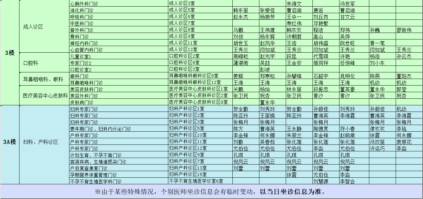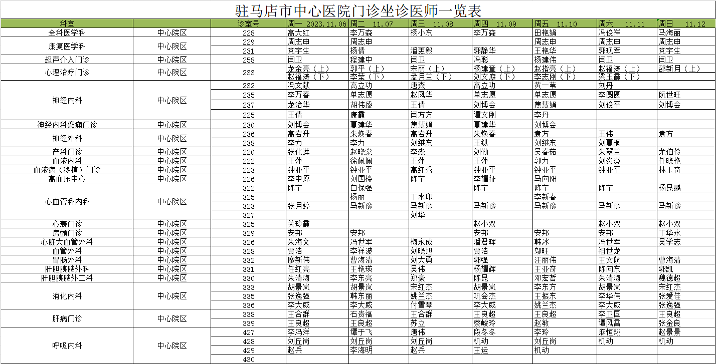 驻马店市中心医院门诊坐诊信息一览表(含妇儿院区)