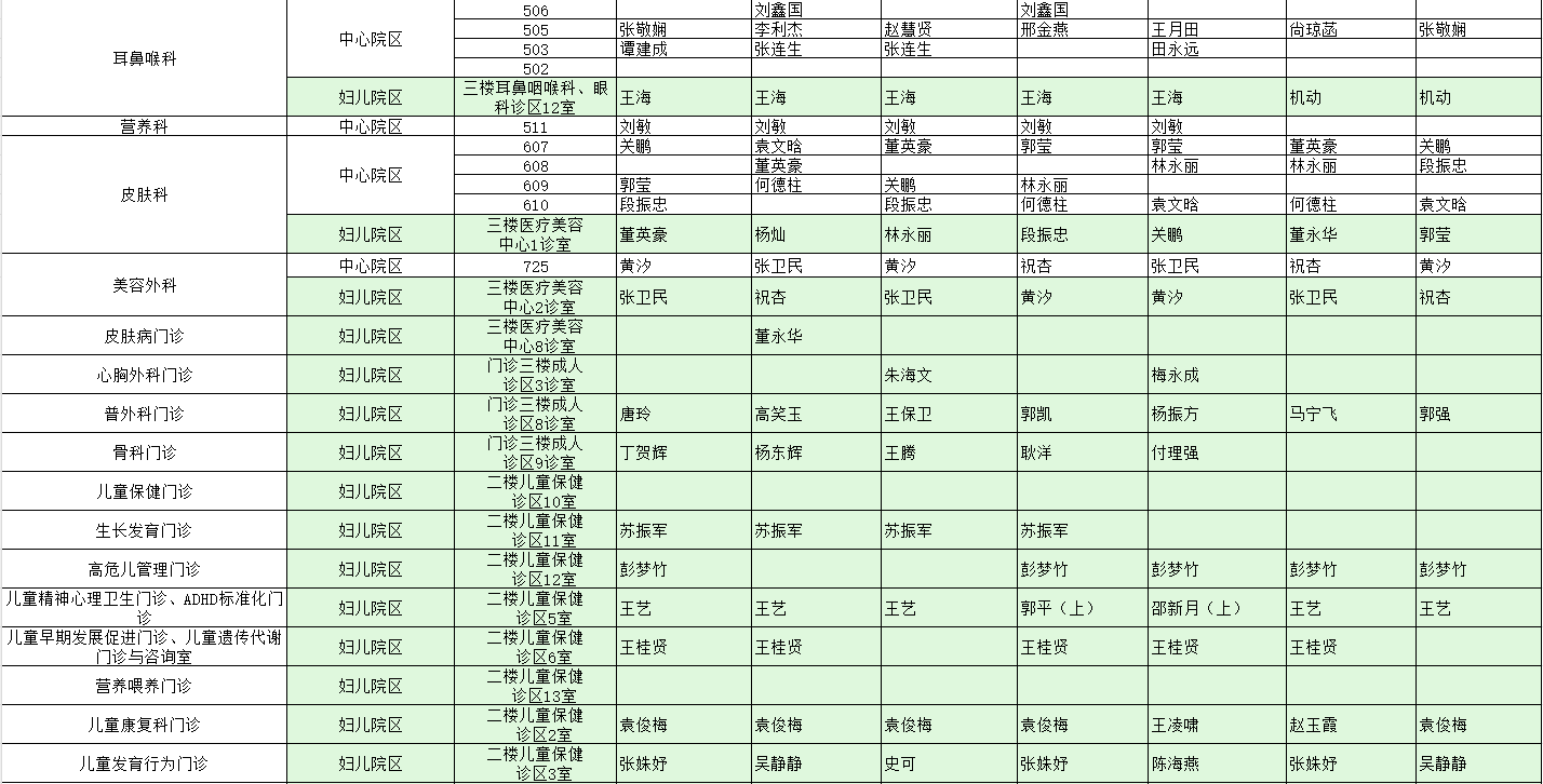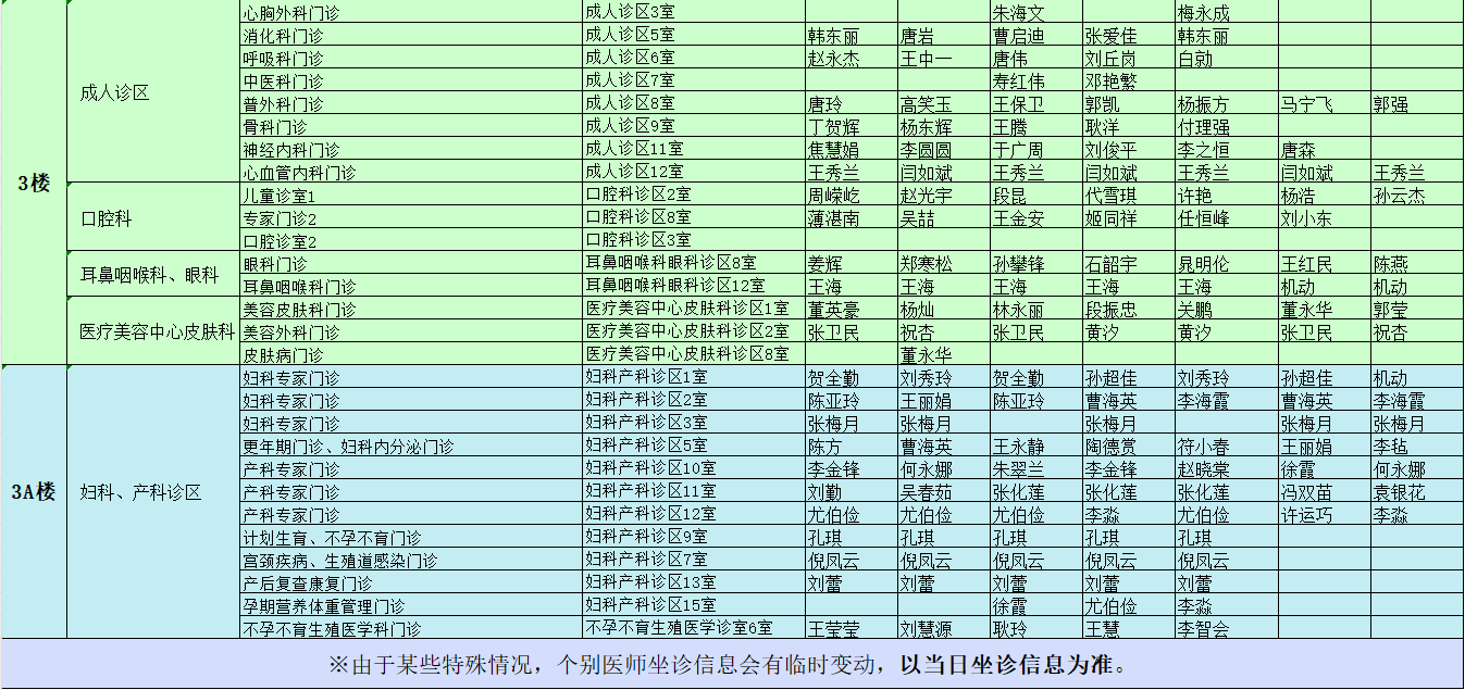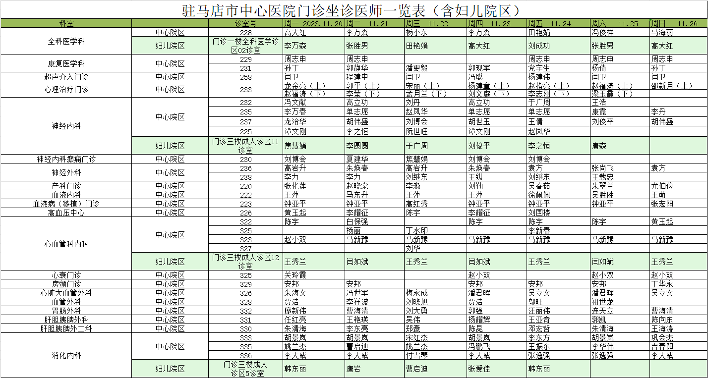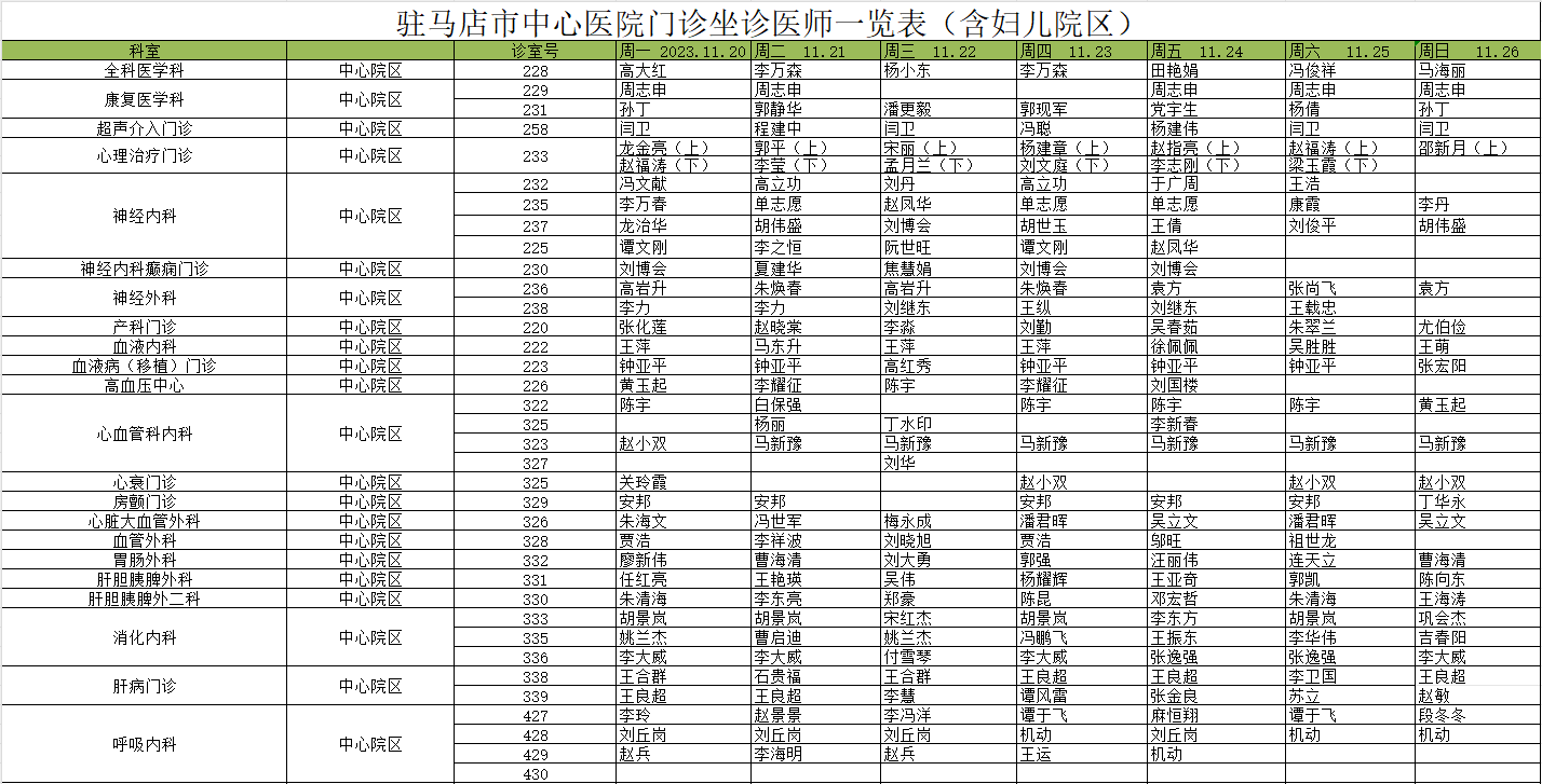 驻马店市中心医院门诊坐诊信息一览表(含妇儿院区)