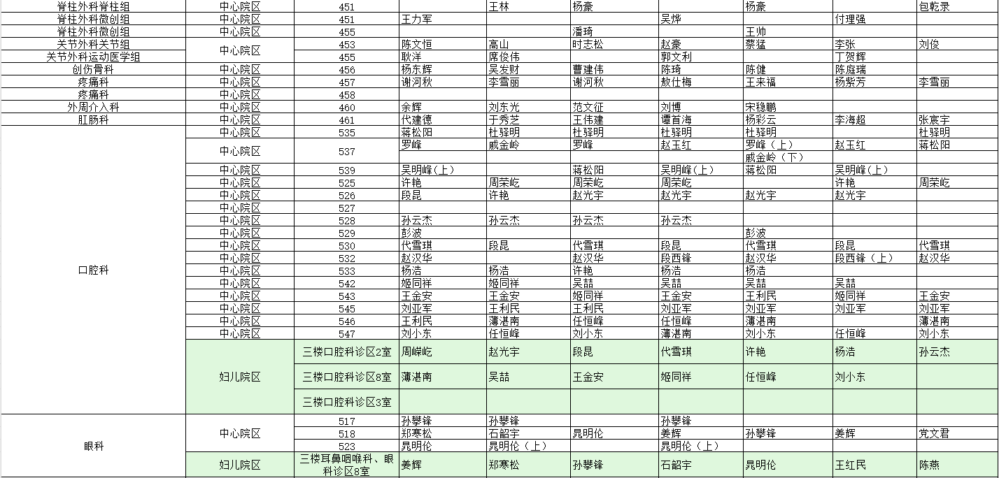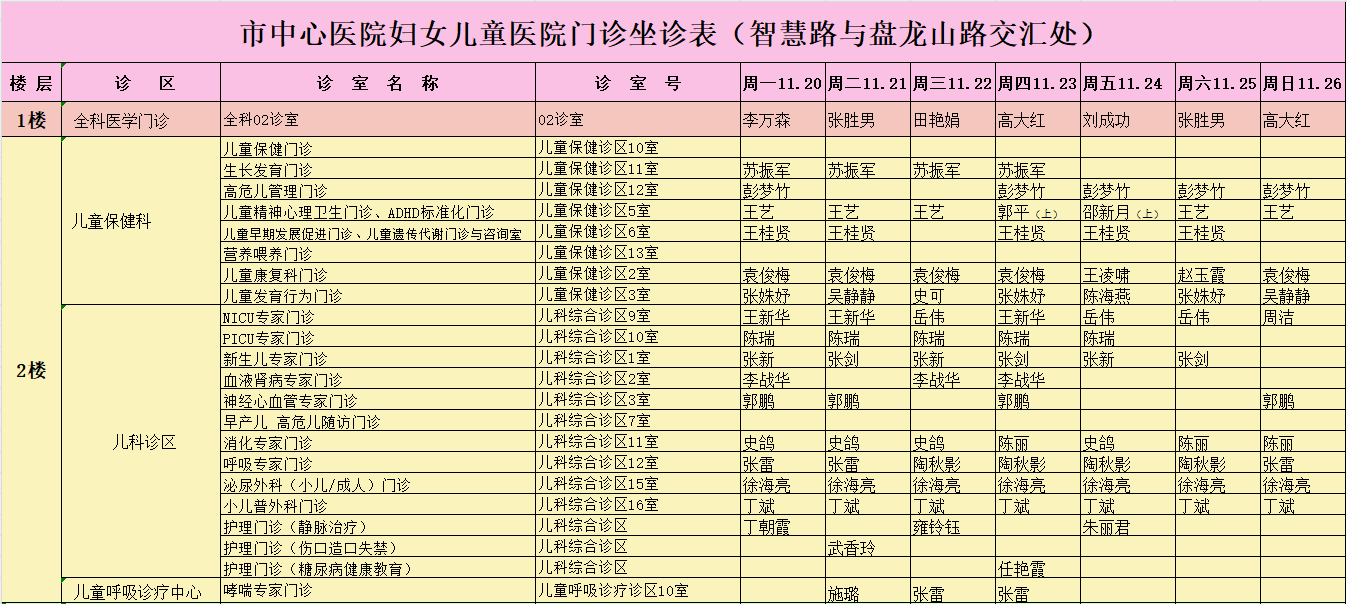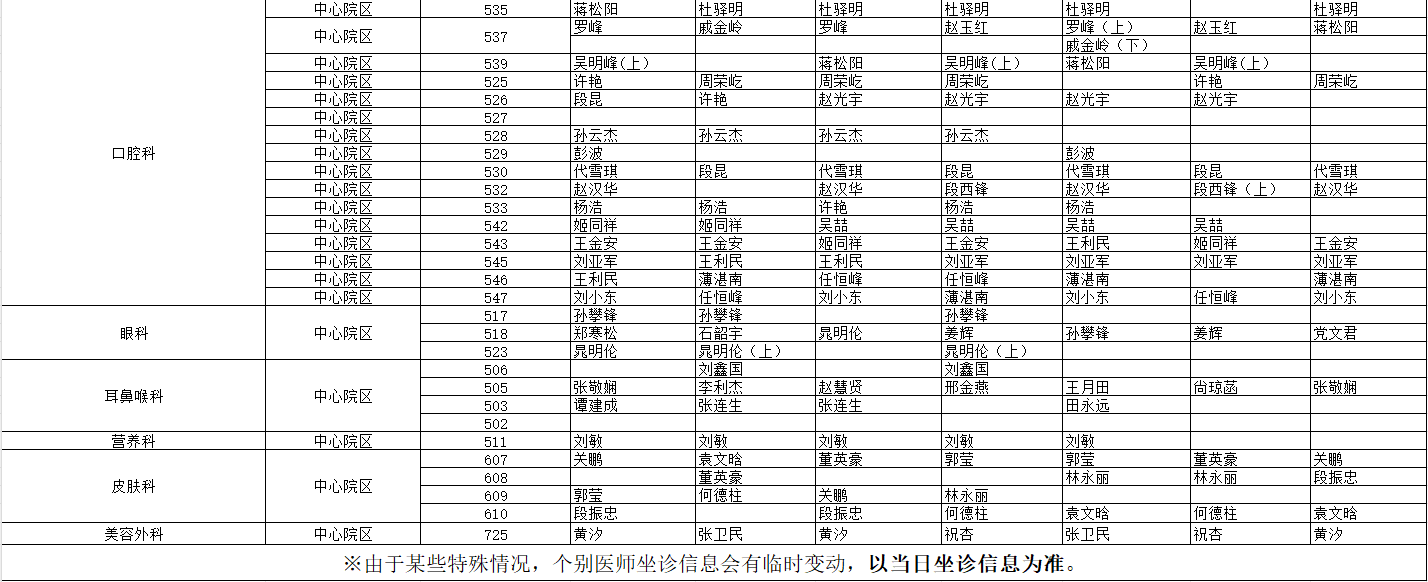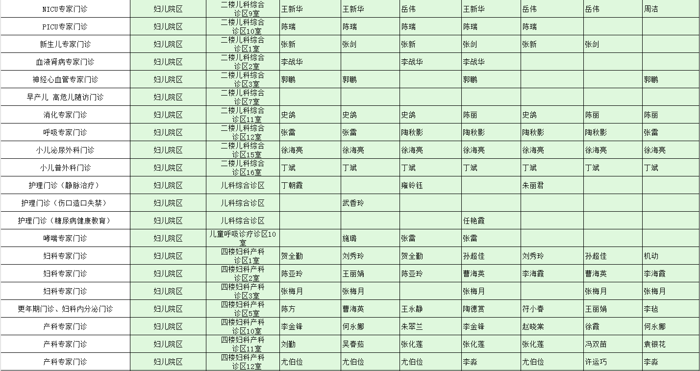 驻马店市中心医院门诊坐诊信息一览表(含妇儿院区)