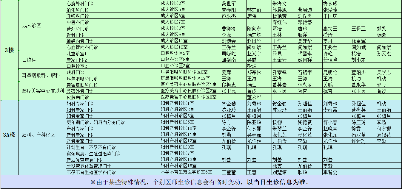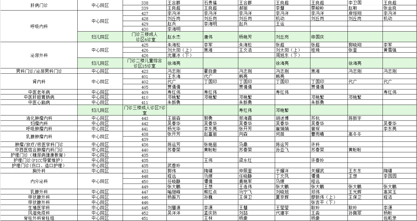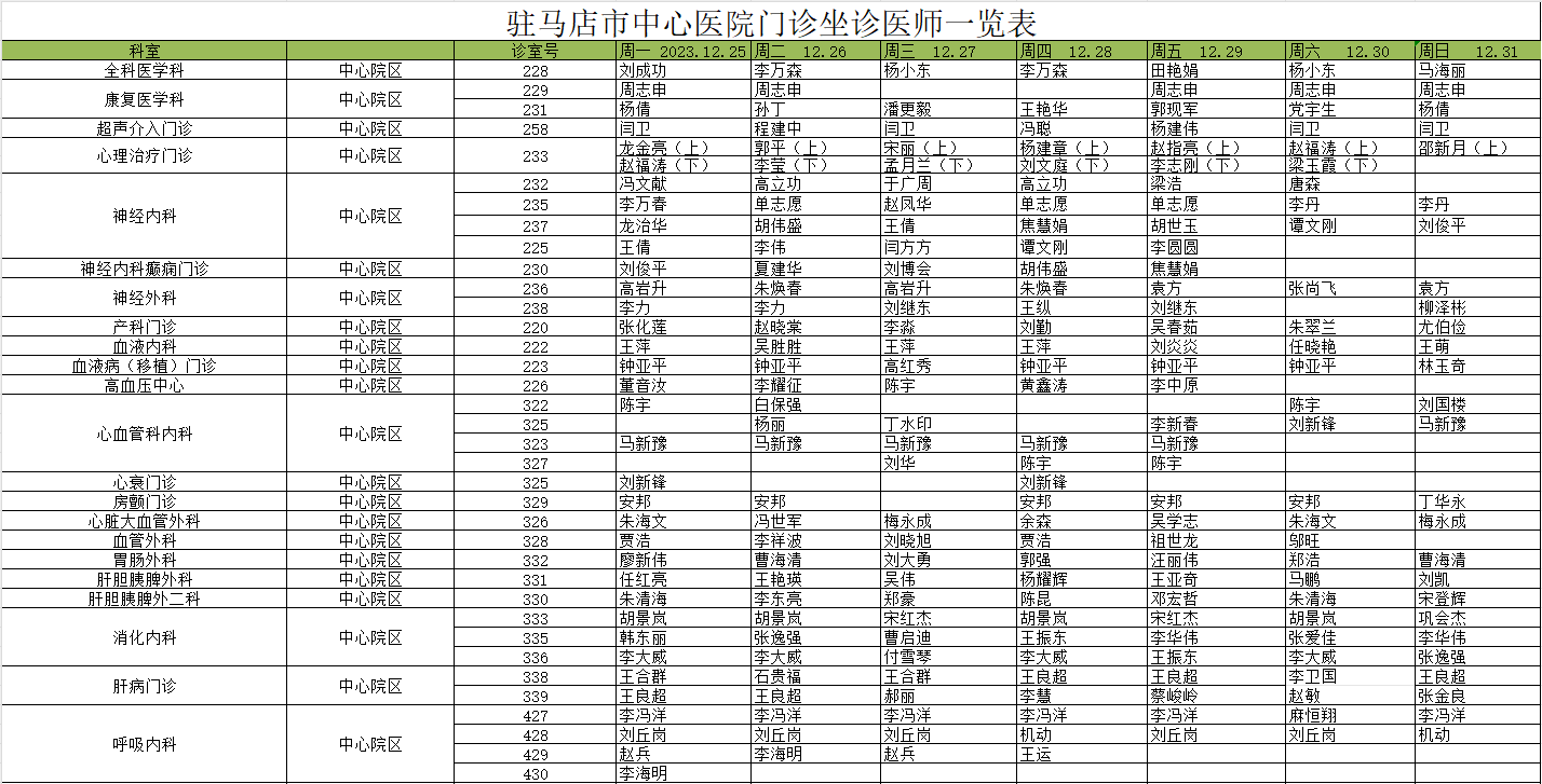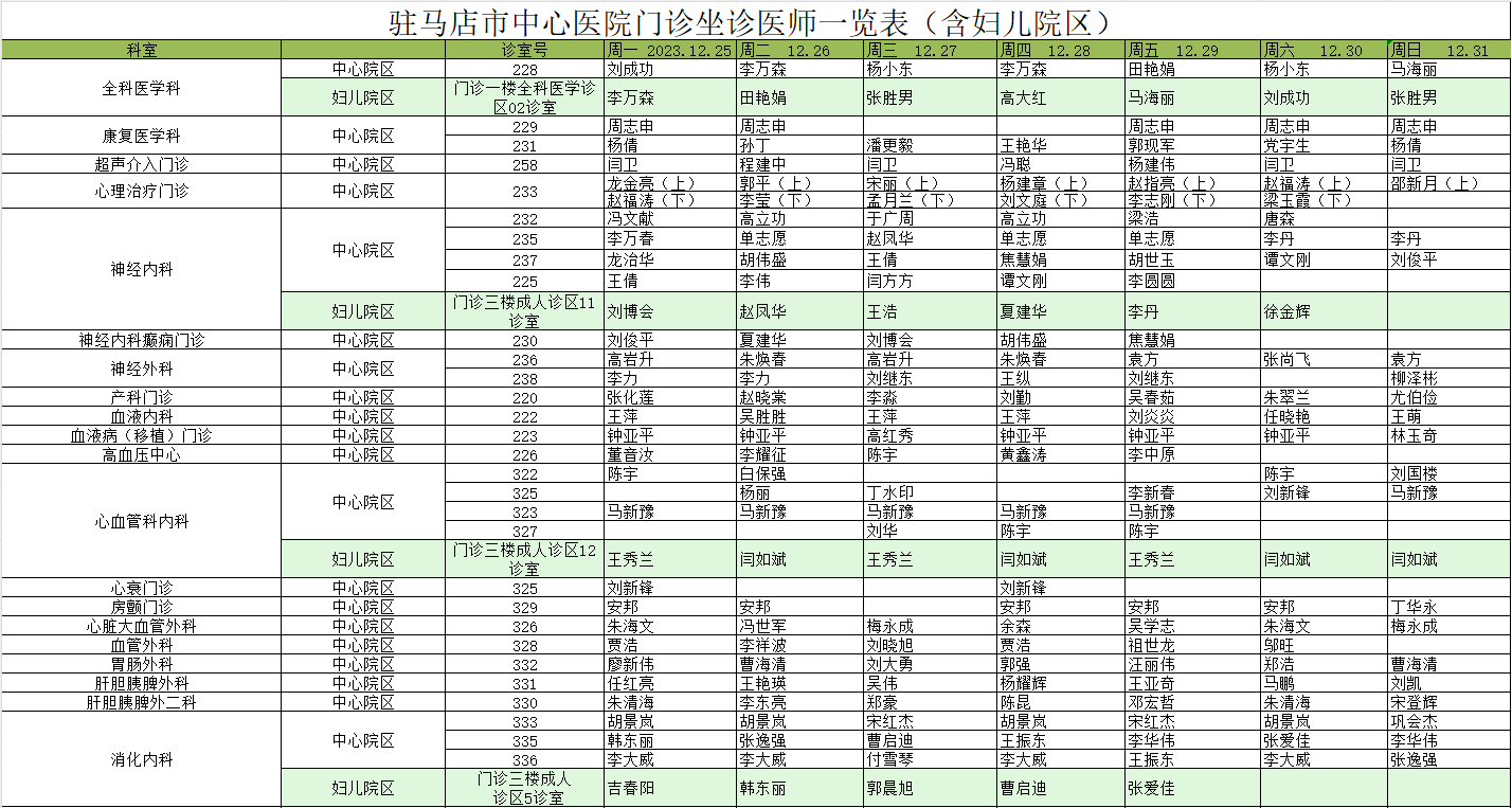 驻马店市中心医院门诊坐诊信息一览表(含妇儿院区)