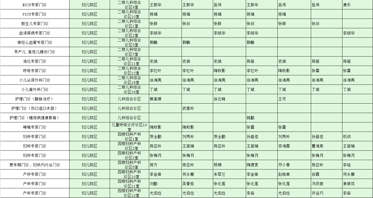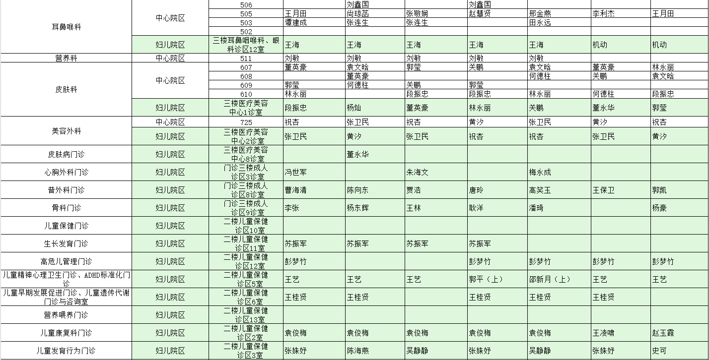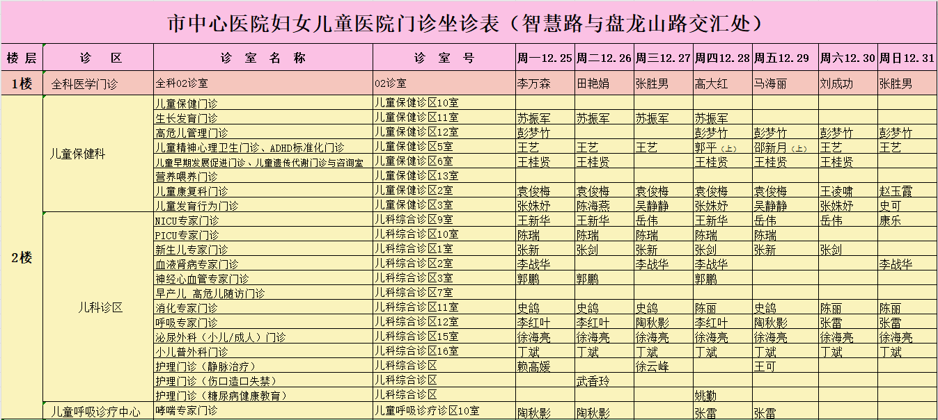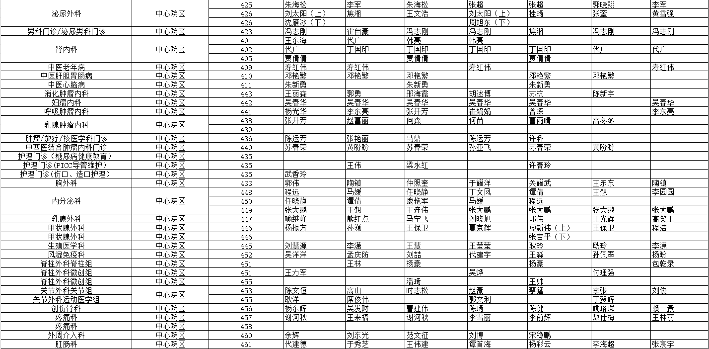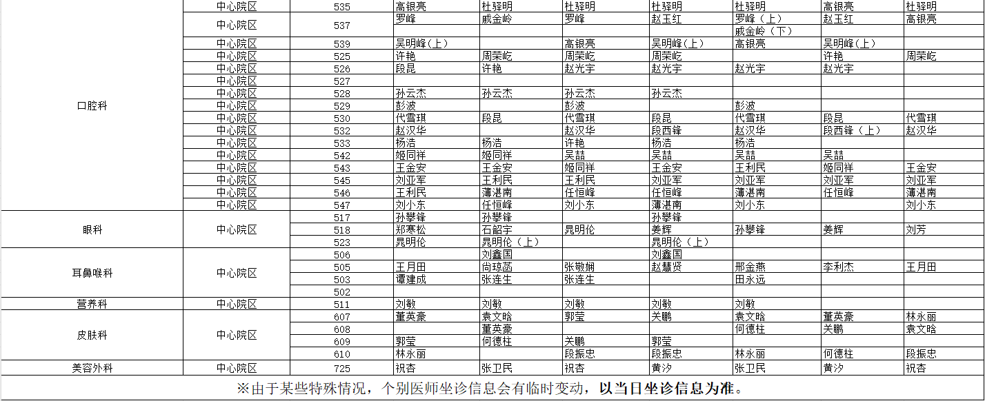 驻马店市中心医院门诊坐诊信息一览表(含妇儿院区)