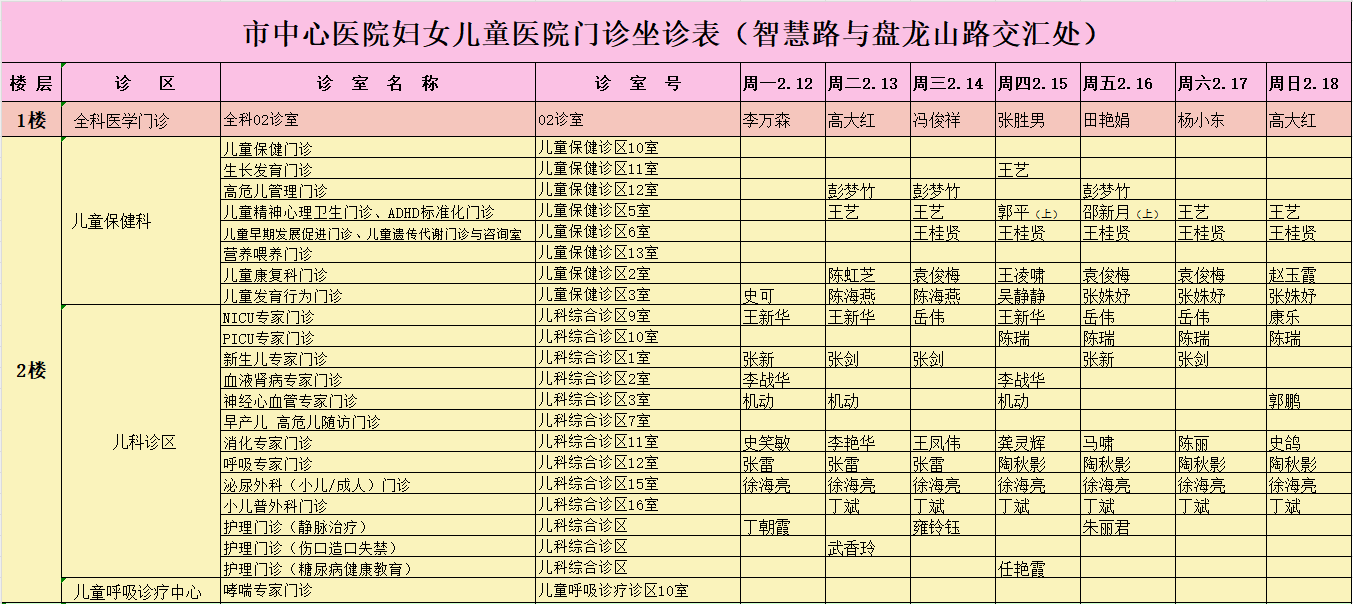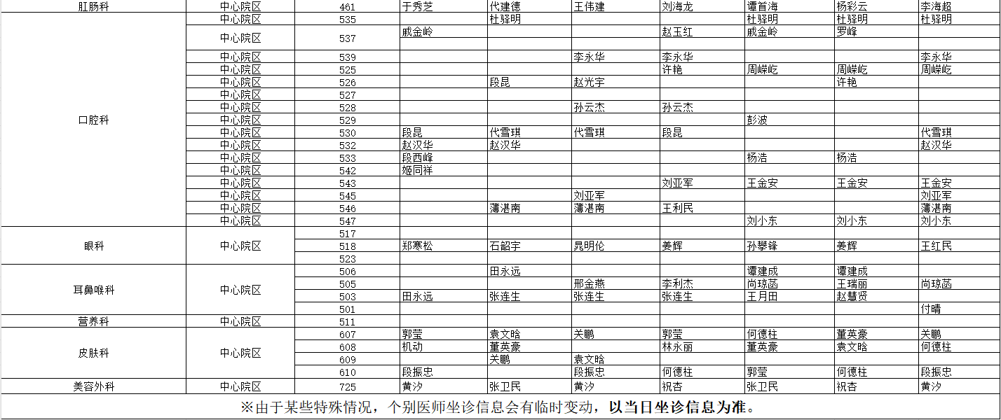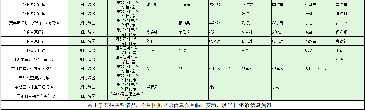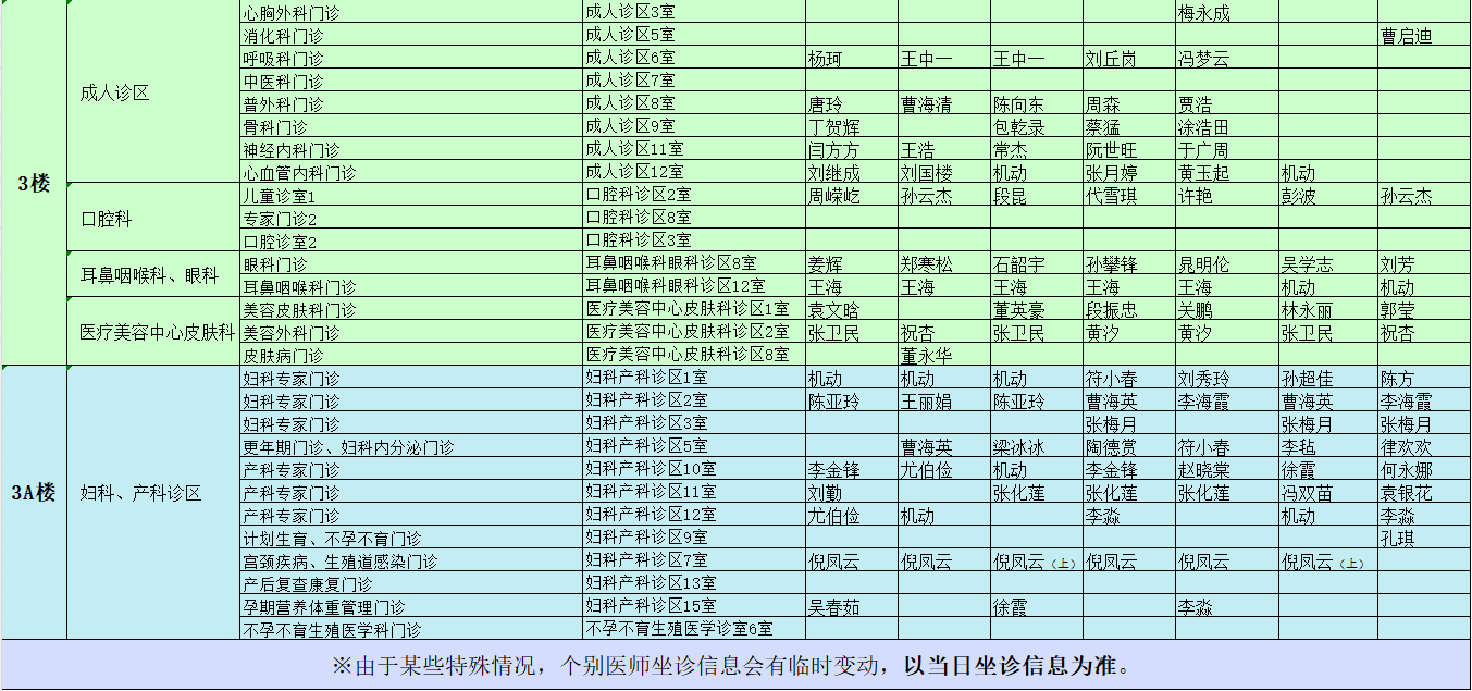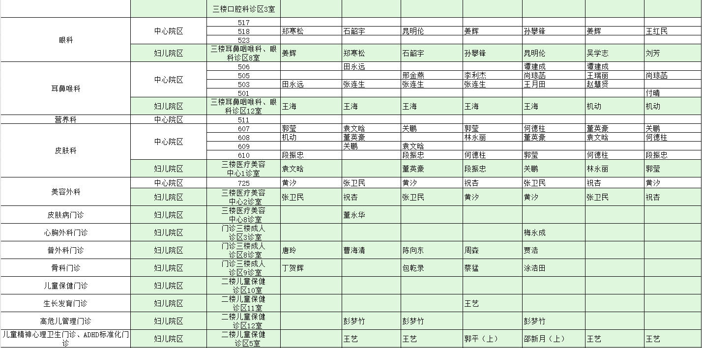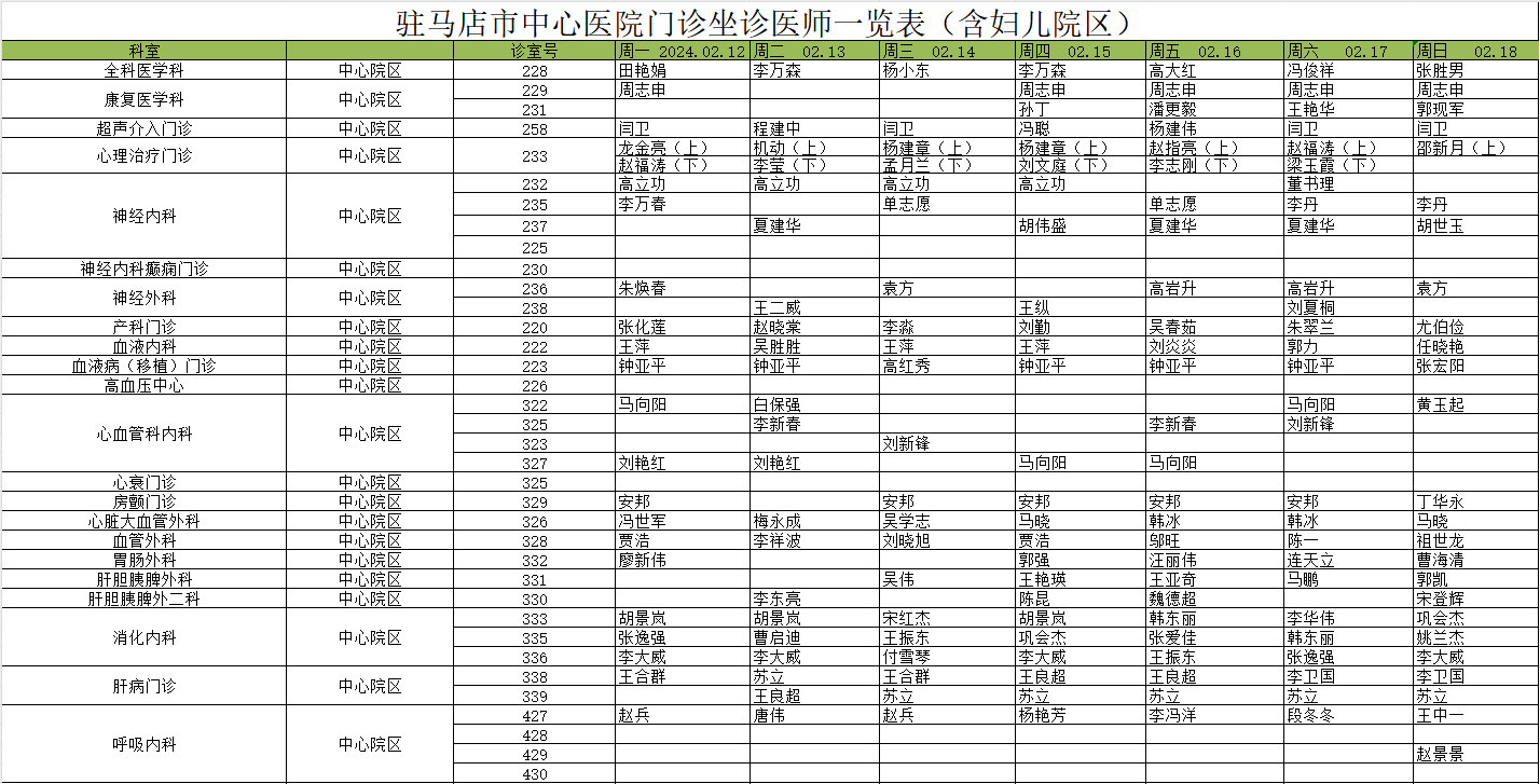 驻马店市中心医院门诊坐诊信息一览表(含妇儿院区)