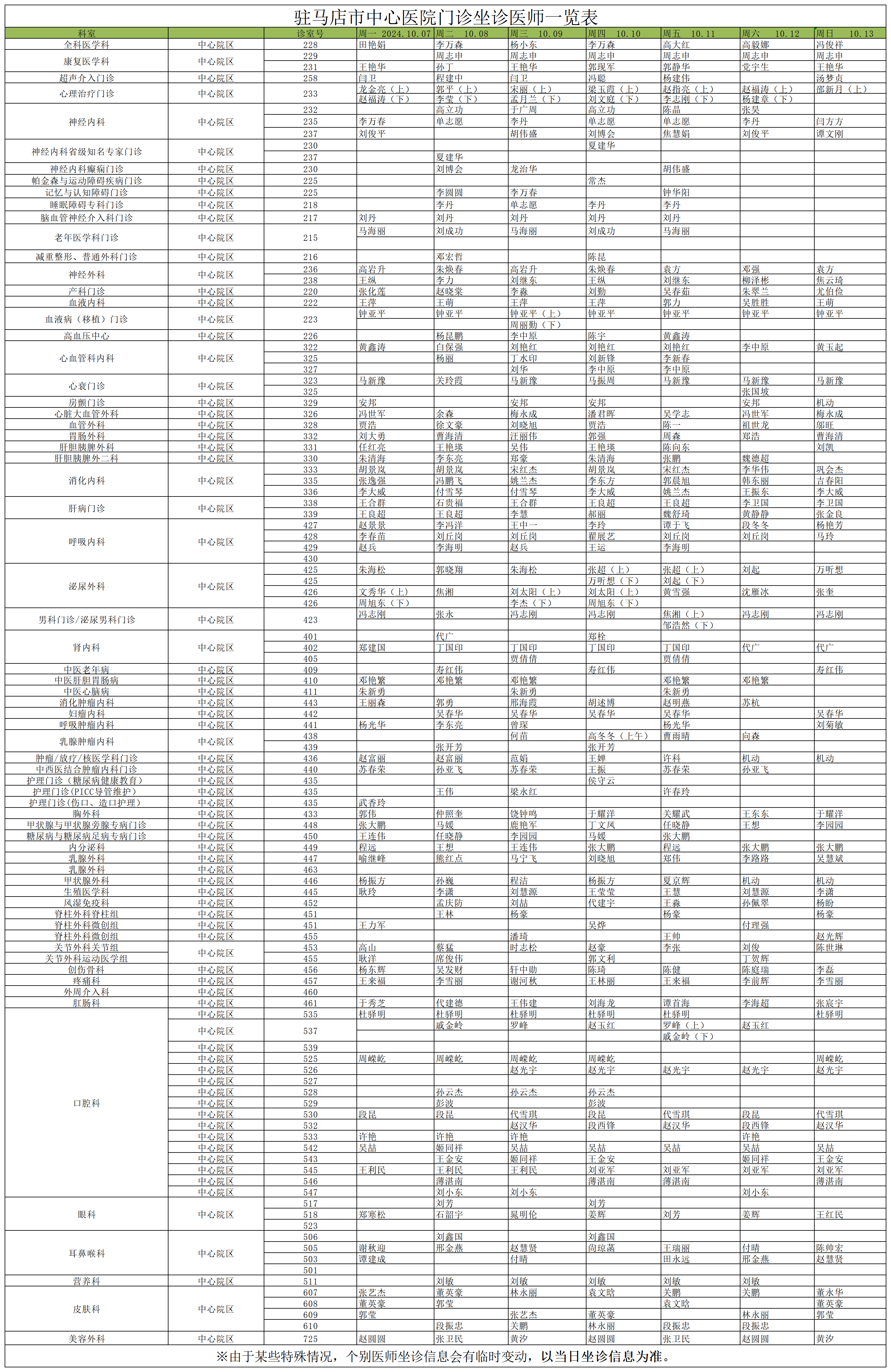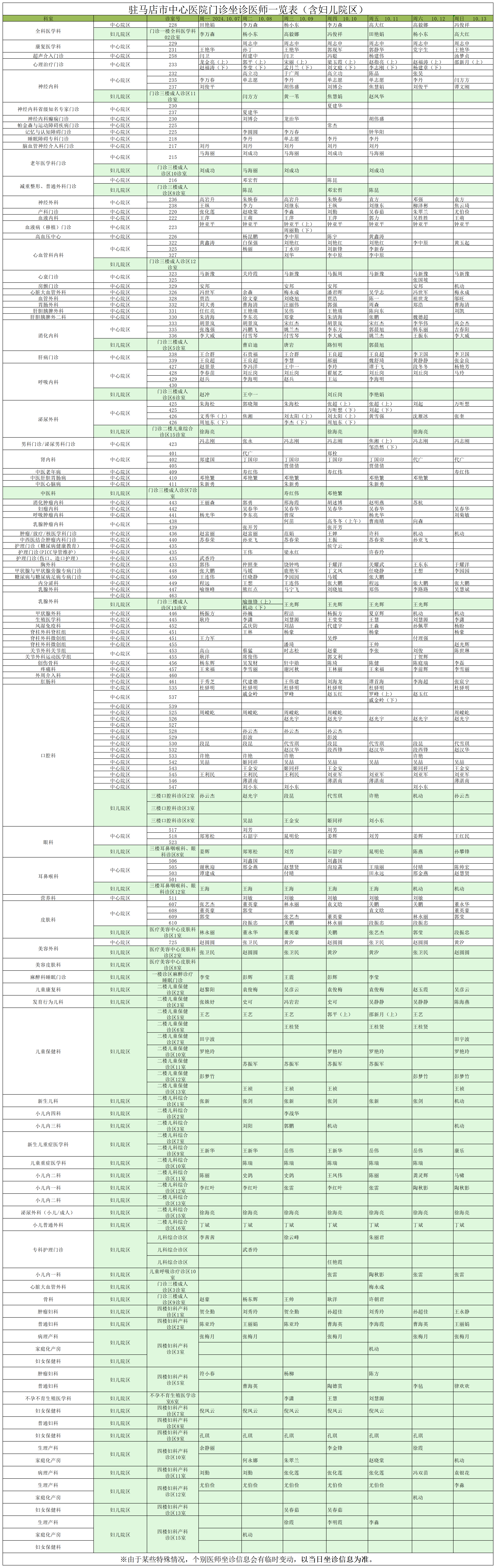 驻马店市中心医院门诊坐诊信息一览表(含妇儿院区)