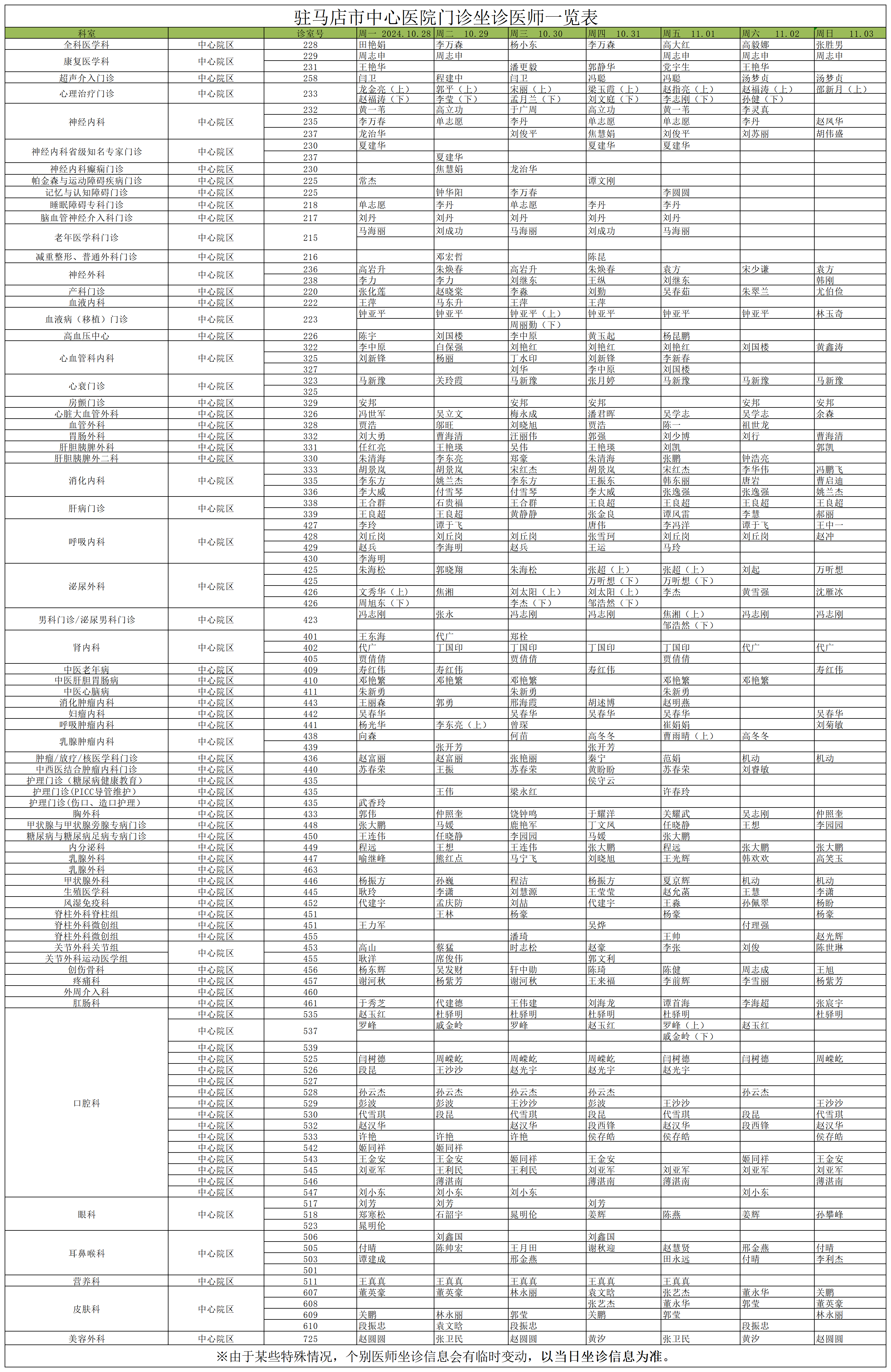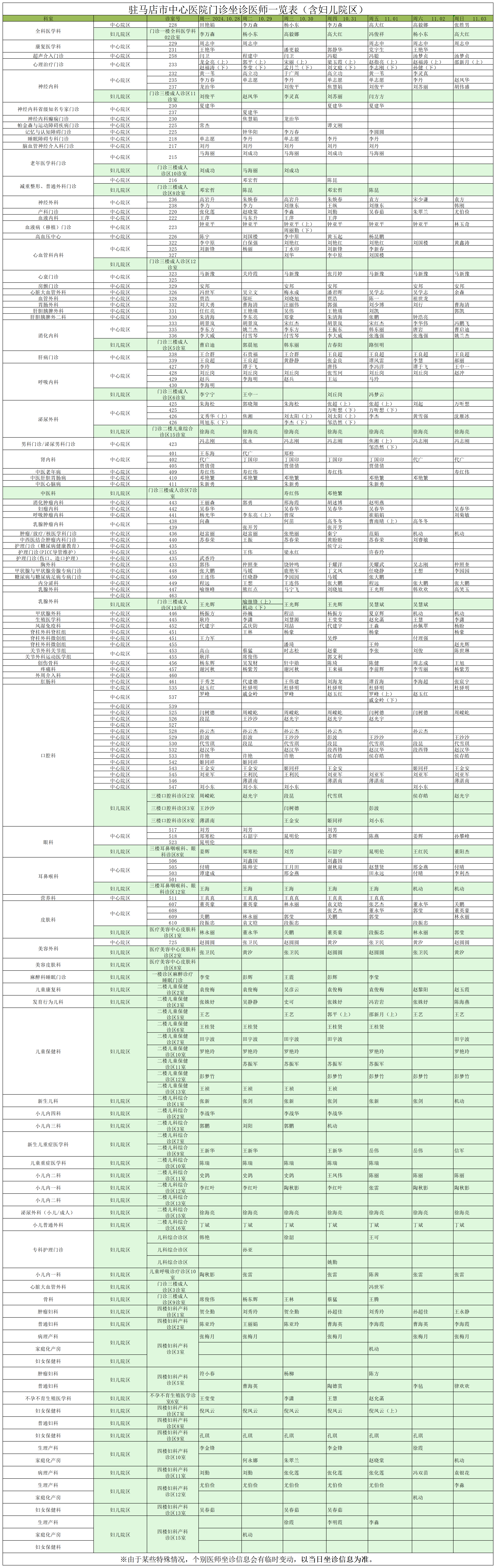 驻马店市中心医院门诊坐诊信息一览表(含妇儿院区)