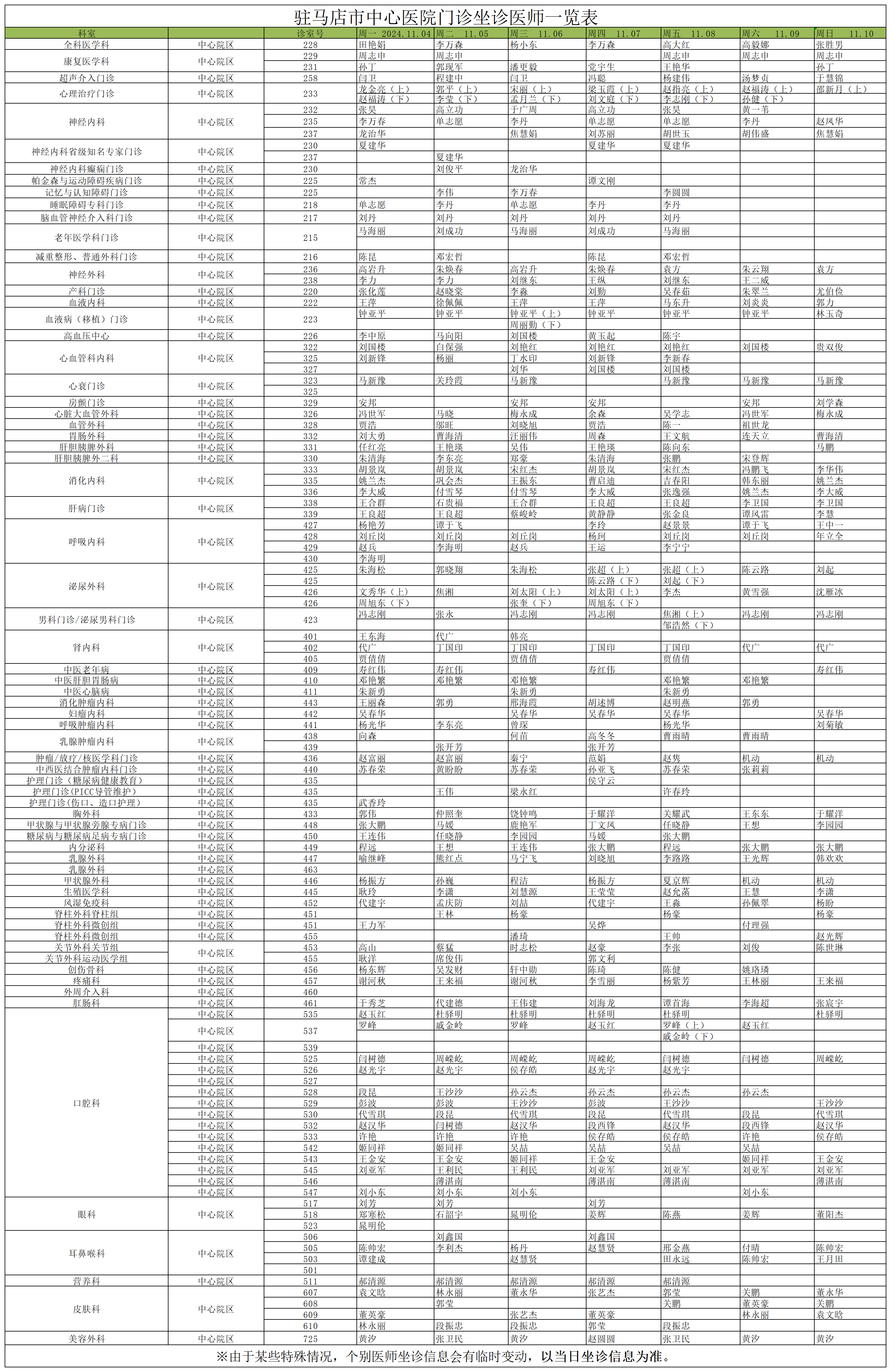 驻马店市中心医院门诊坐诊信息一览表(含妇儿院区)