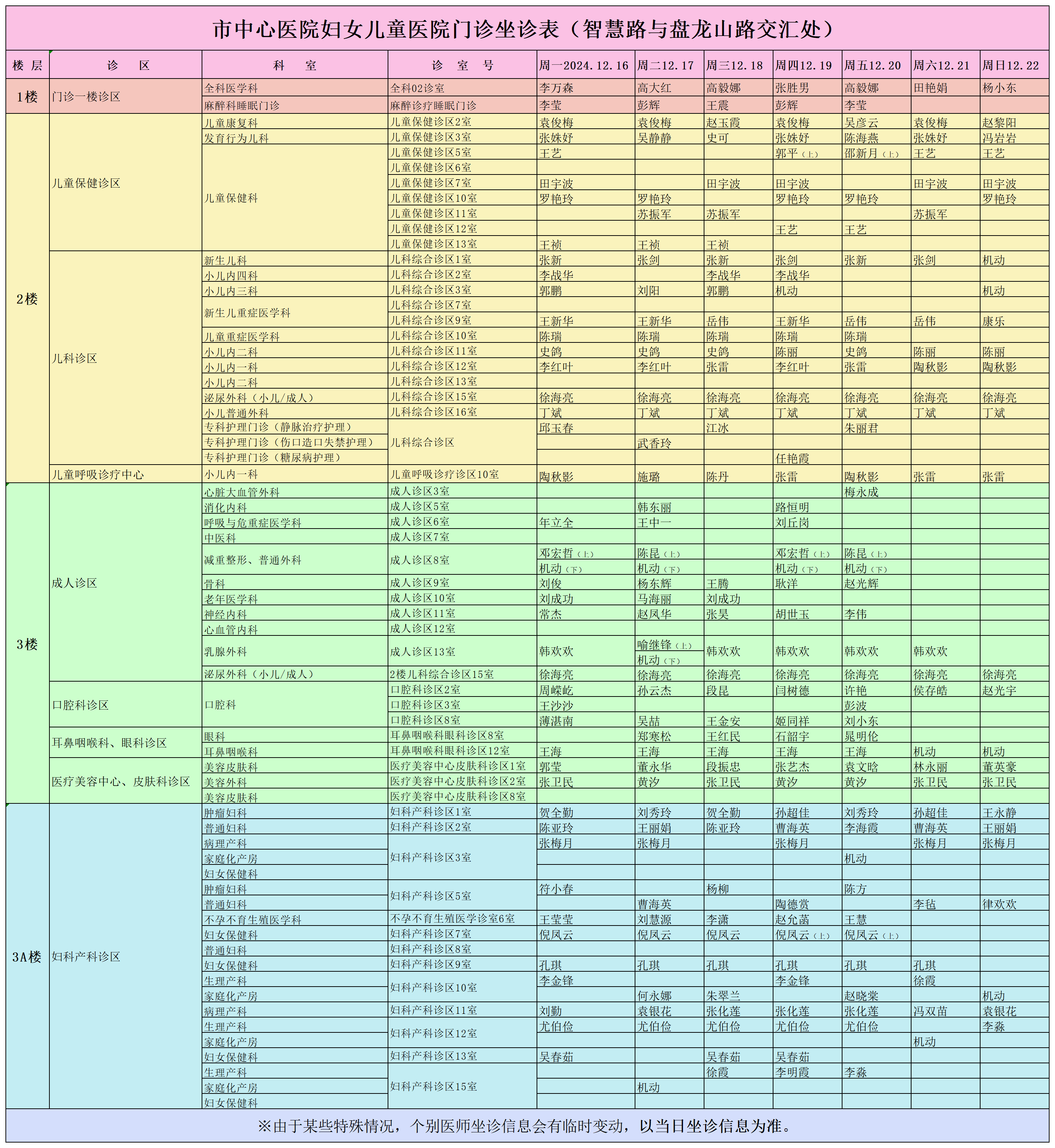 驻马店市中心医院门诊坐诊信息一览表(含妇儿院区)
