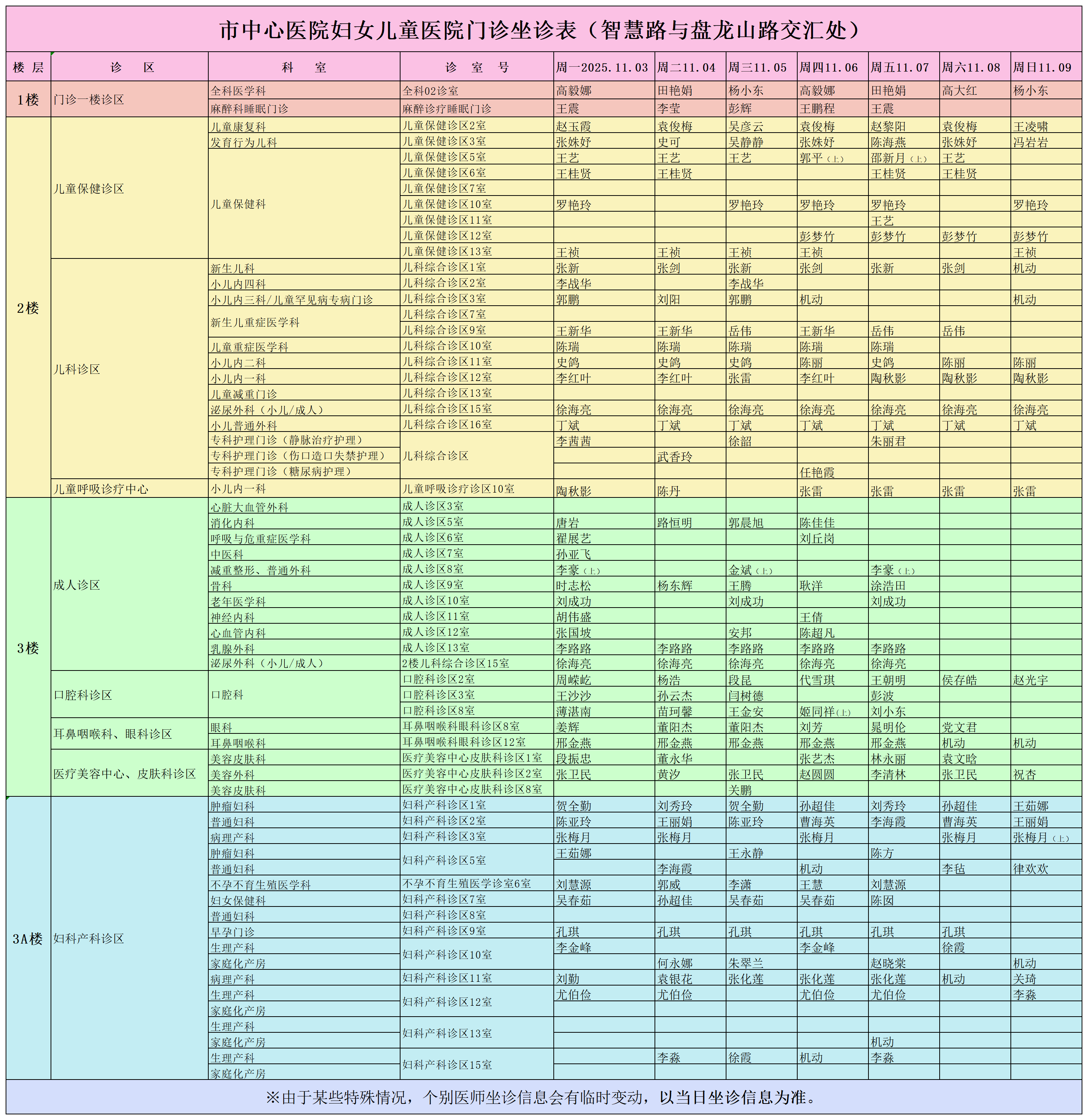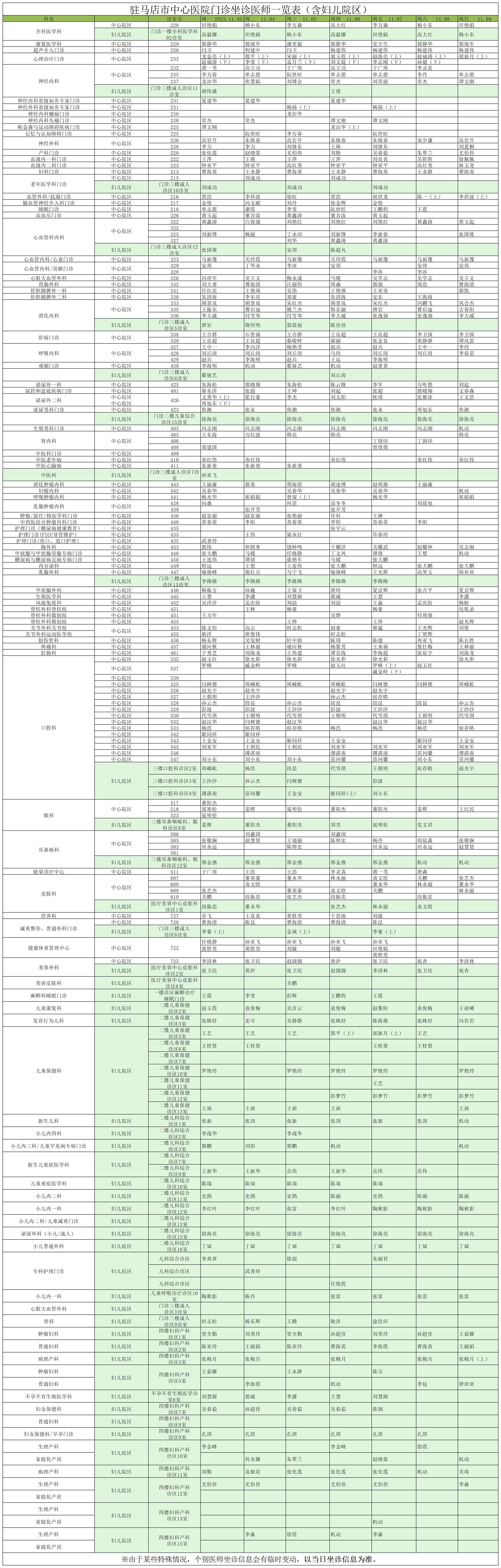 驻马店市中心医院门诊坐诊信息一览表(含妇儿院区)