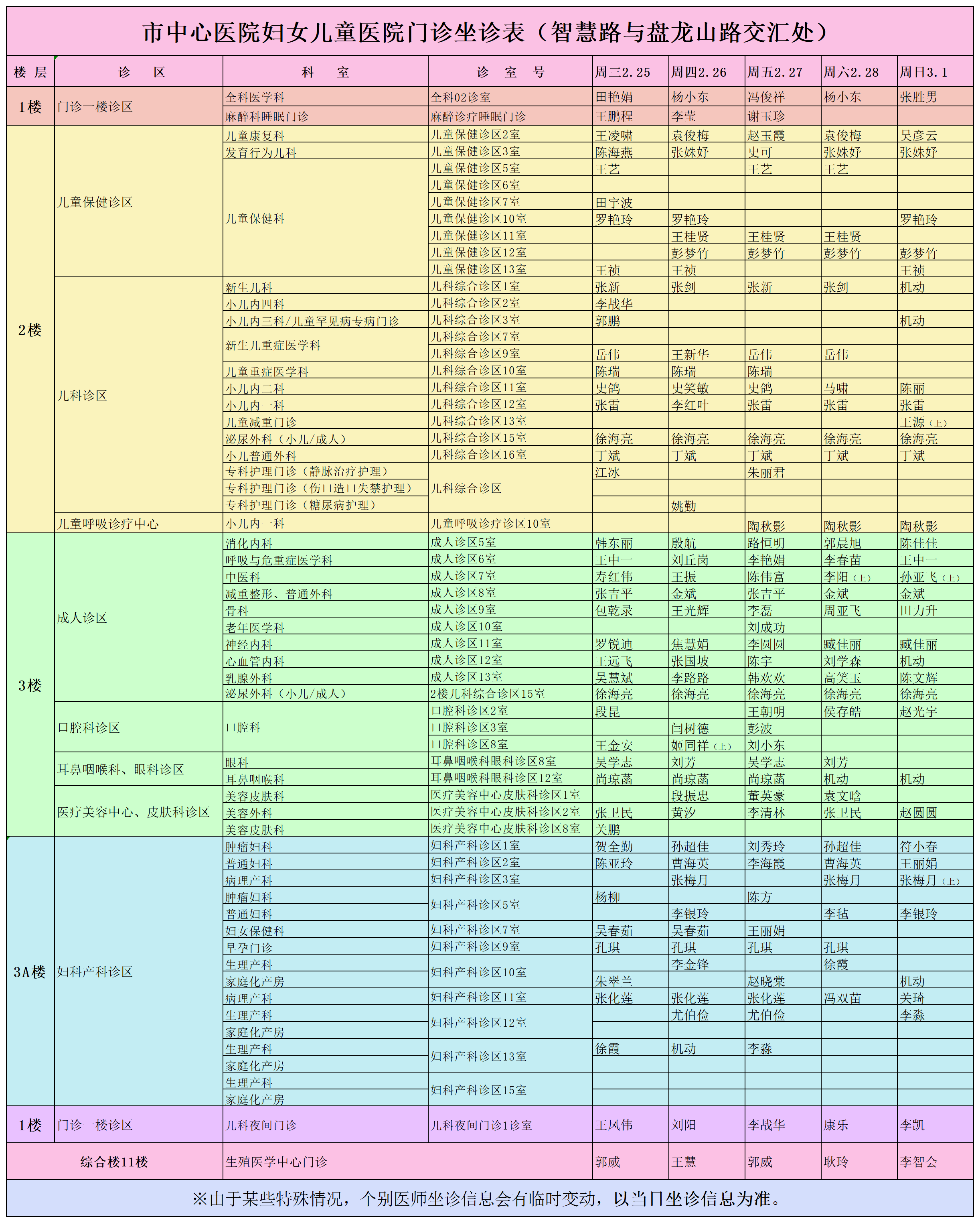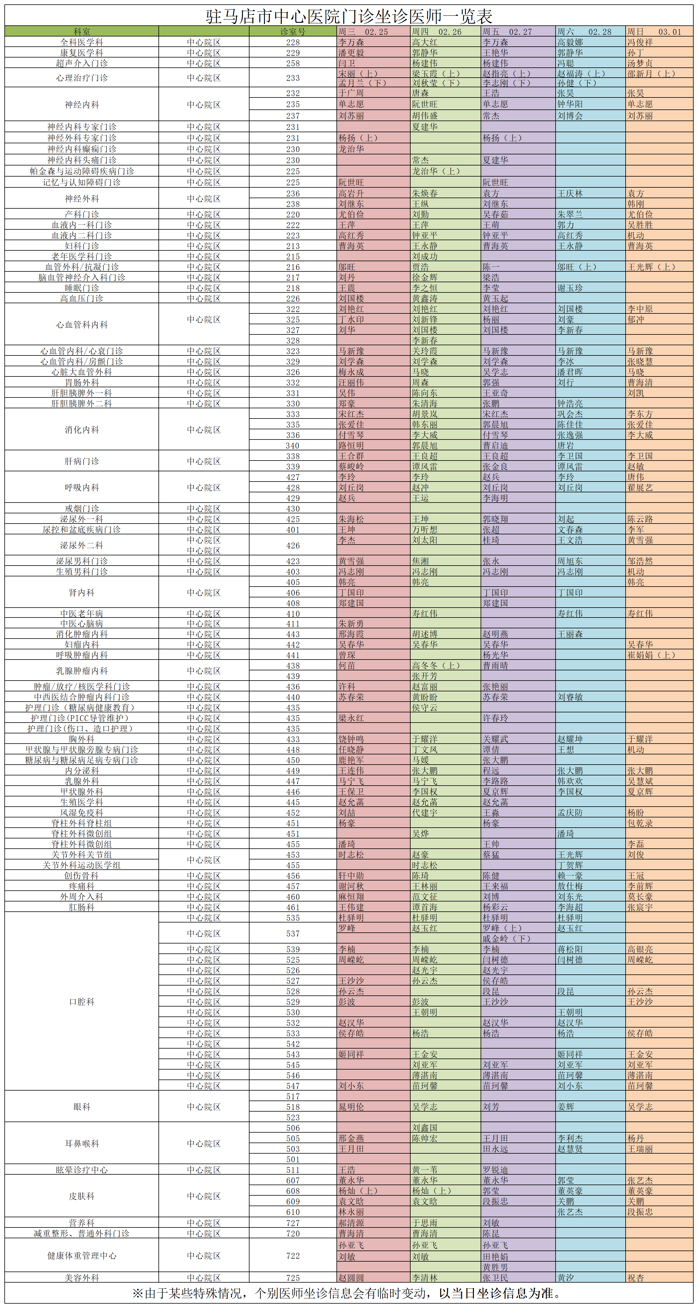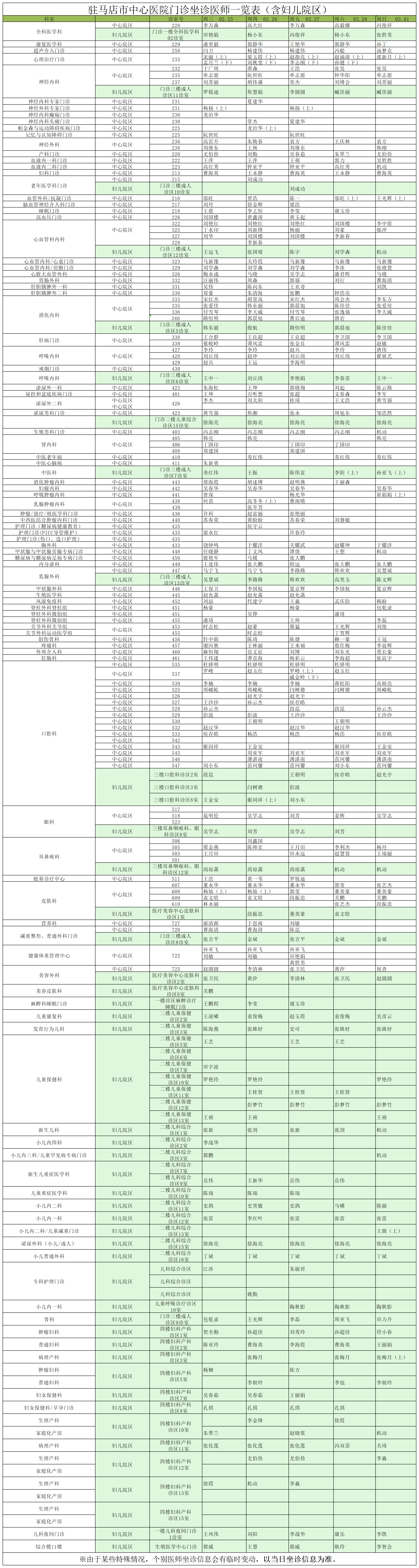 驻马店市中心医院门诊坐诊信息一览表(含妇儿院区)