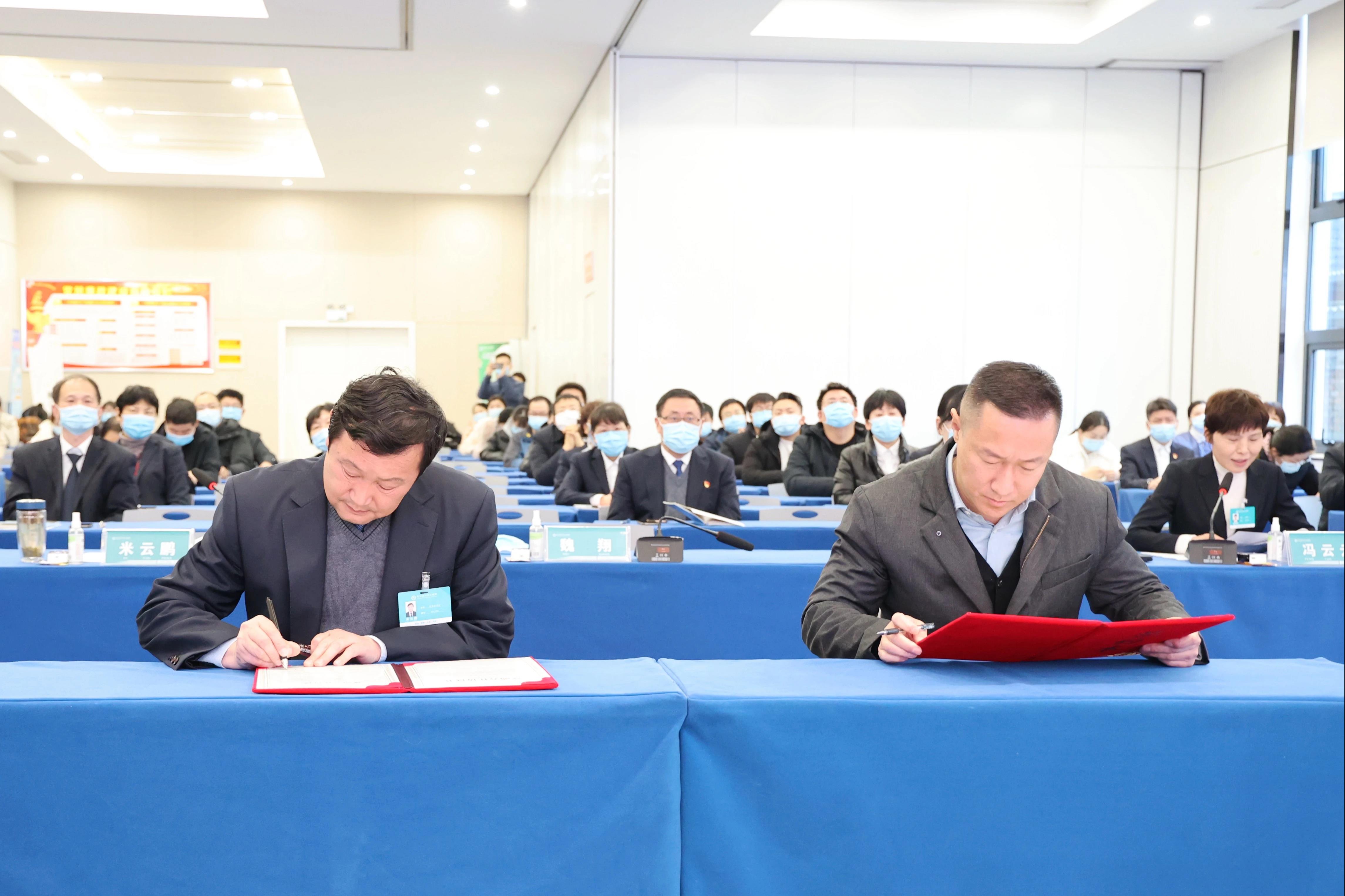 医院党委副书记米云鹏与河南省胸科医院纪委书记魏翔共同签下了全国心血管疾病管理能力评估与提升工程国家心血管疾病临床医学研究中心与驻马店市中心医院战略合作协议书。