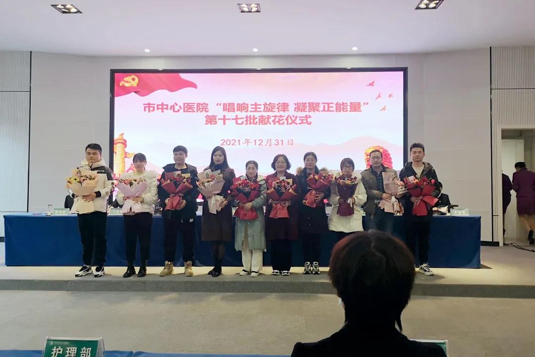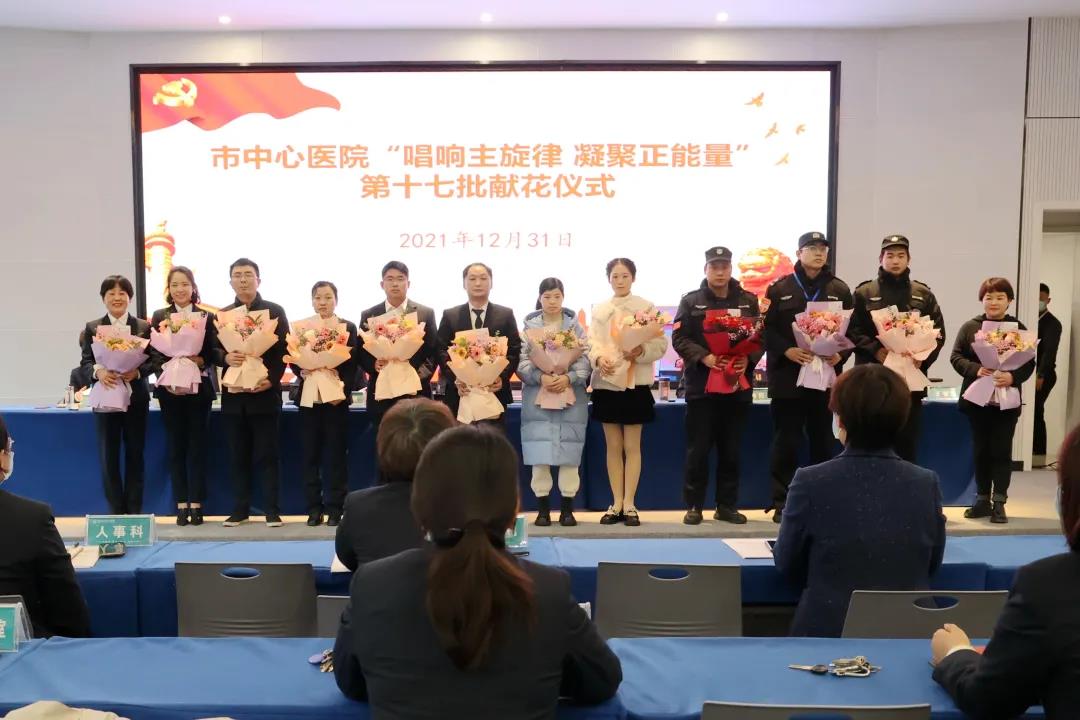 随后,进行第十七批“唱响主旋律、凝聚正能量”献花仪式,医院对近期涌现出的各类先进典型分三轮进行献花表彰。