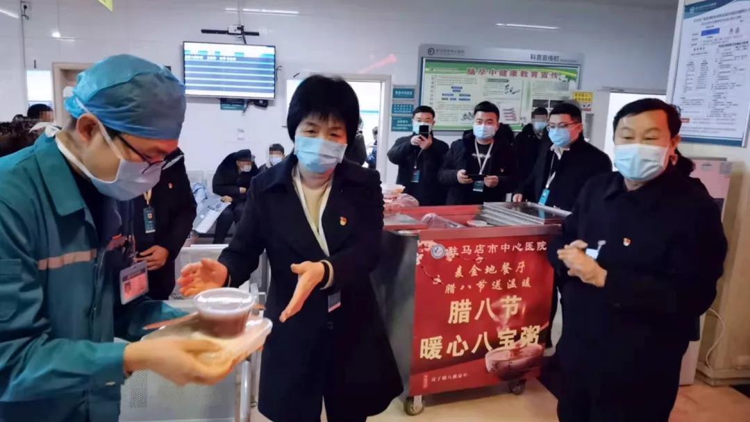 1月10日,正值传统节日腊八节,市中心医院向坚守在防疫一线的值班人员送上了热气腾腾的腊八粥。