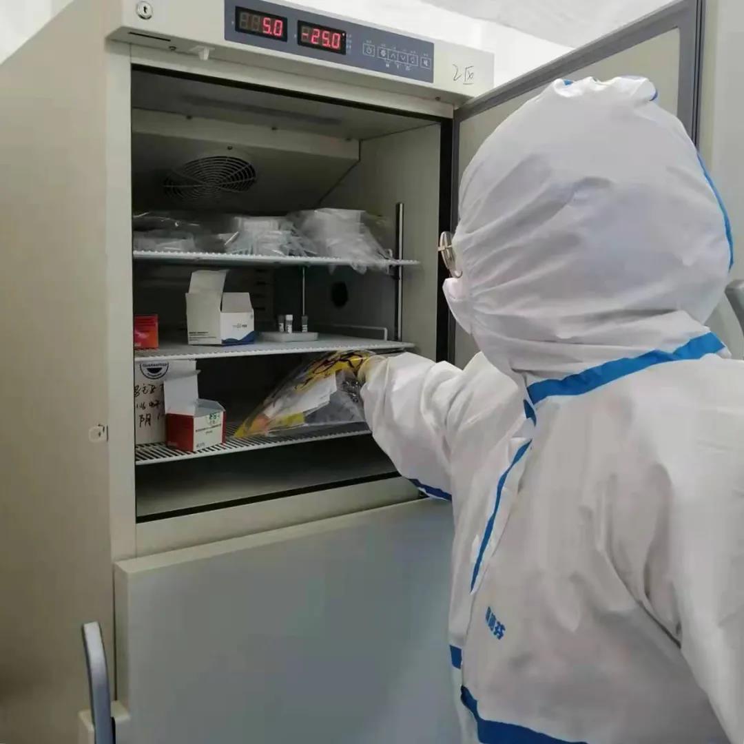 20:00接到紧急通知启用方舱,安排队员进场,驻马店支援队配合郑州队,准备第二批凌晨六点换班,队员们争相前往,最终选8名业务技术能力过硬的同志前往。剩下队员15日凌晨5:00就餐,5:30到方舱更衣,进行交接班。由于大家都是第一次接触方舱,另外时间紧设施设备不健全,试剂和提取、扩增仪器都是以前未曾使用过的品牌,大家需要熟悉、了解,各种记录单还未打印,上一批还有未扩增完需复查标本,很多问题聚集而来,我只好到外面做好协调沟通、试剂领取、催促标本转运、更换领用仪器等做好后勤保障工作。在方舱每个人在不同岗位忙碌,各司其职、各负其责。