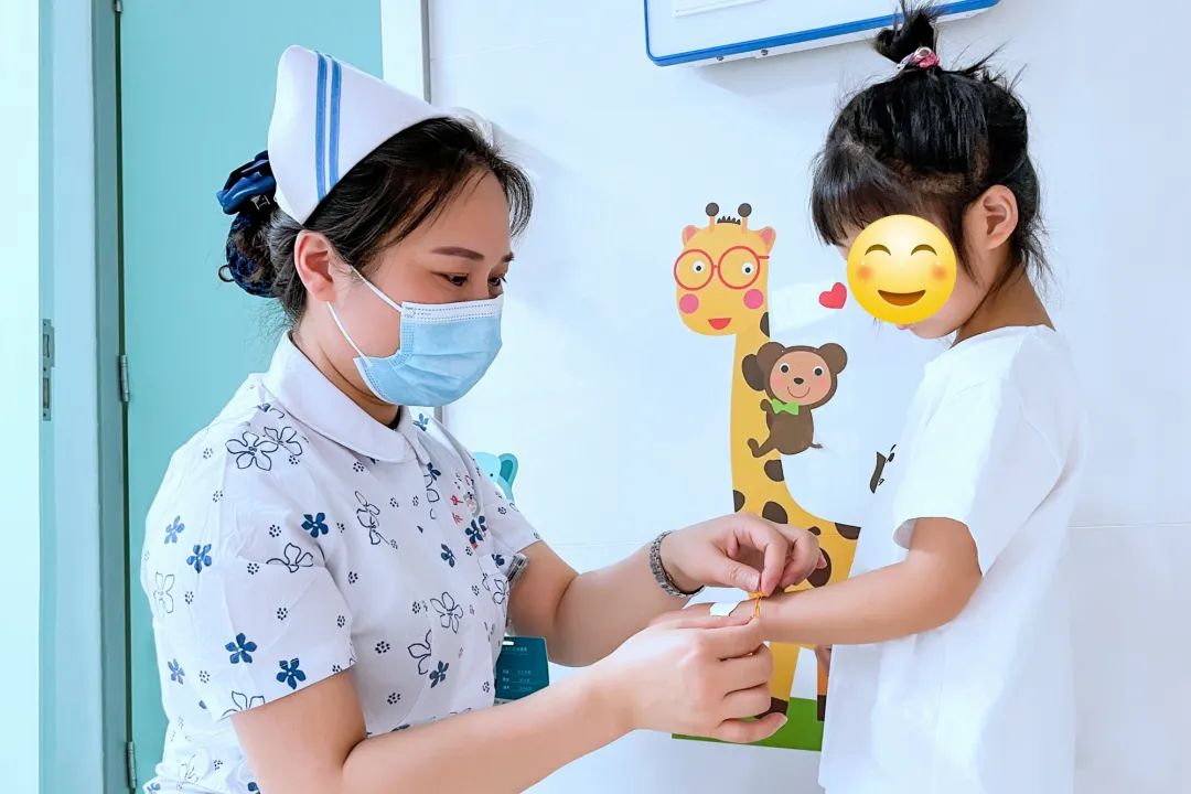 6月1日,市中心医院妇女儿童医院小儿外科护士长李沛带领护士挨个病房探望住院患儿,为孩子们佩戴幸运五色彩绳和驱虫平安小香囊,送上节日祝福。