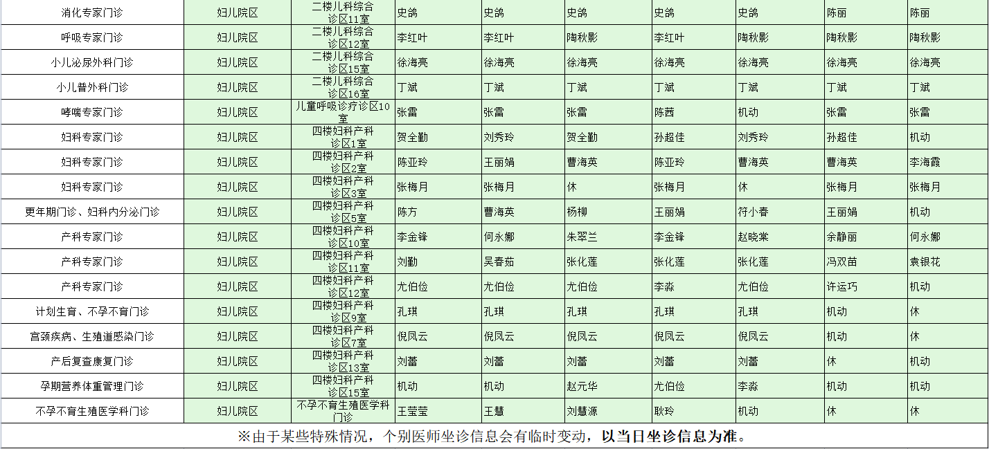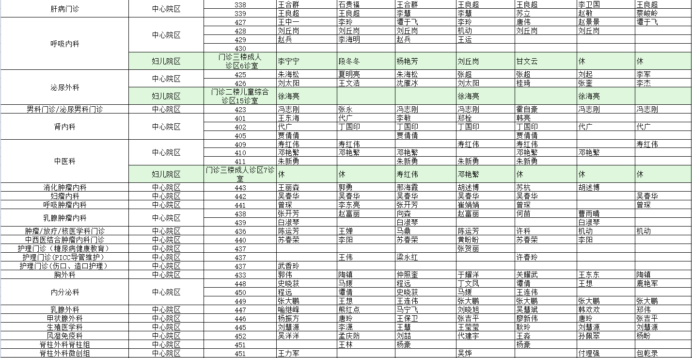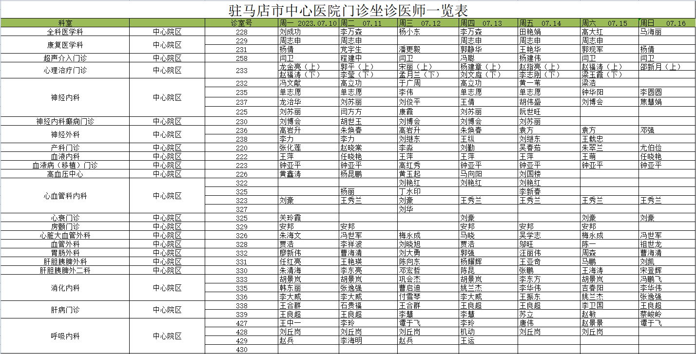 驻马店市中心医院门诊坐诊信息一览表(含妇儿院区)