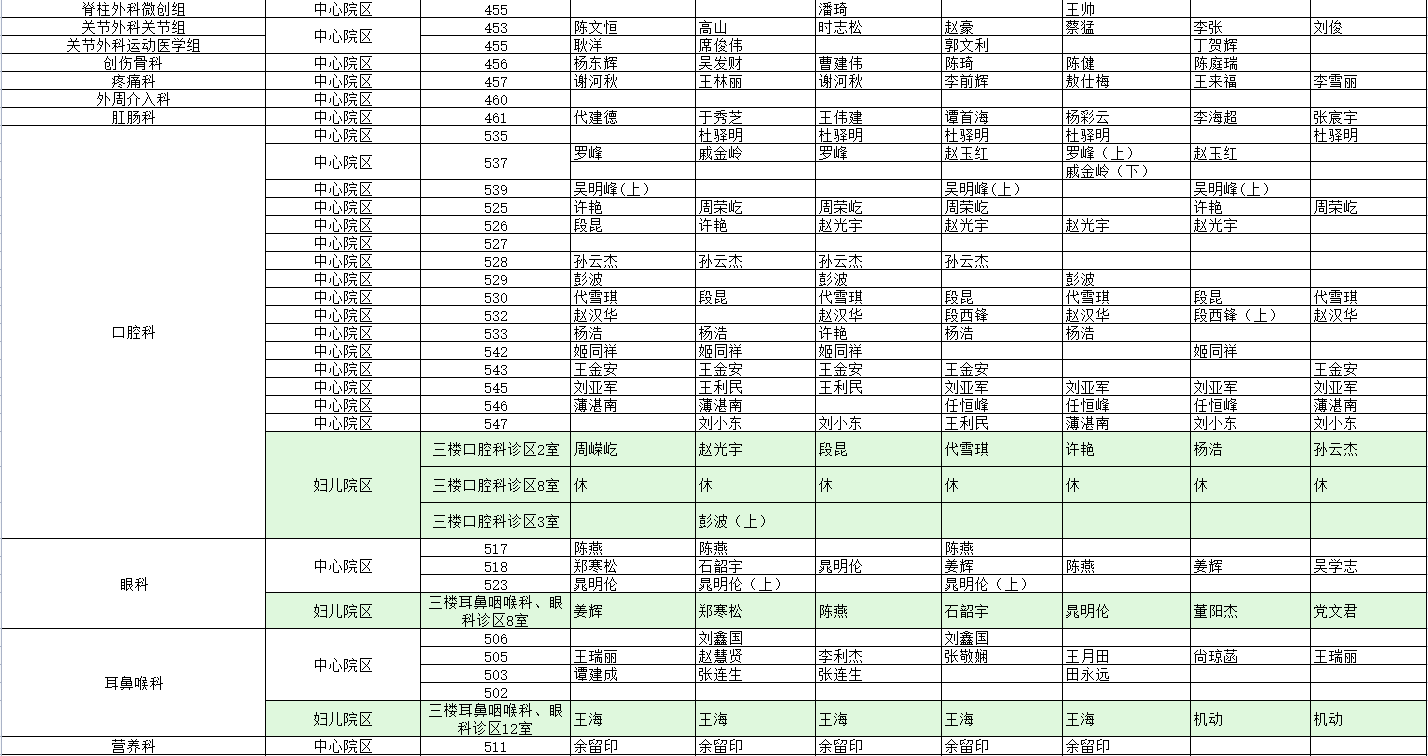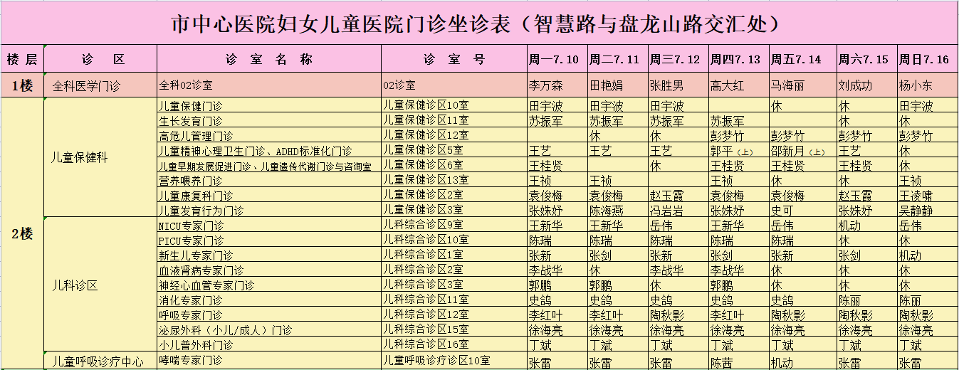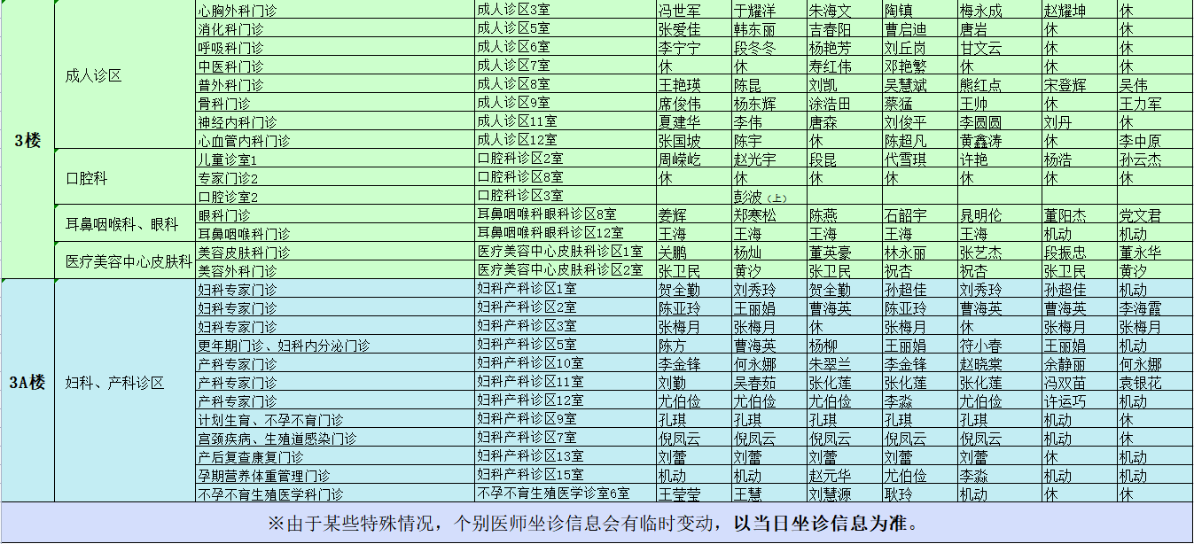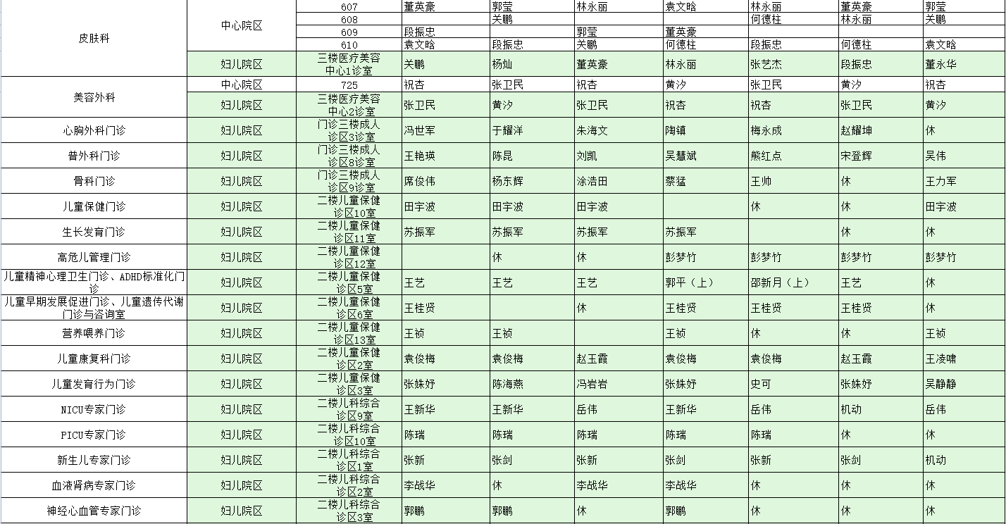驻马店市中心医院门诊坐诊信息一览表(含妇儿院区)