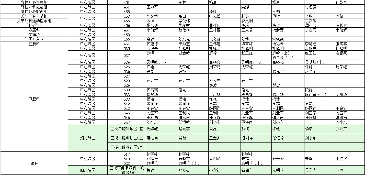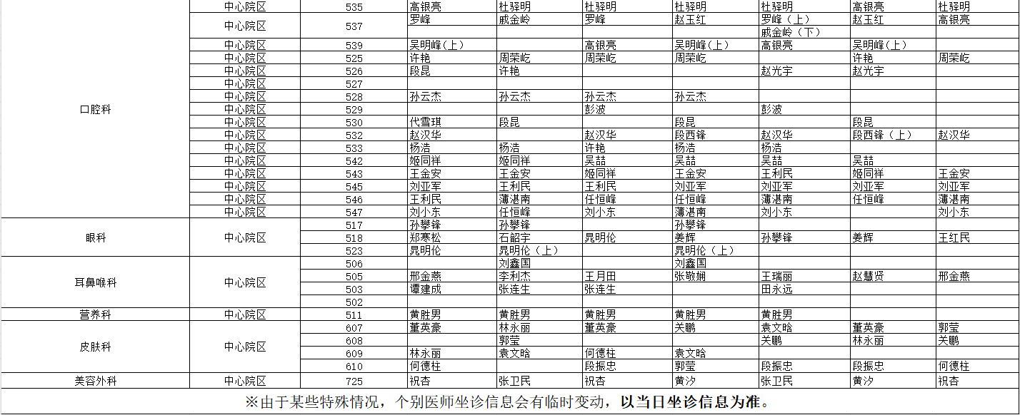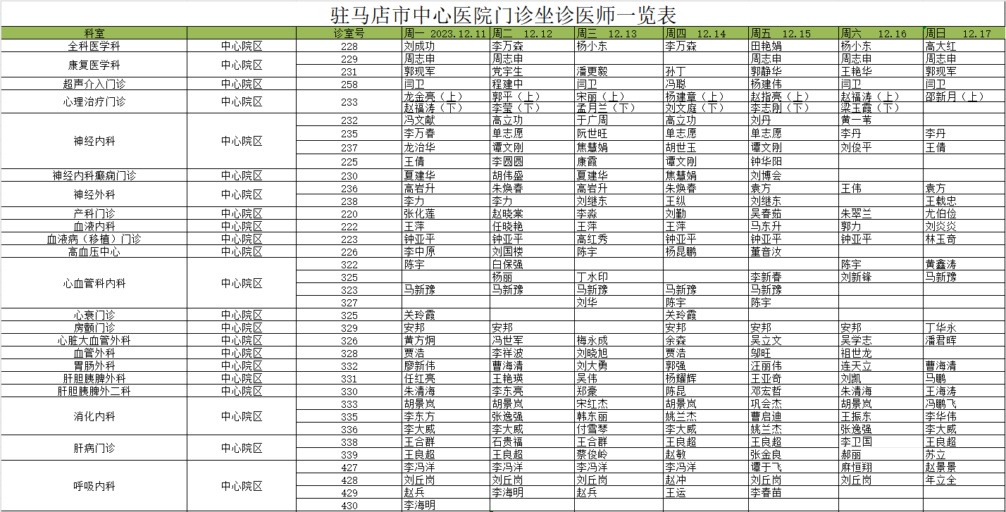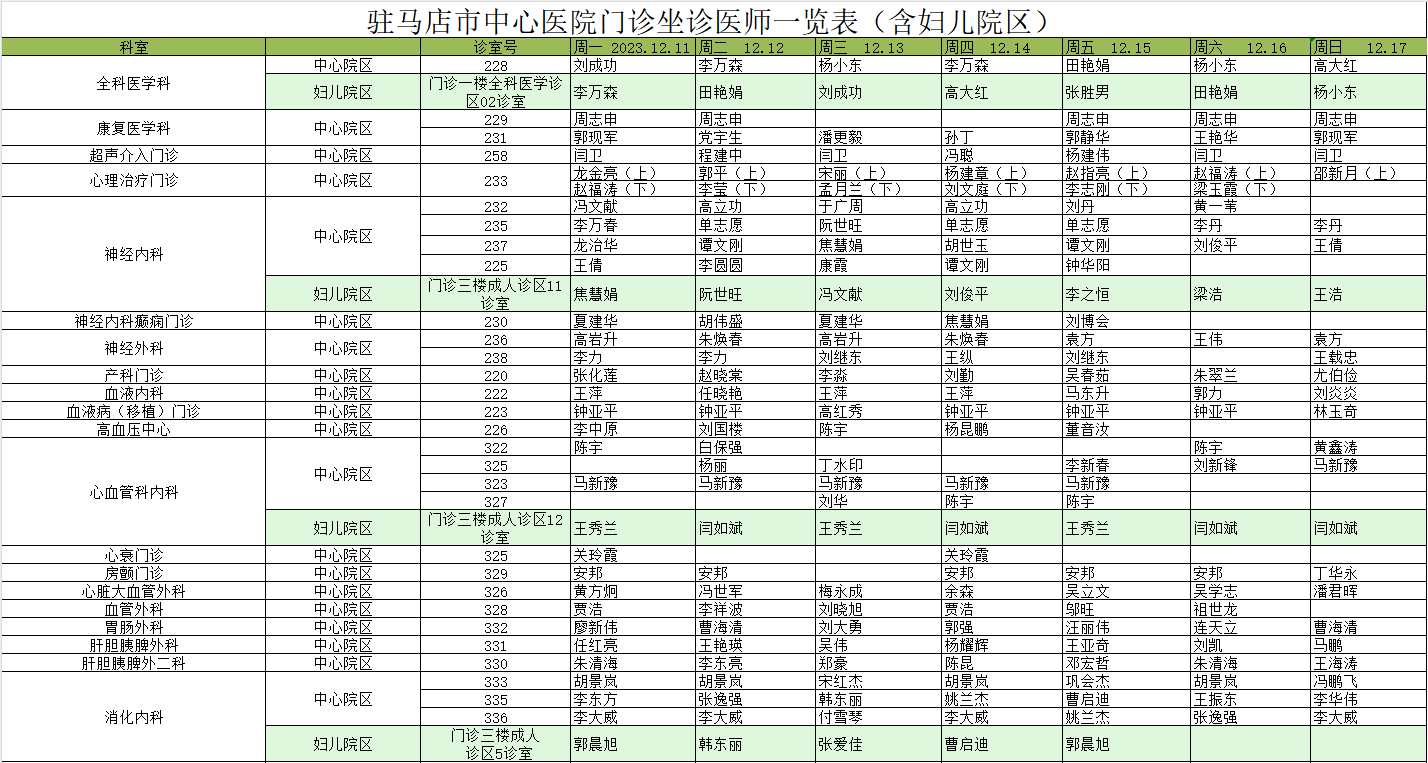 驻马店市中心医院门诊坐诊信息一览表(含妇儿院区)