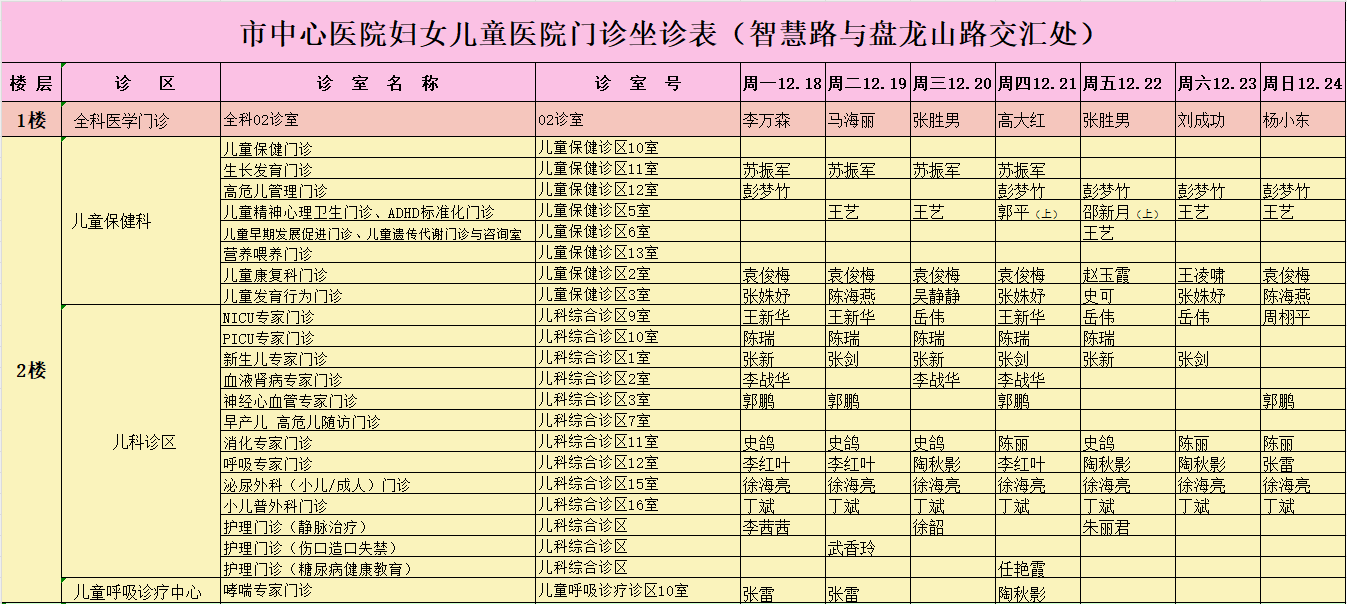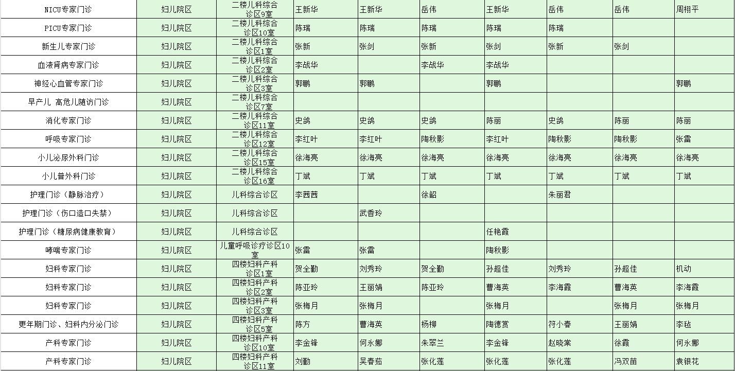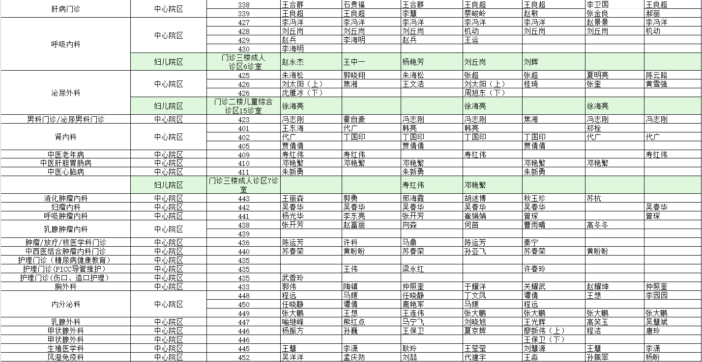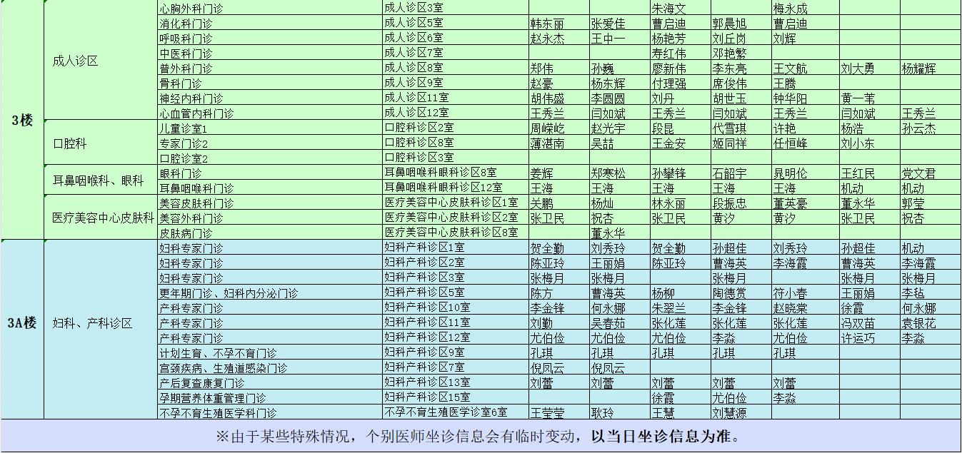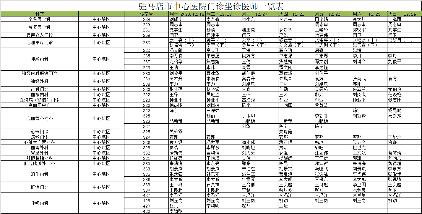 驻马店市中心医院门诊坐诊信息一览表(含妇儿院区)