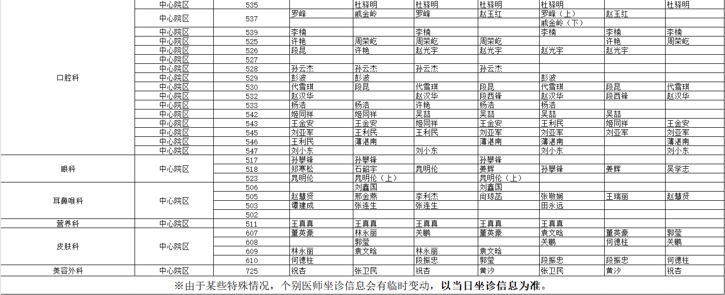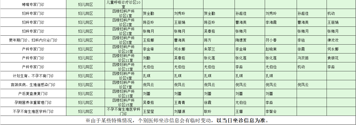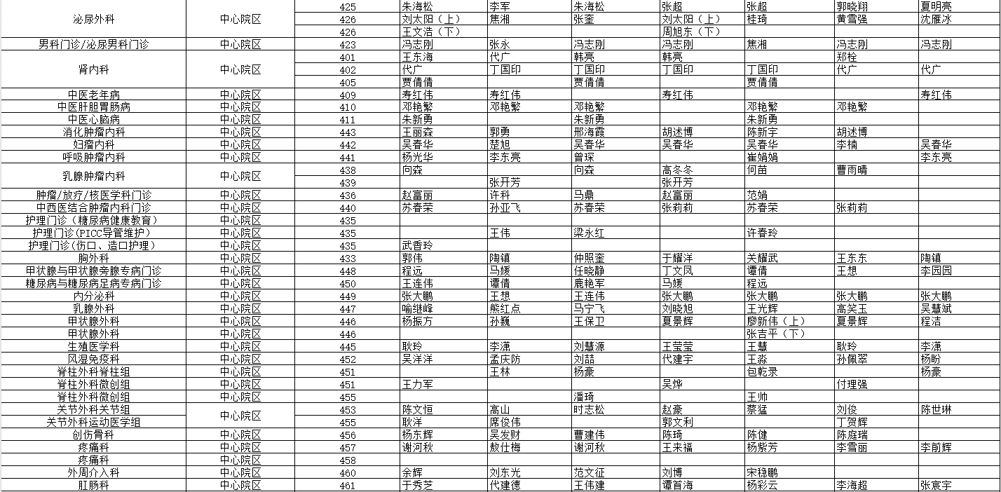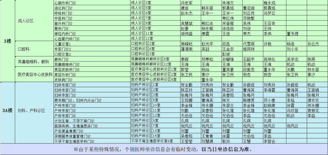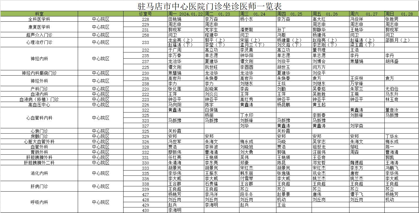 驻马店市中心医院门诊坐诊信息一览表(含妇儿院区)