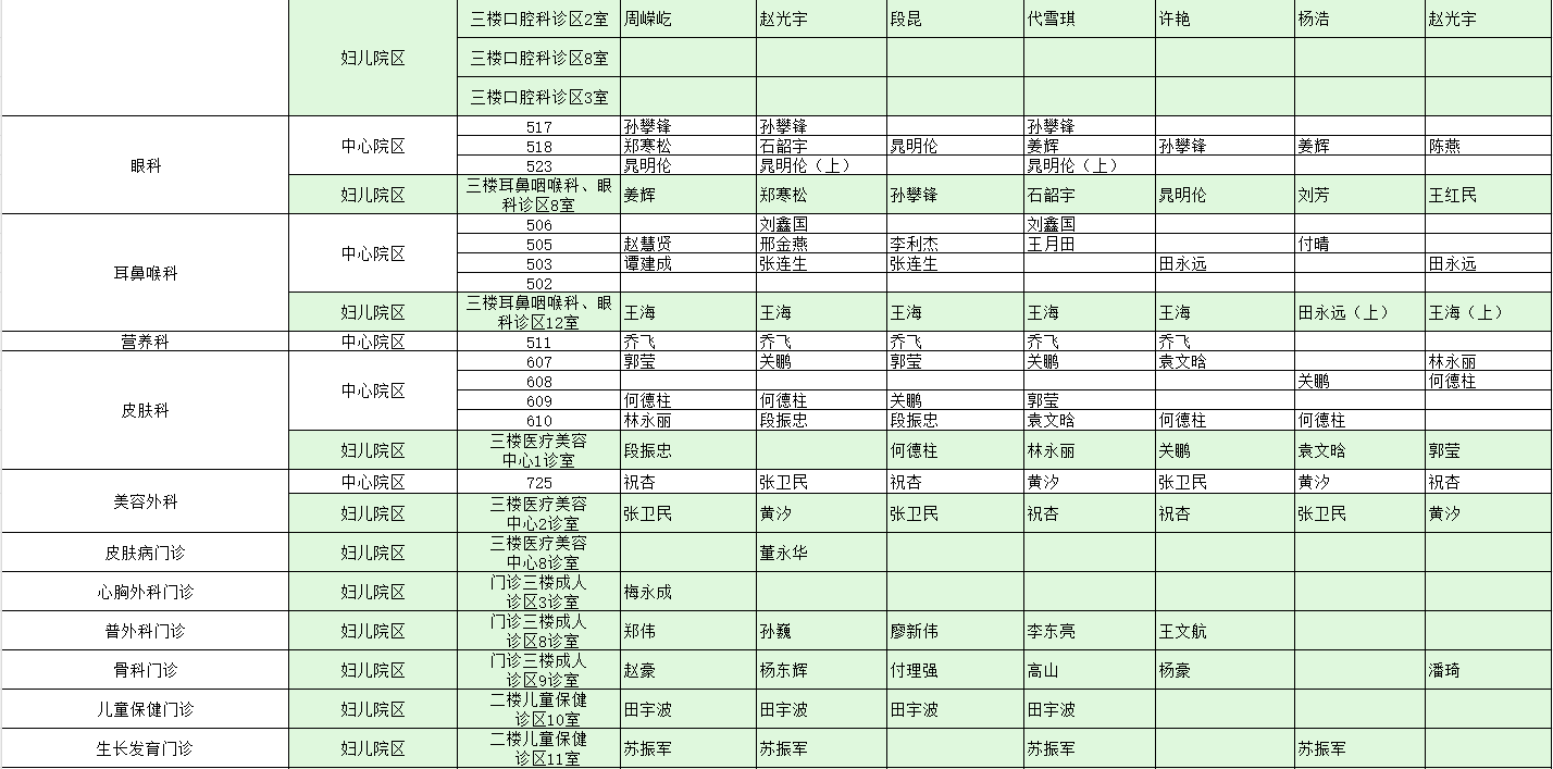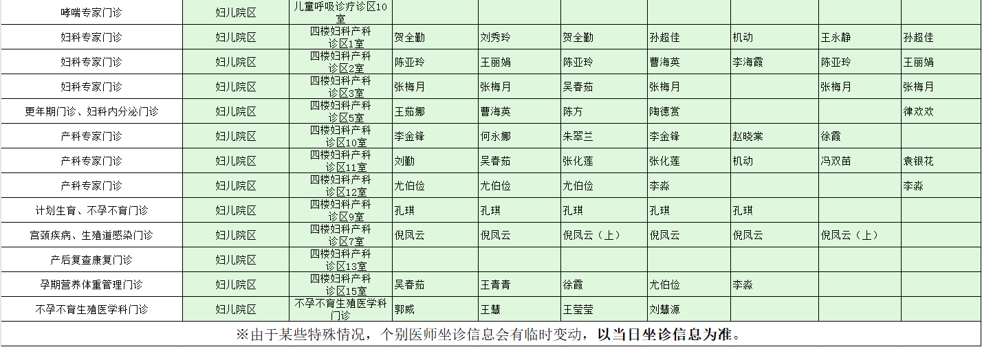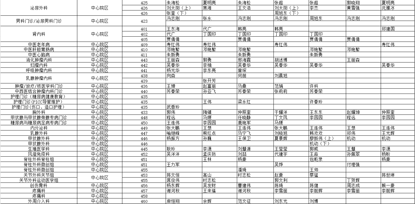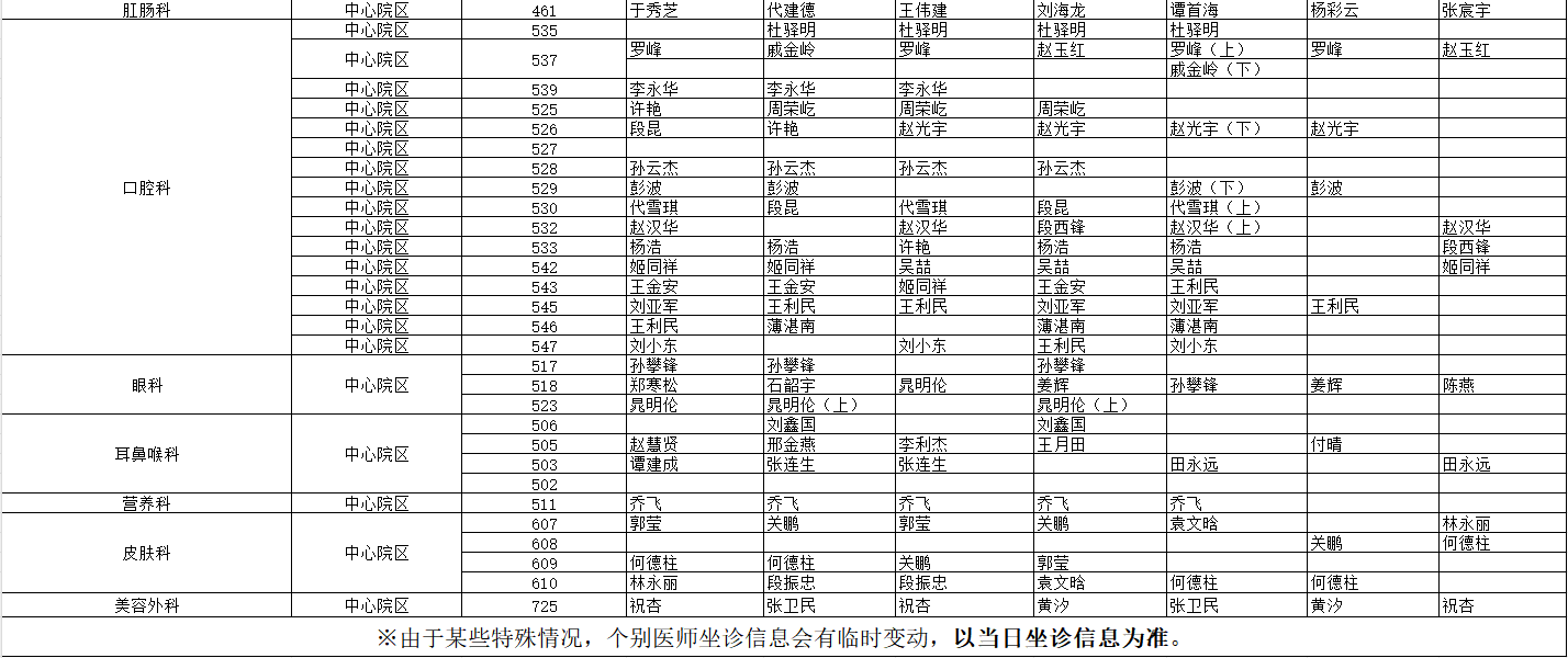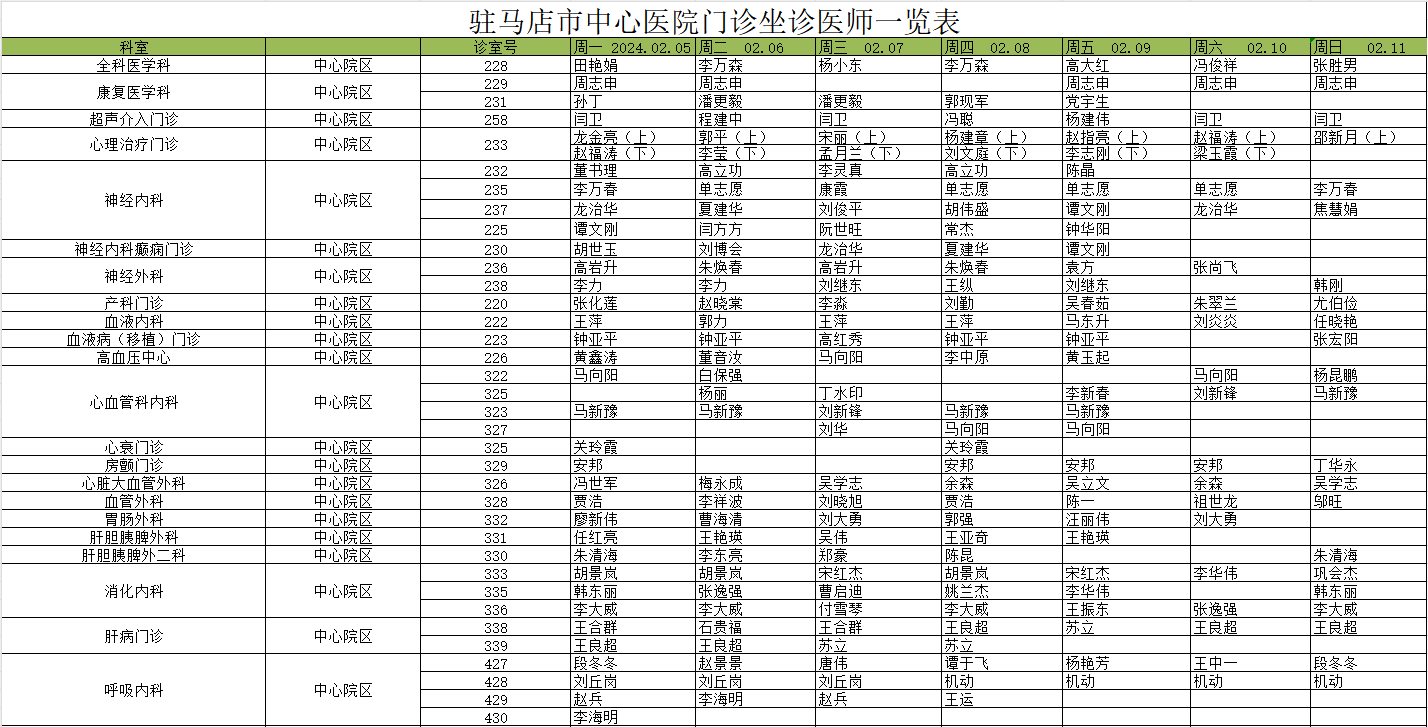 驻马店市中心医院门诊坐诊信息一览表(含妇儿院区)