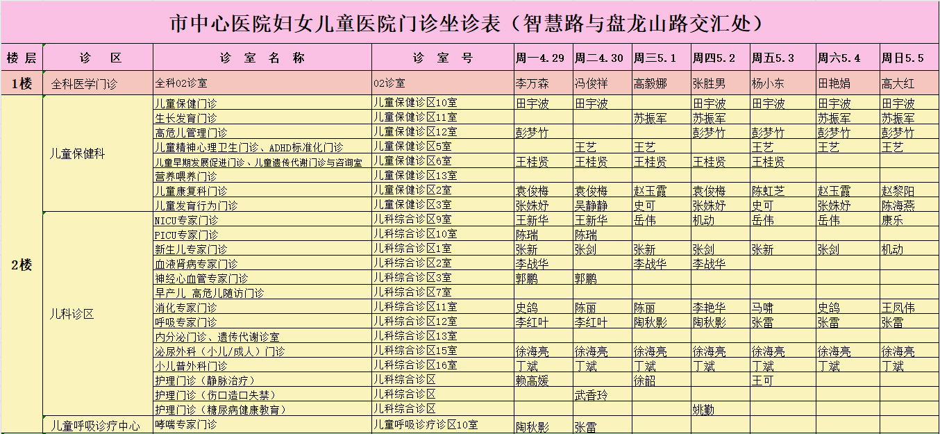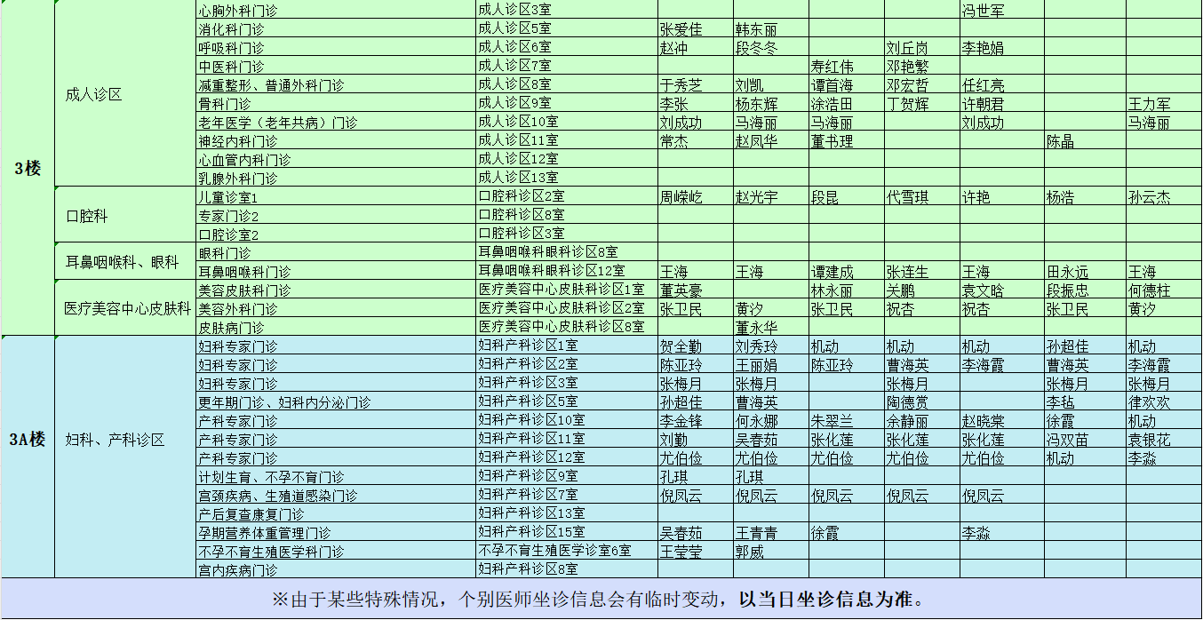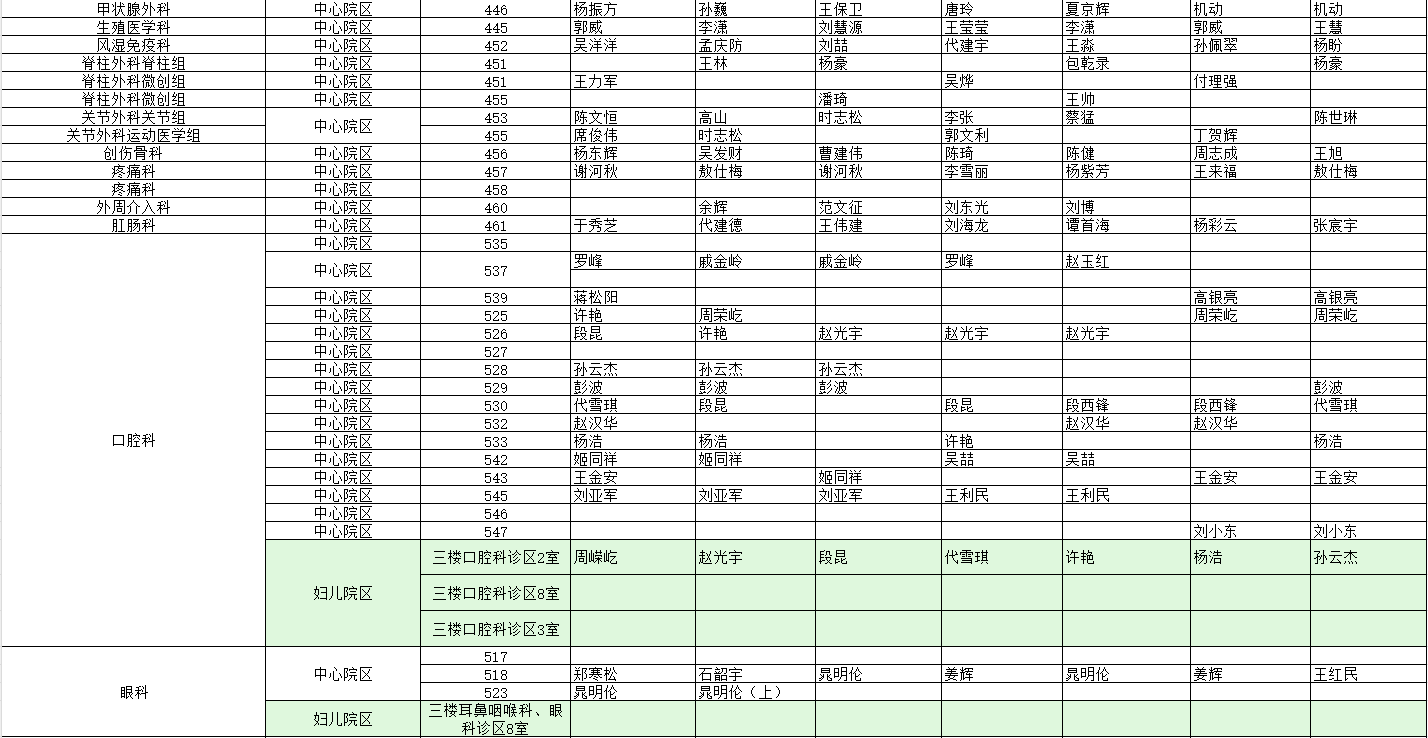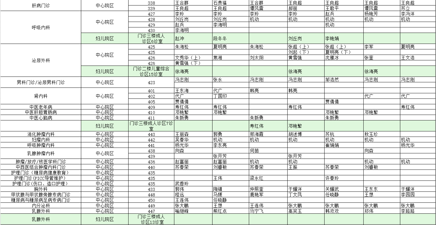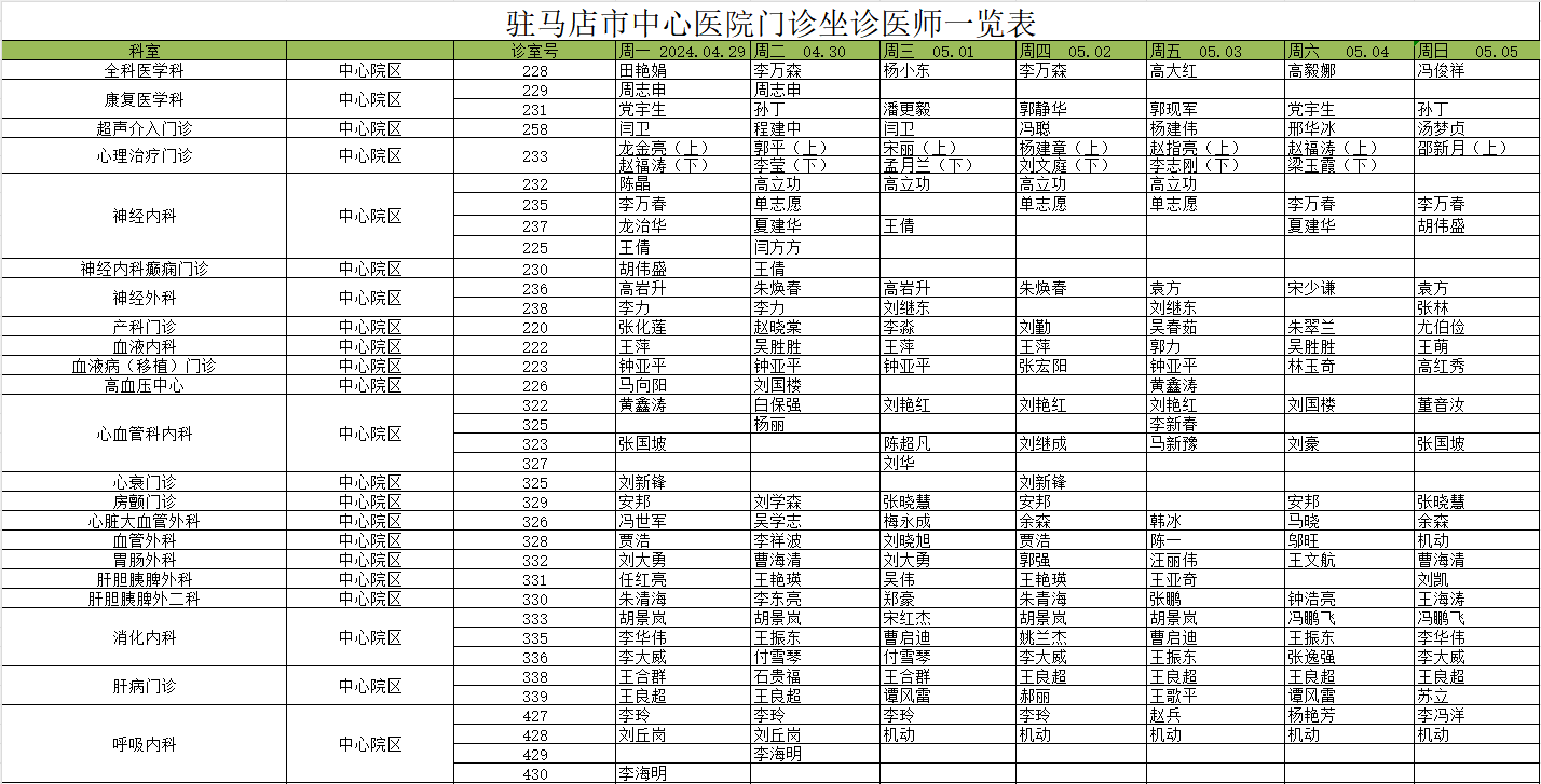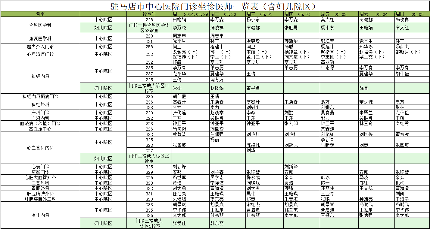 驻马店市中心医院门诊坐诊信息一览表(含妇儿院区)