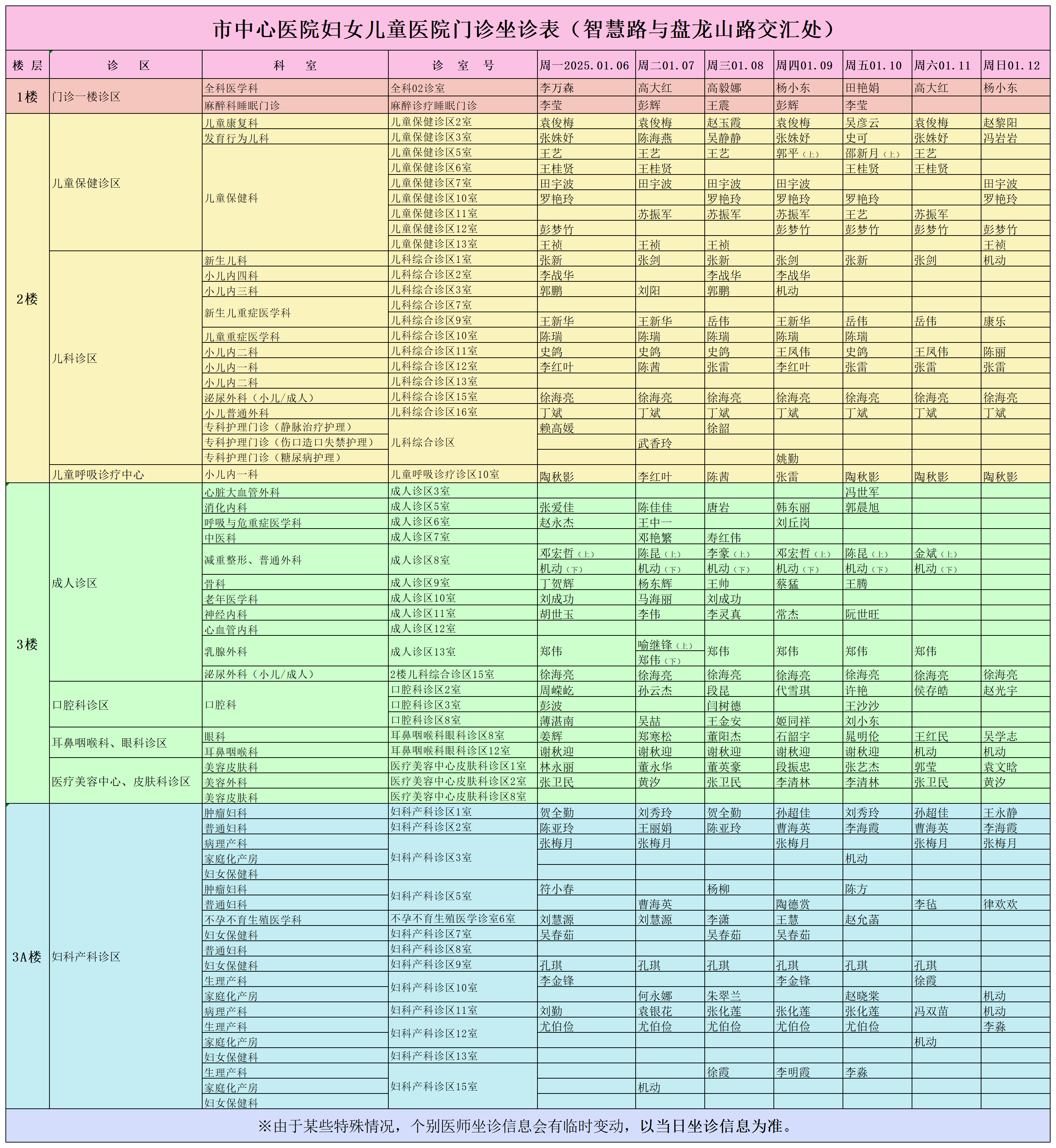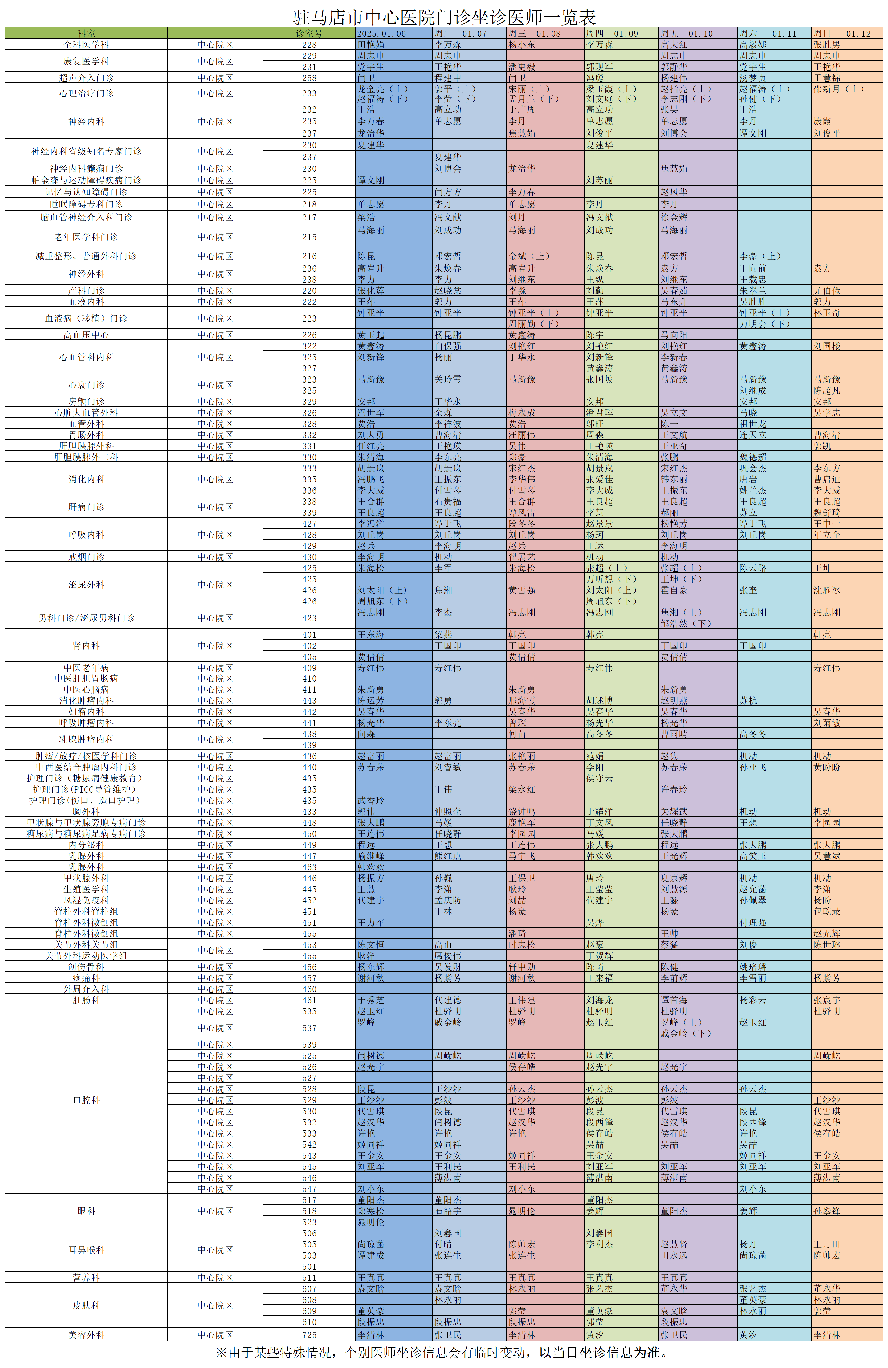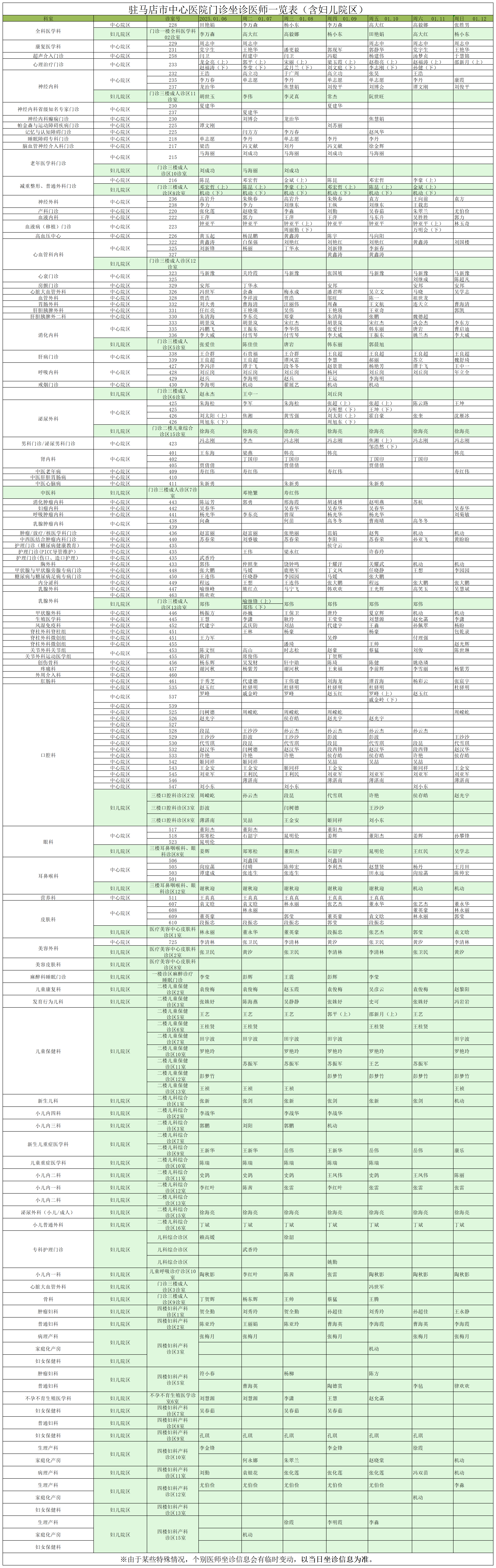 驻马店市中心医院门诊坐诊信息一览表(含妇儿院区)