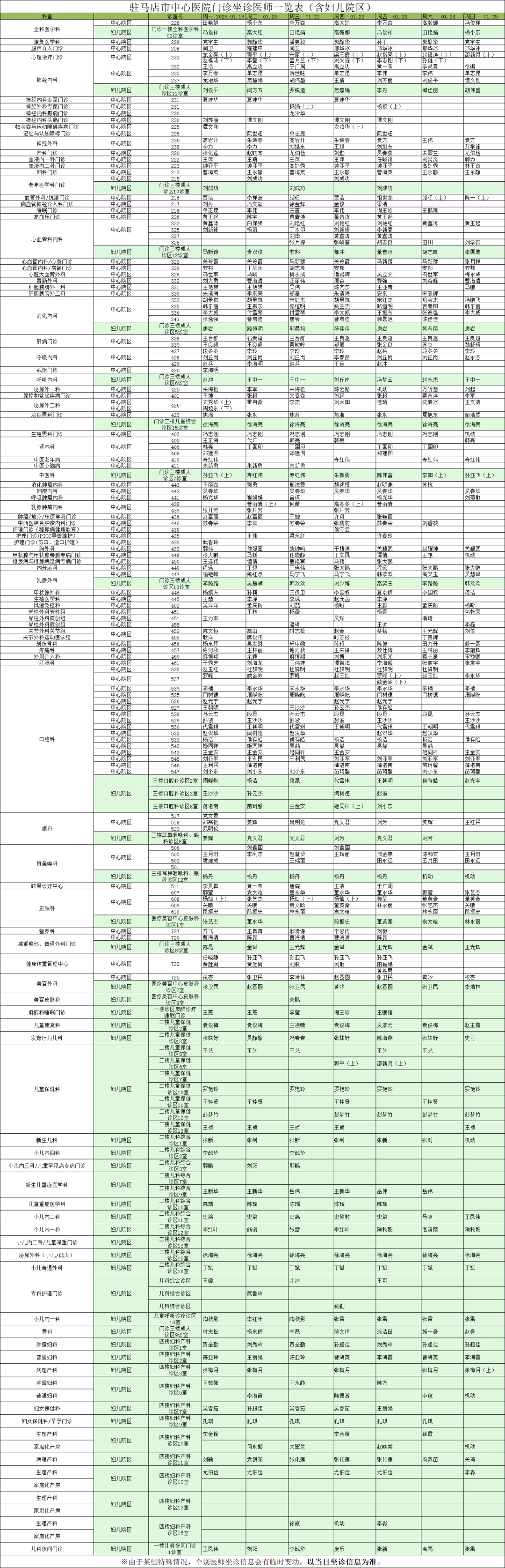 市中心医院(含妇女儿童医院)门诊坐诊表(1月19日-1月25日)