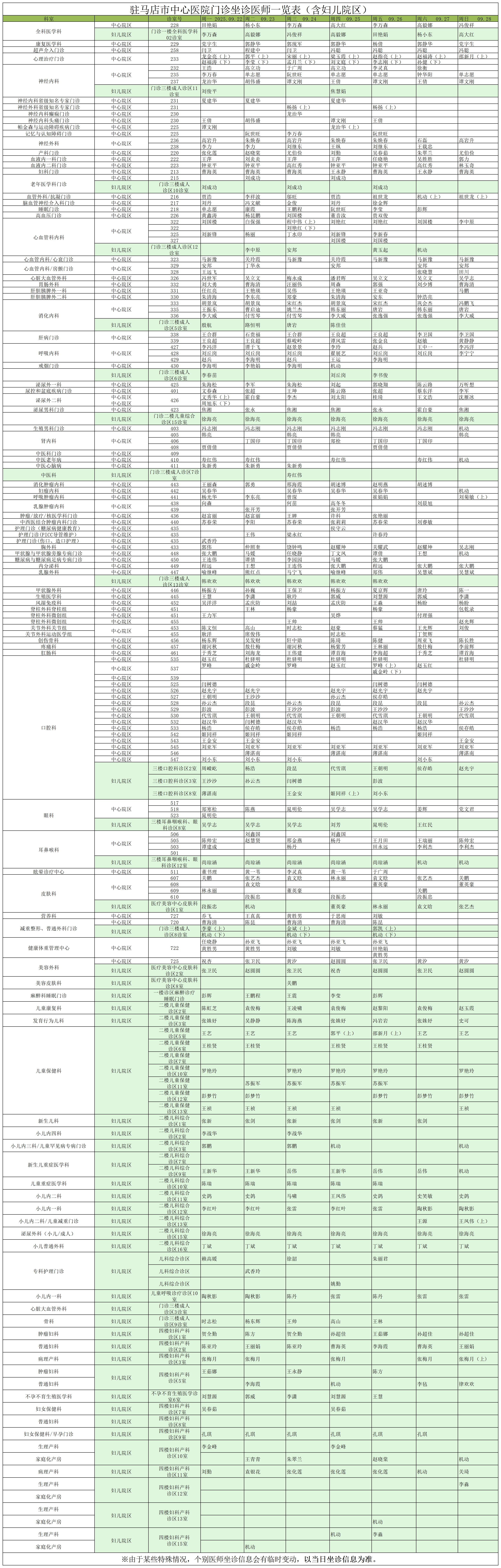 驻马店市中心医院门诊坐诊信息一览表(含妇儿院区)