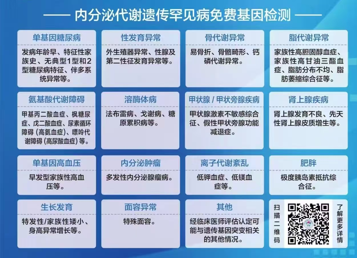 罕见病门诊主要针对发病率极低、症状复杂且诊断困难的疾病,提供专业评估、诊断及治疗建议。与河南科技大学一附院合作,为患者提供免费基因检测。