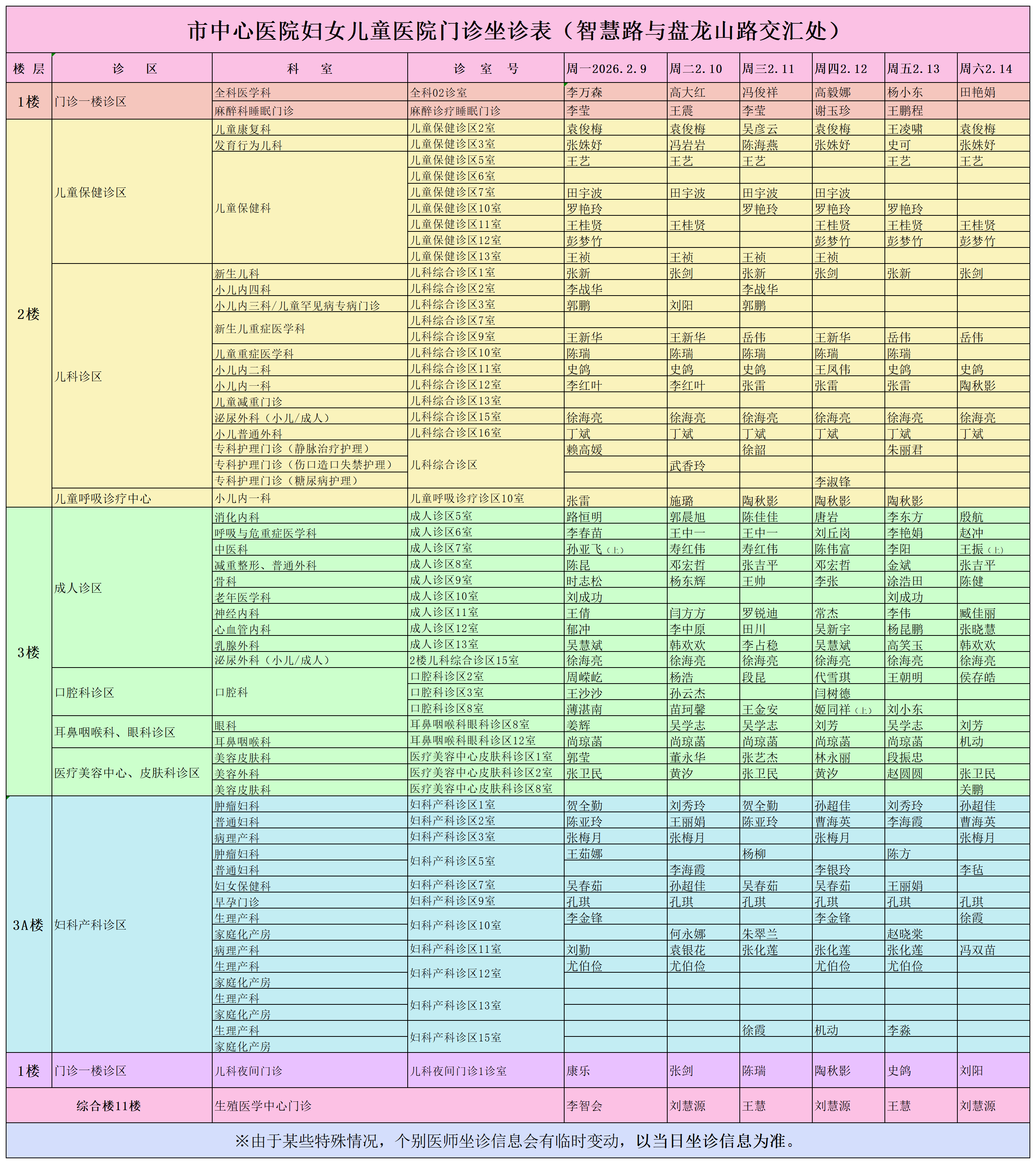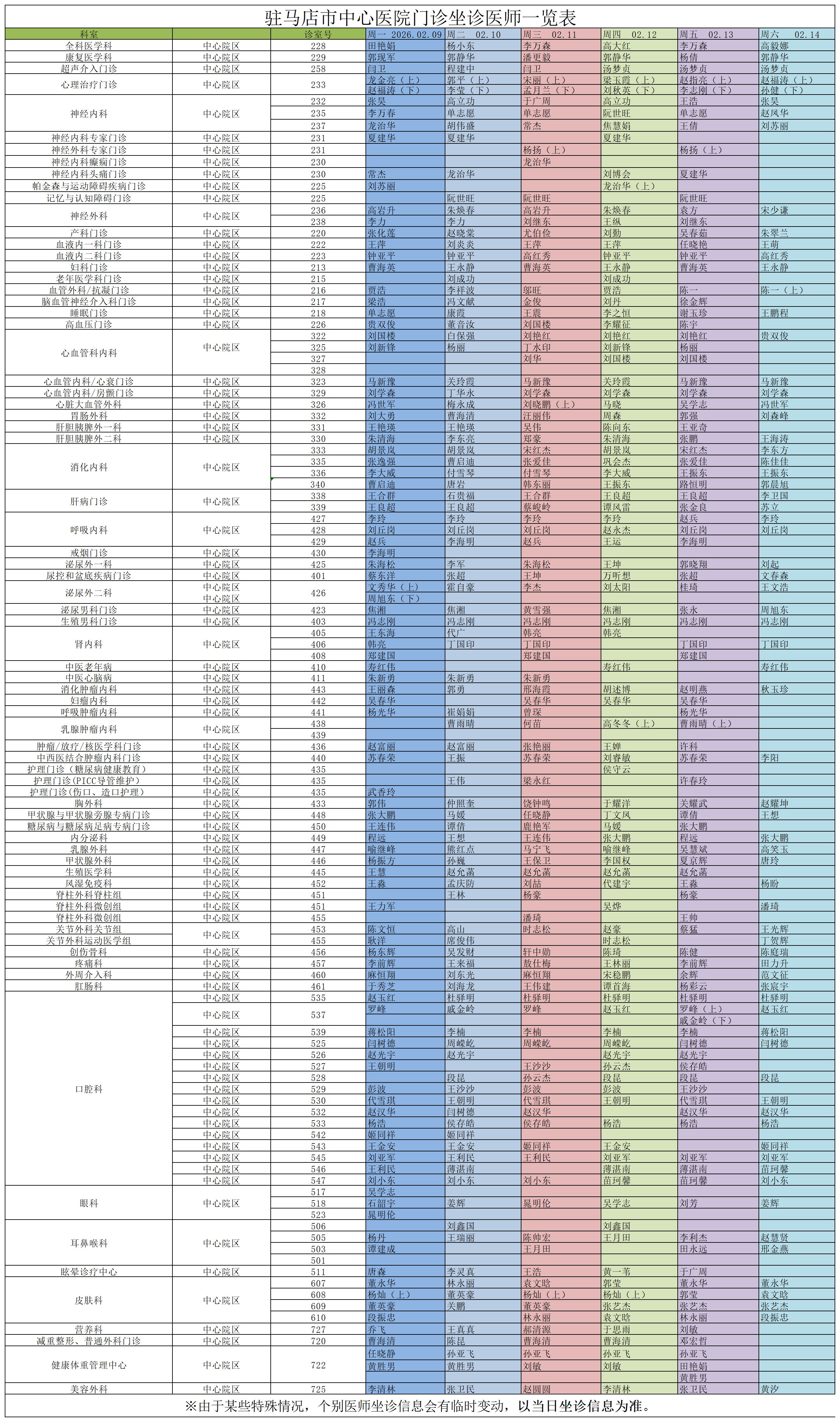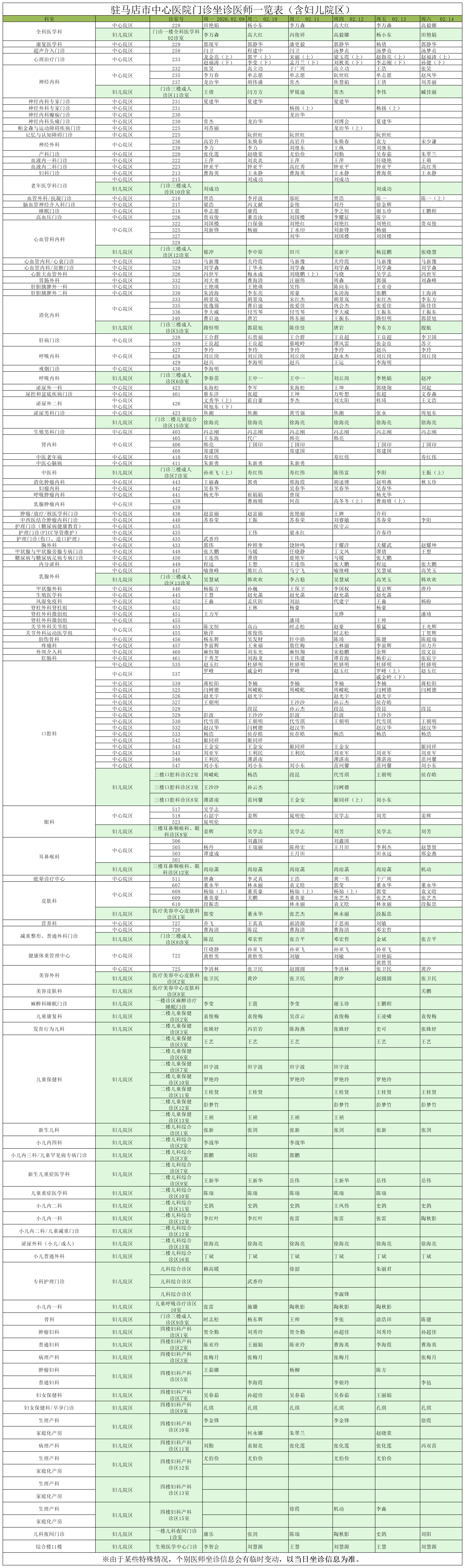 驻马店市中心医院门诊坐诊信息一览表(含妇儿院区)